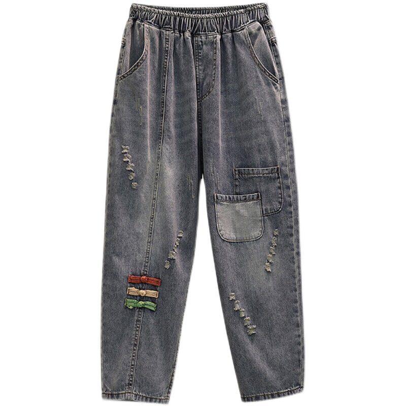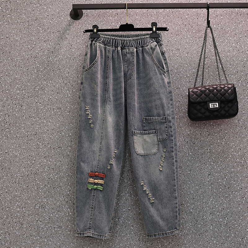 Летний цветовой круг, джинсы, штаны, большой размер, по фигуре, свободный крой