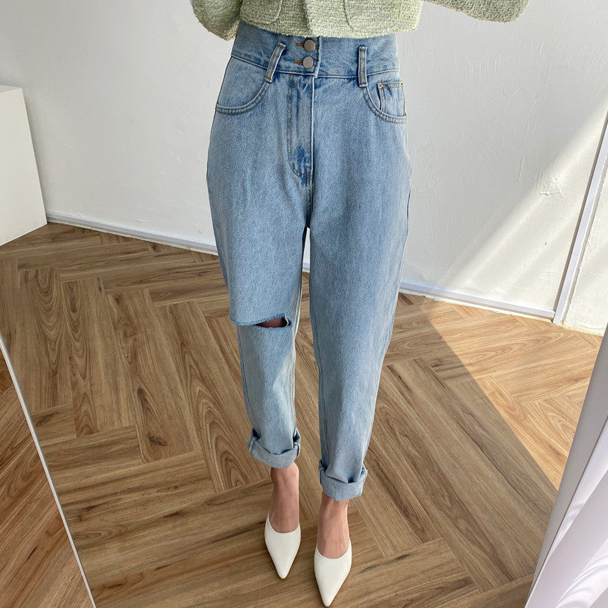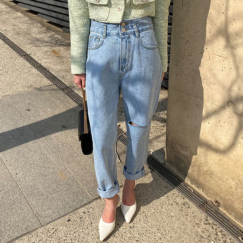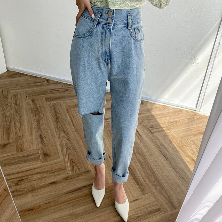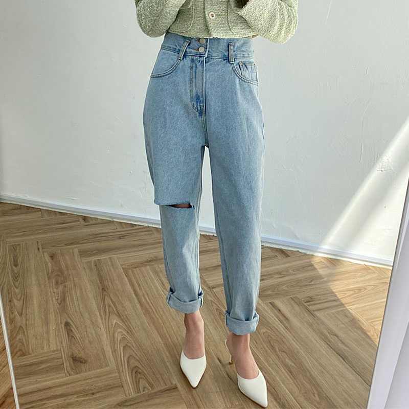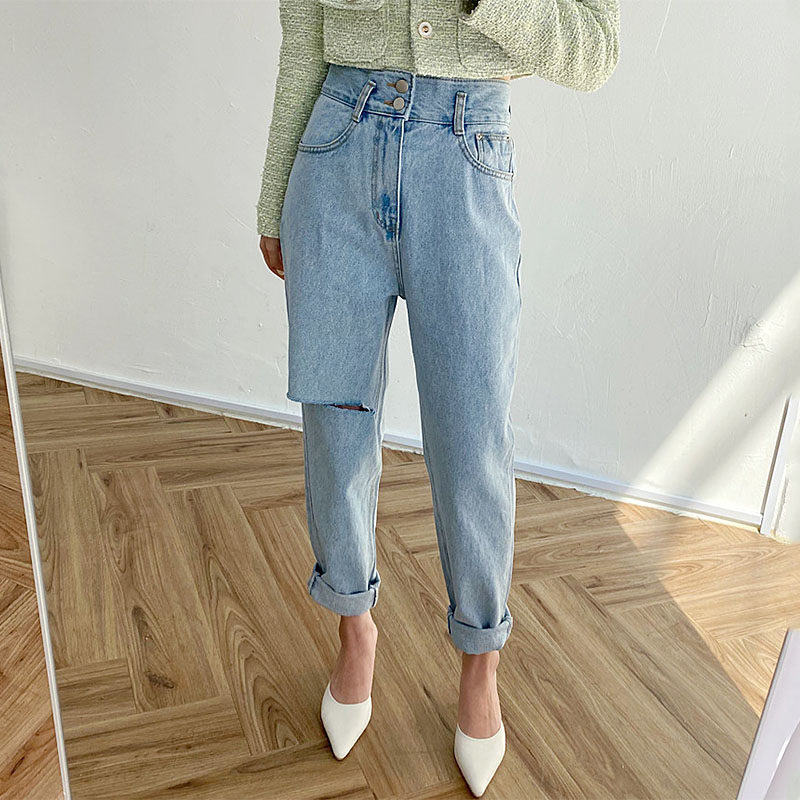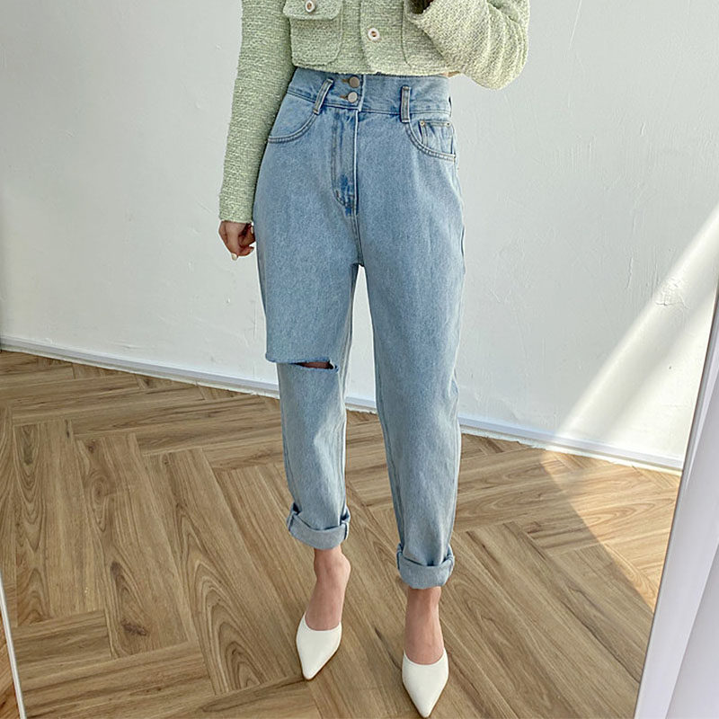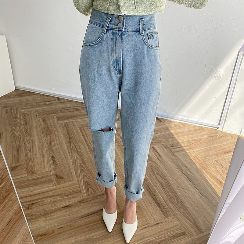 Весенние ретро штаны, джинсы, в корейском стиле, высокая талия