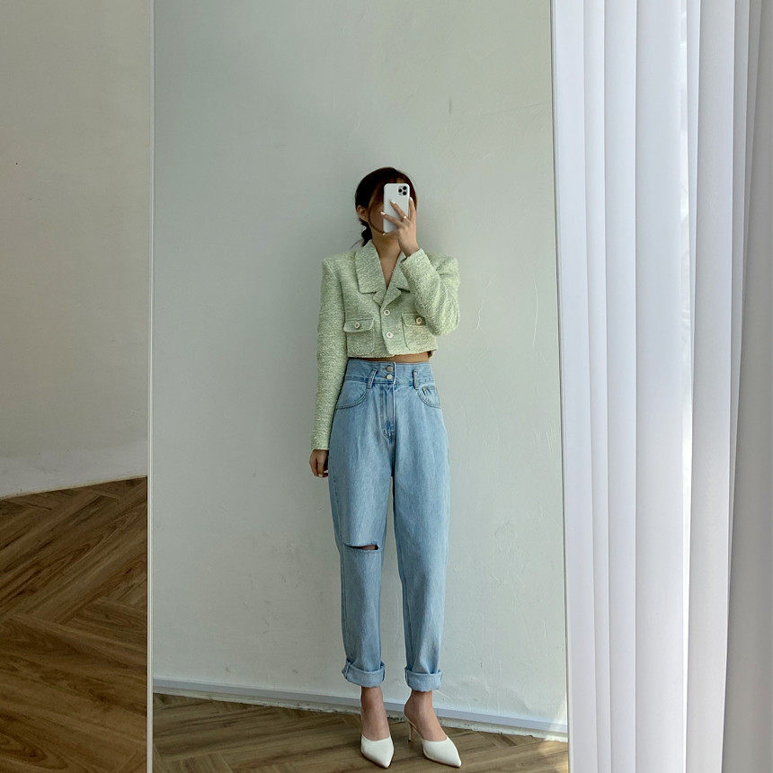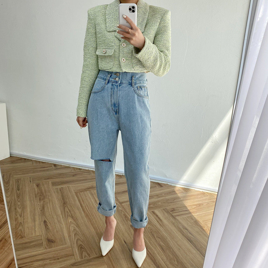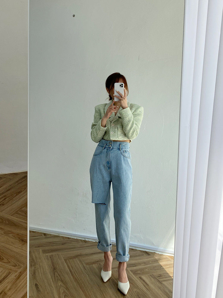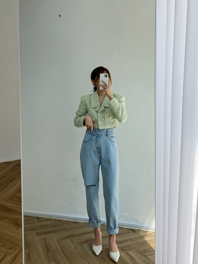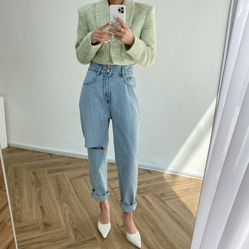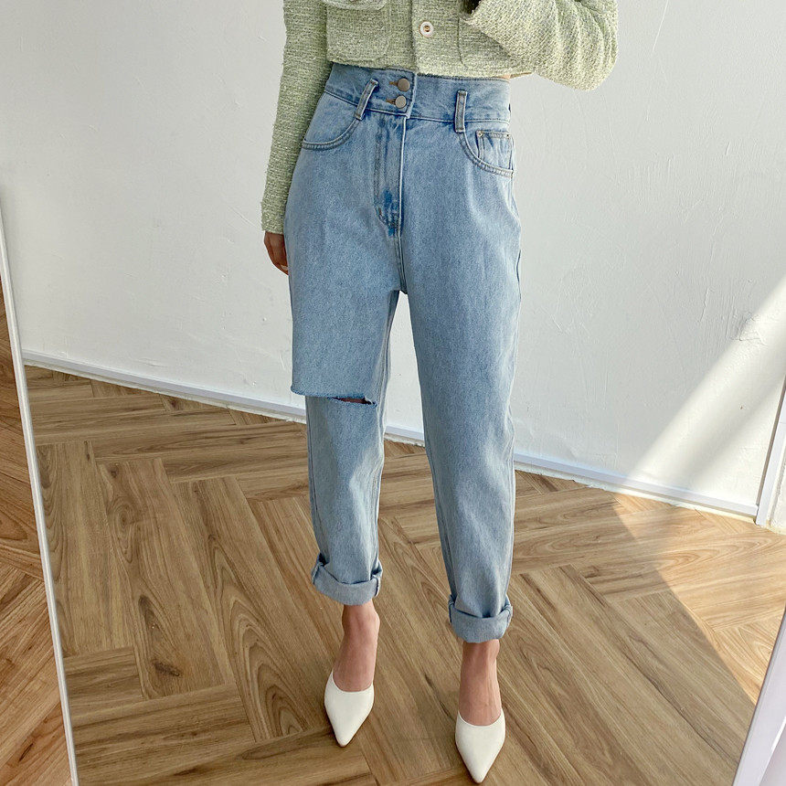 Весенние ретро штаны, джинсы, в корейском стиле, высокая талия
