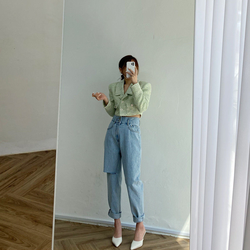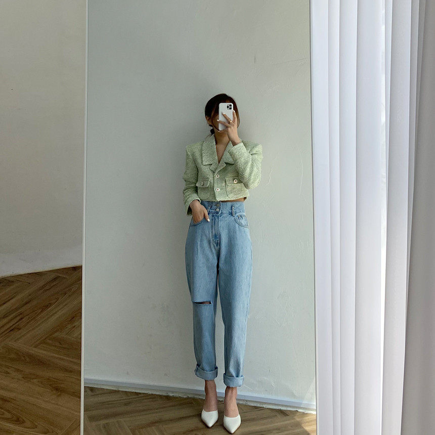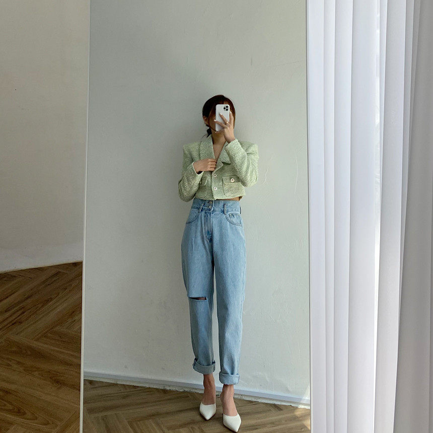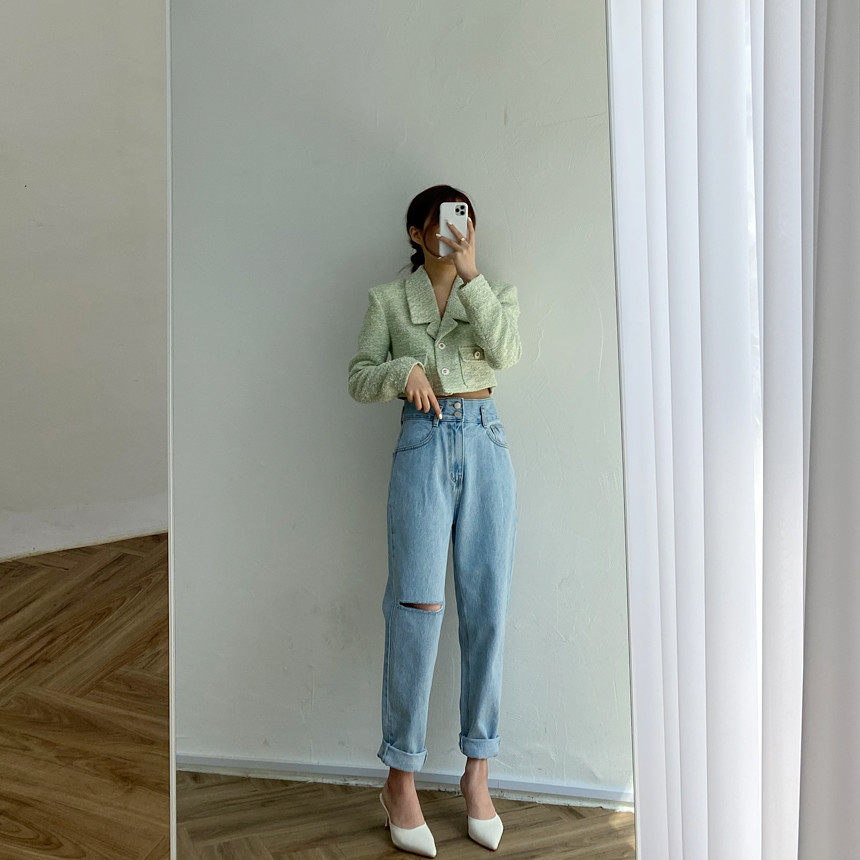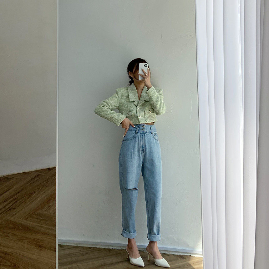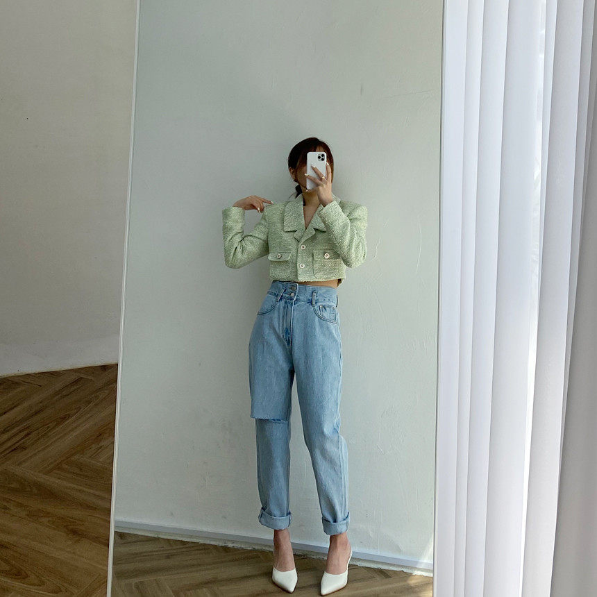 Весенние ретро штаны, джинсы, в корейском стиле, высокая талия
