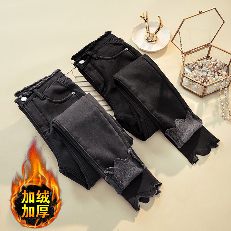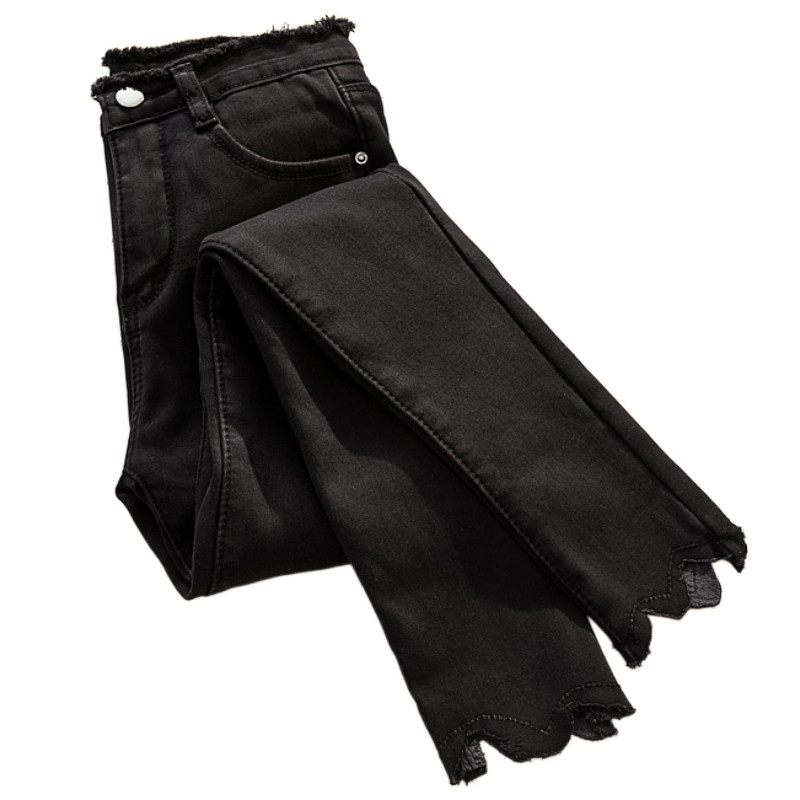 Вырежьте лейбл женский подлинный хвостовой скидку экспорт роскошные роскошные название высокая талия и тонкая упругая девять -точковые джинсы