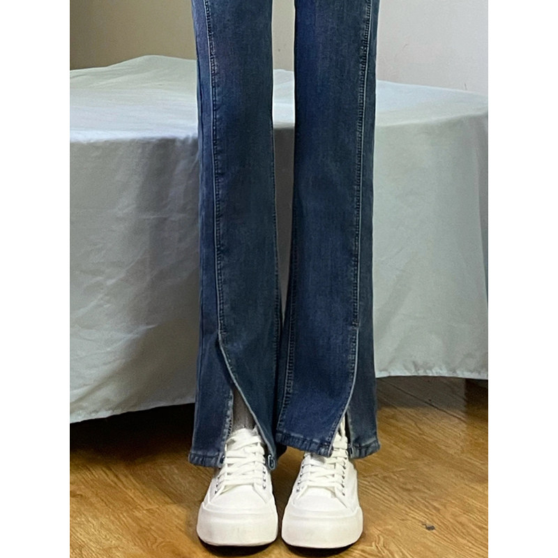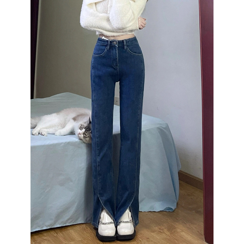Ретро мегафон, джинсовые высокие джинсы, приталенные сексуальные осенние синие штаны