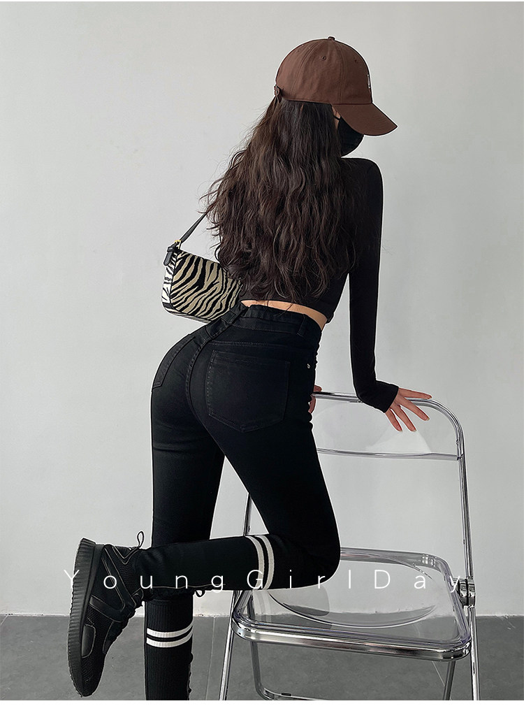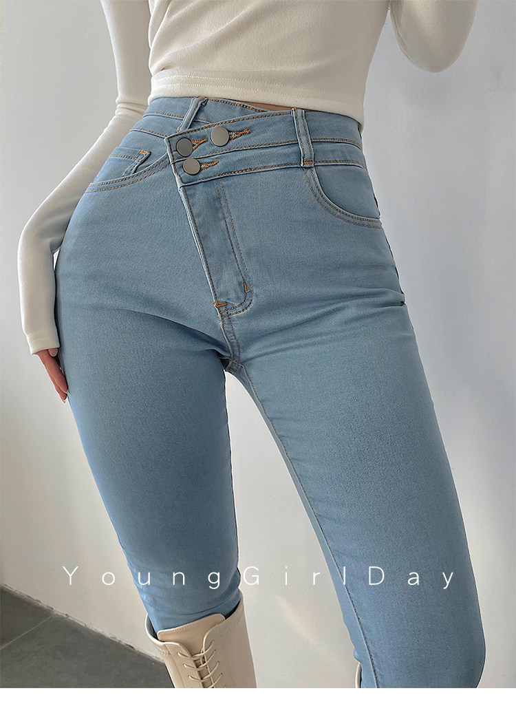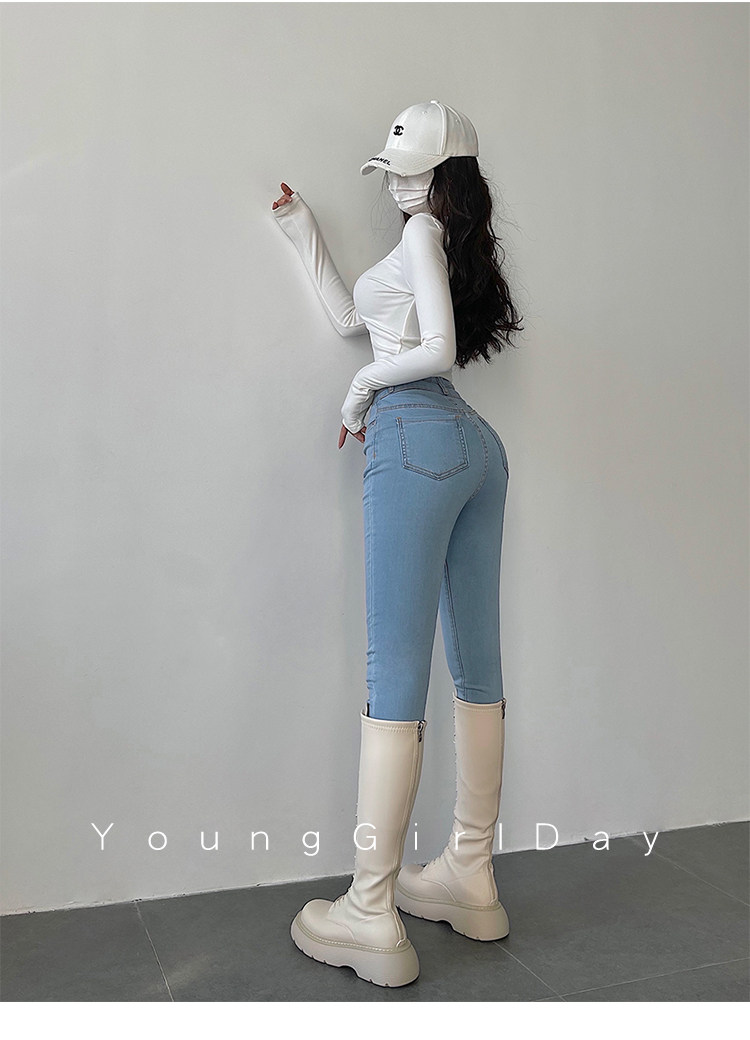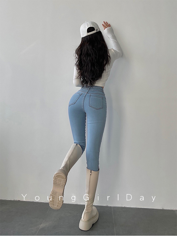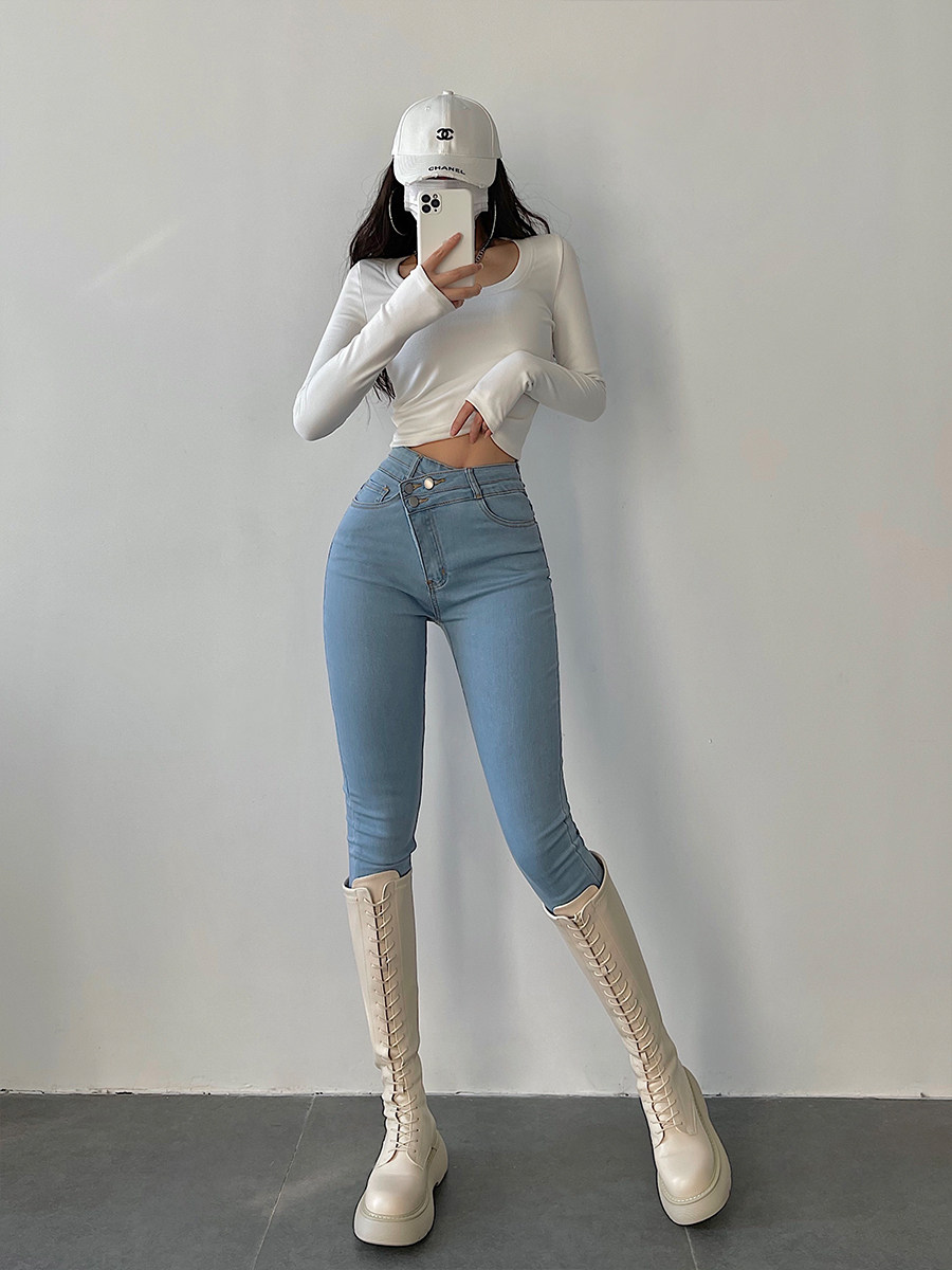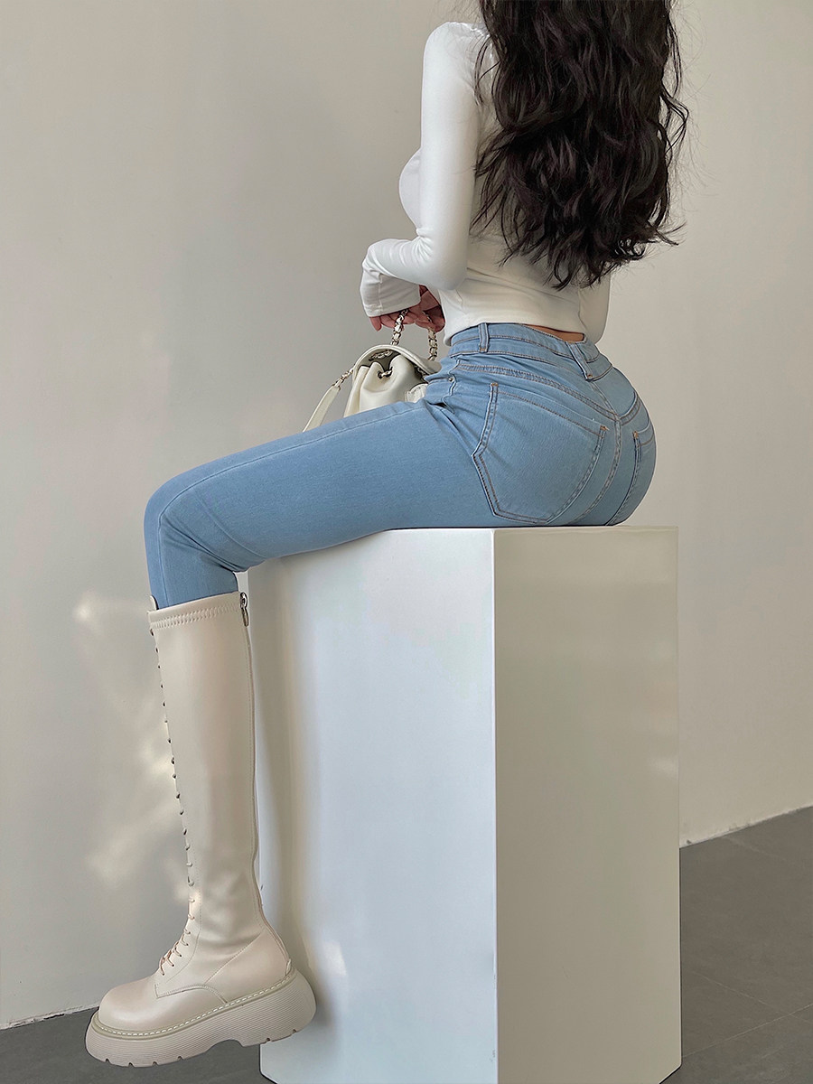 Эластичный карандаш, джинсы, штаны, европейский стиль, высокая талия, в обтяжку, по фигуре