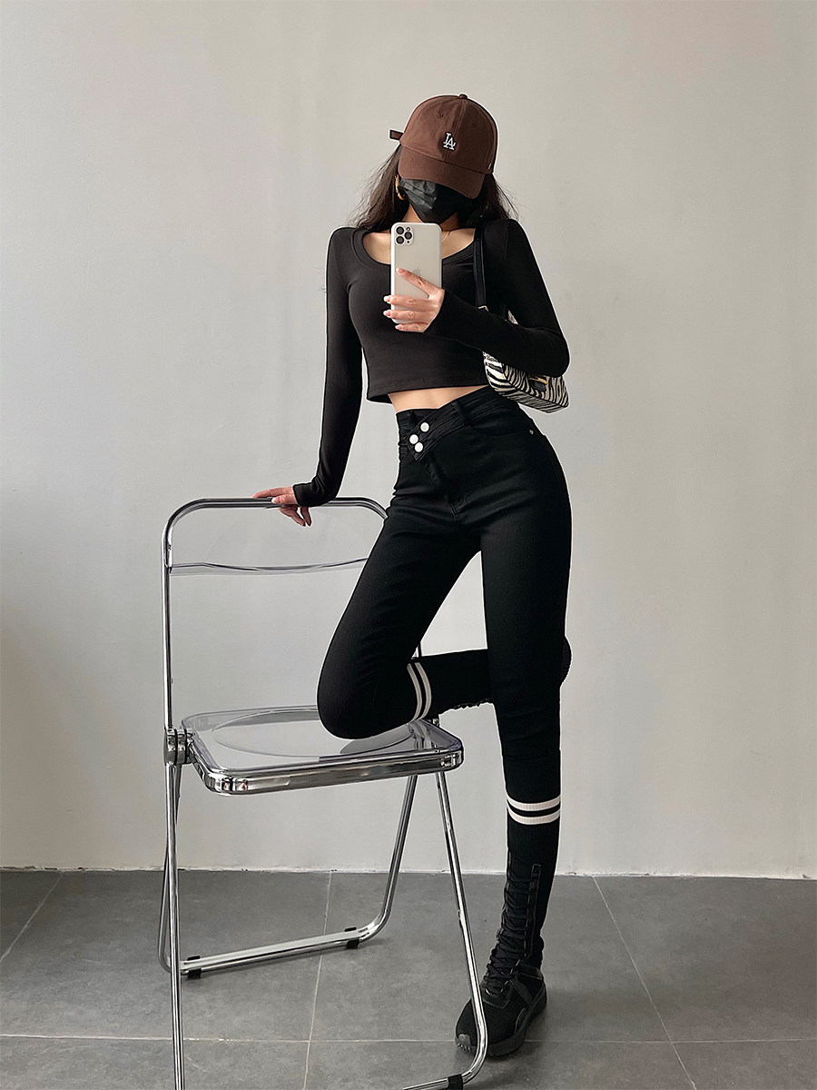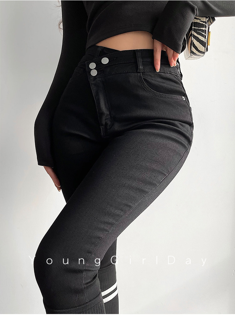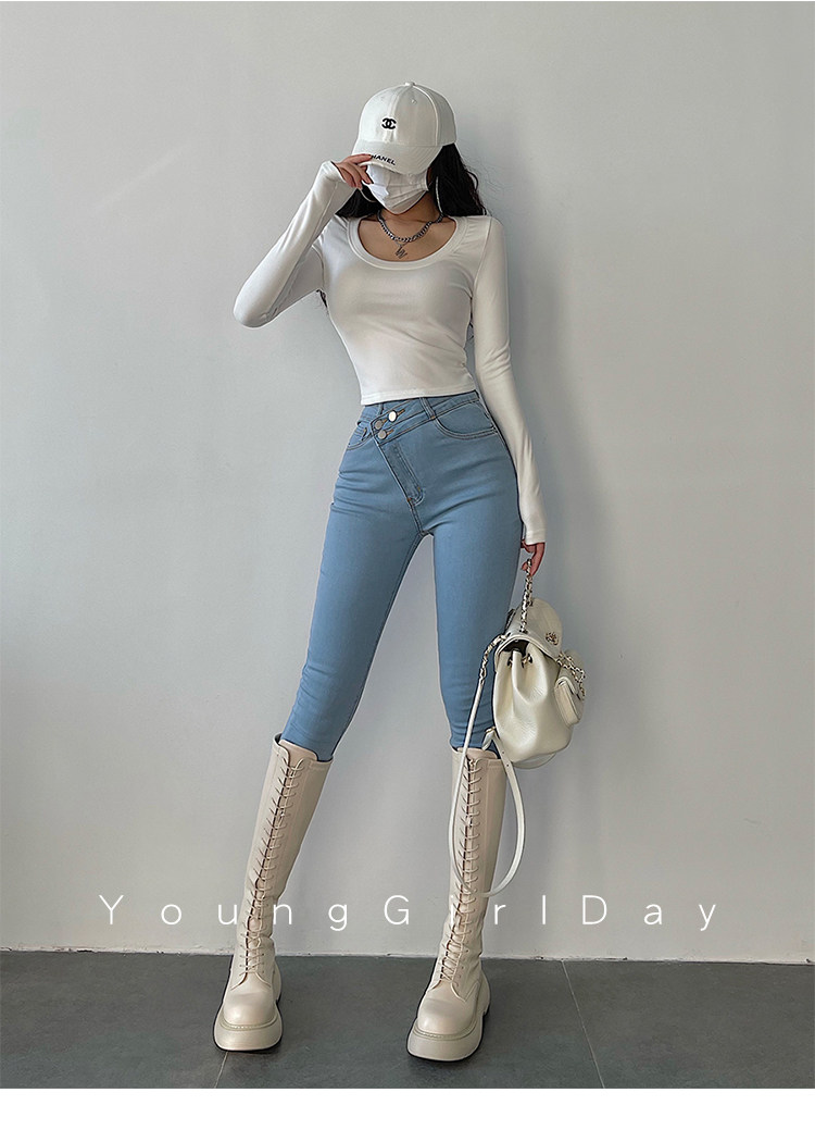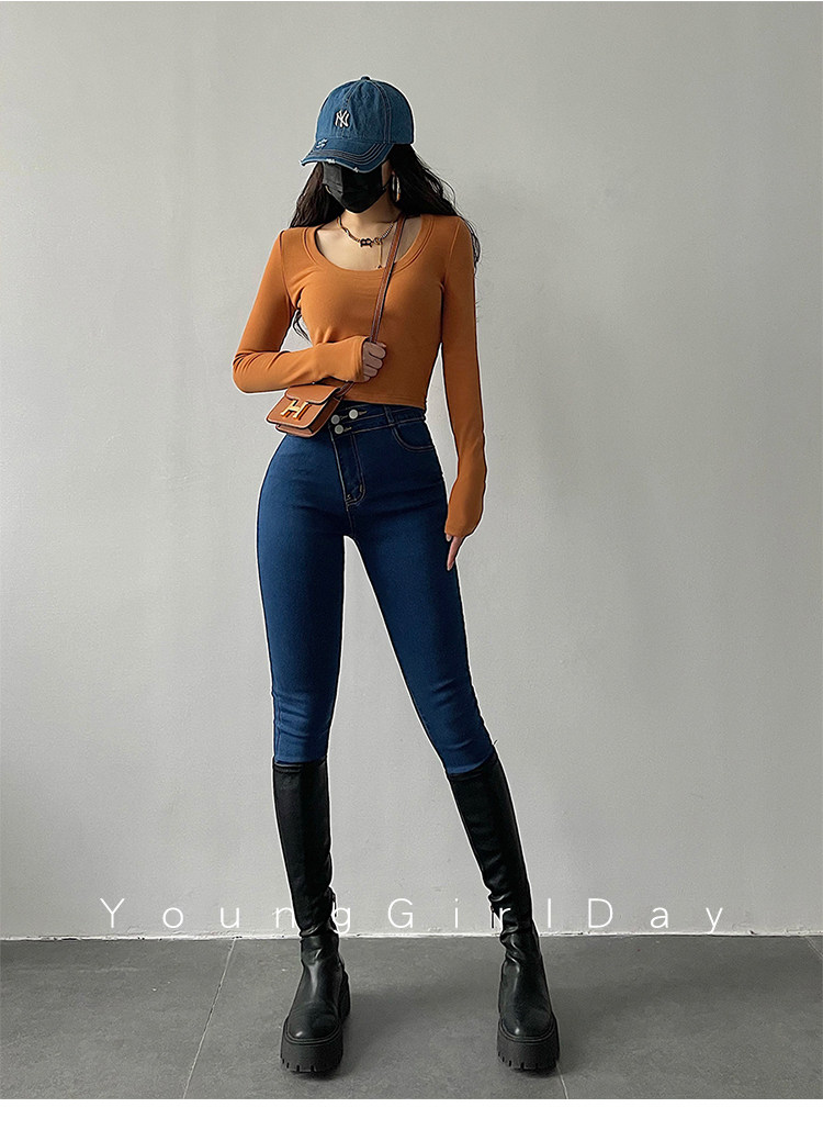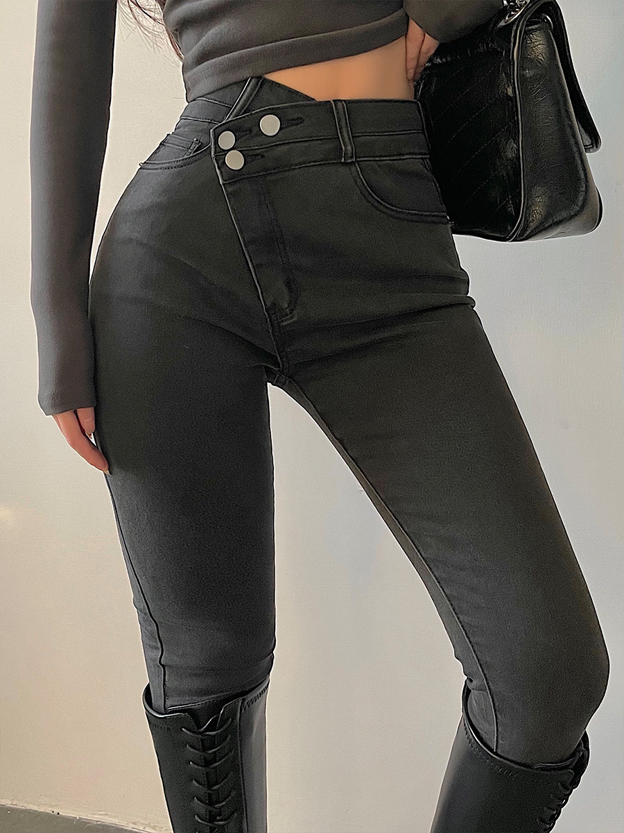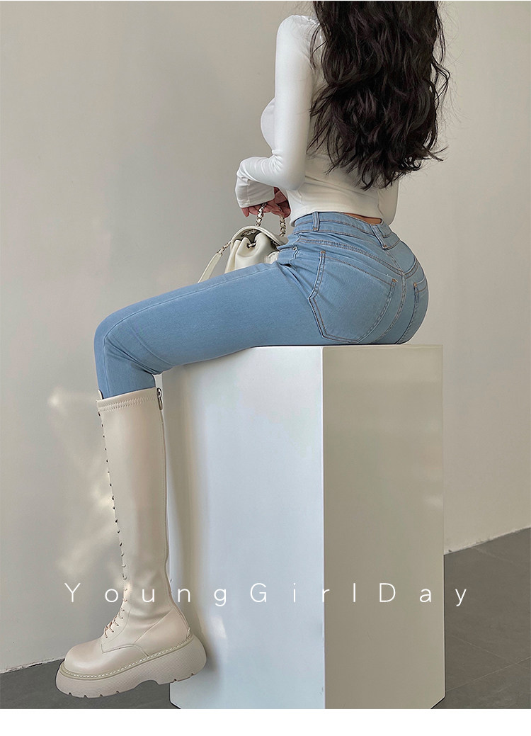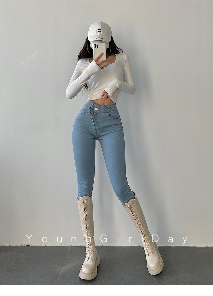 Эластичный карандаш, джинсы, штаны, европейский стиль, высокая талия, в обтяжку, по фигуре