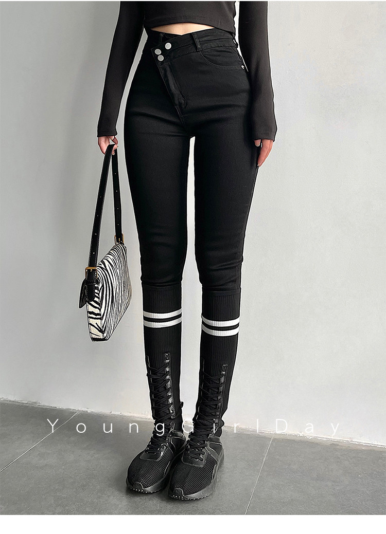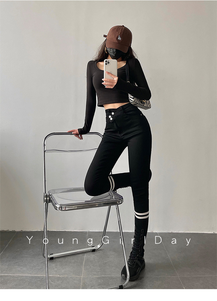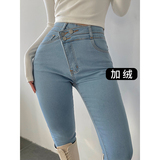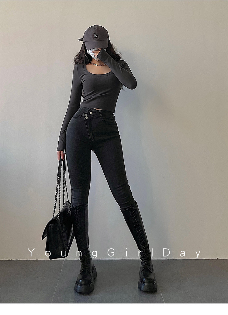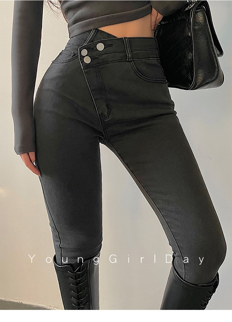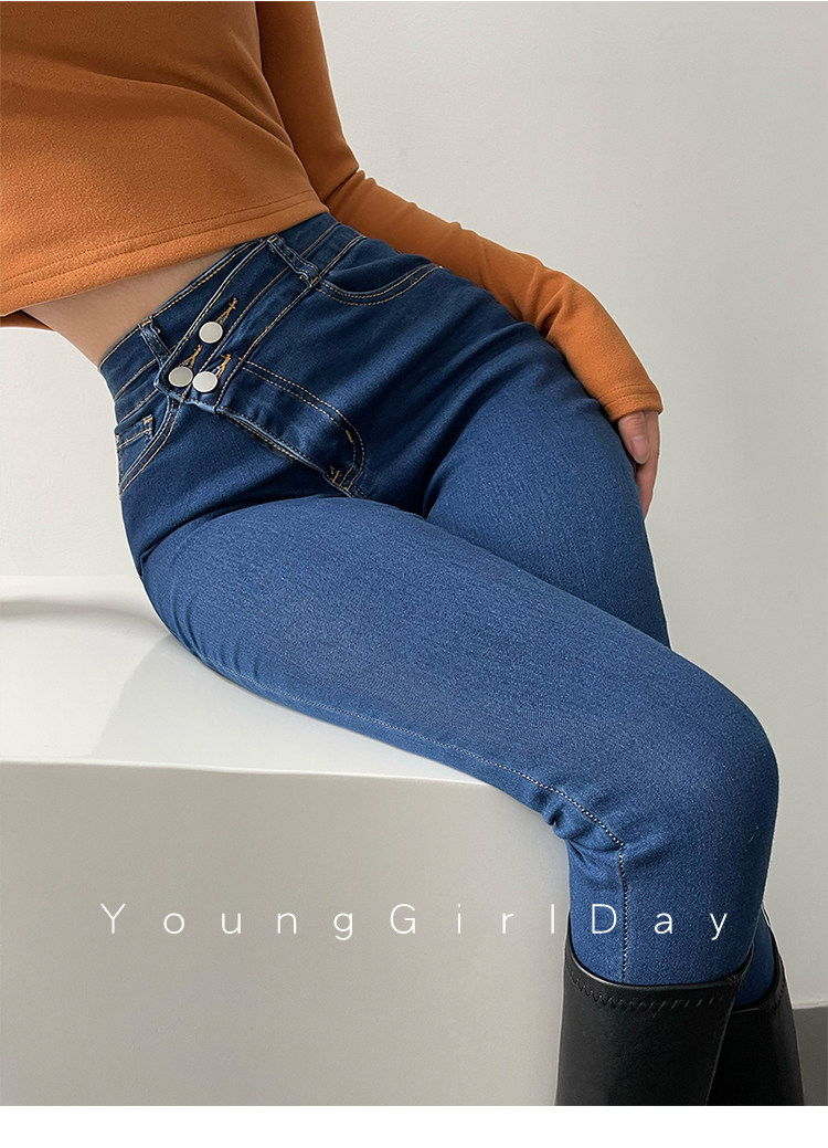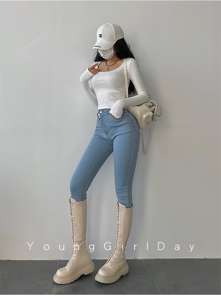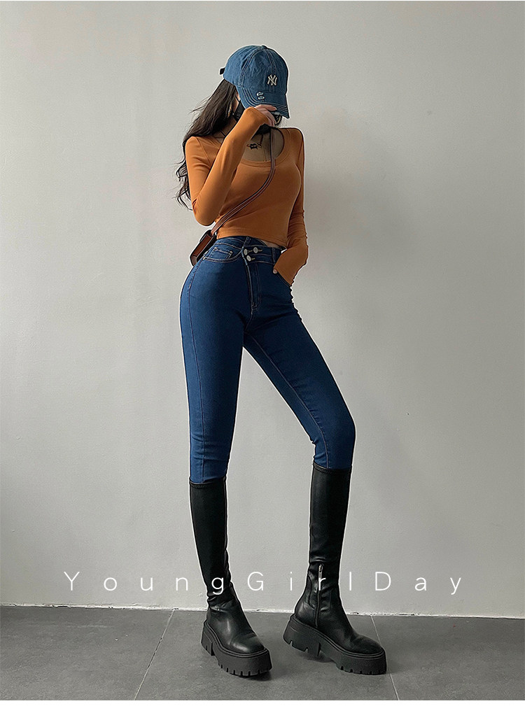Эластичный карандаш, джинсы, штаны, европейский стиль, высокая талия, в обтяжку, по фигуре