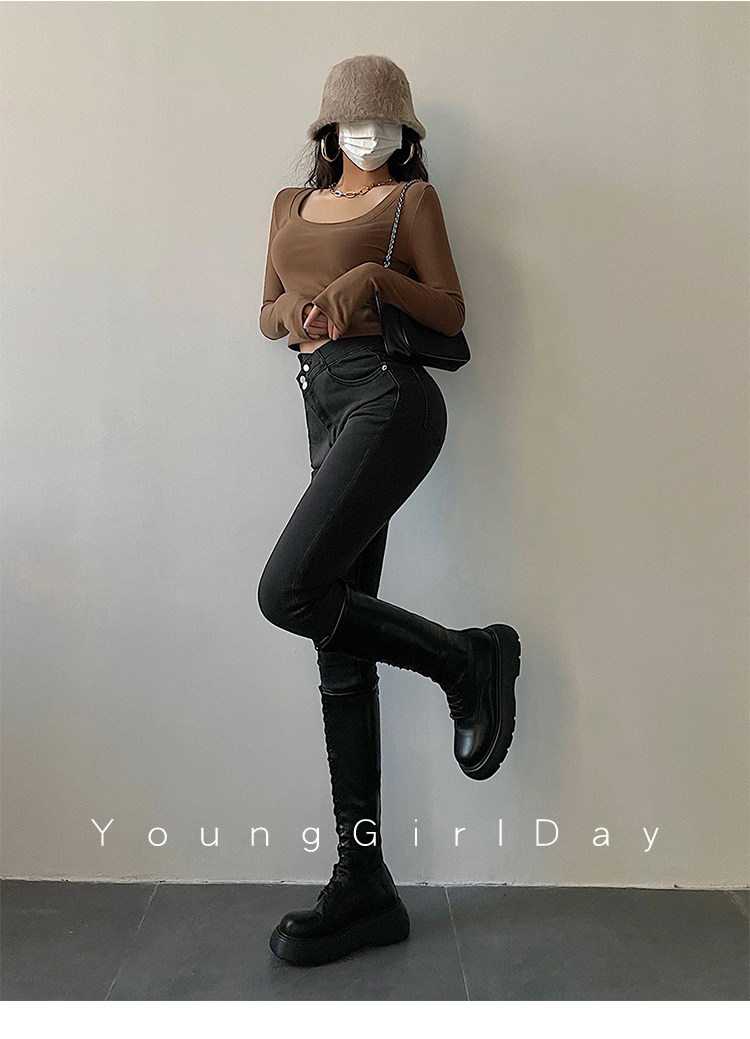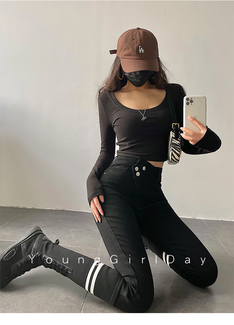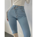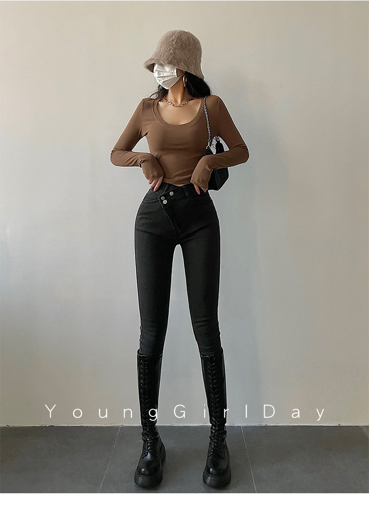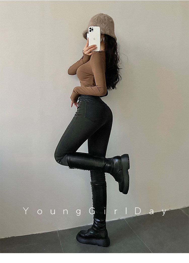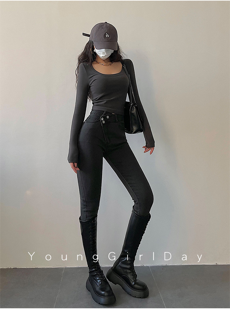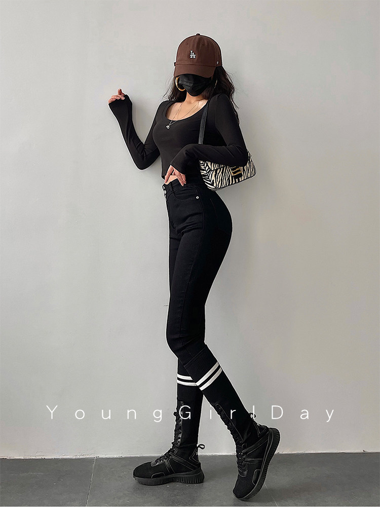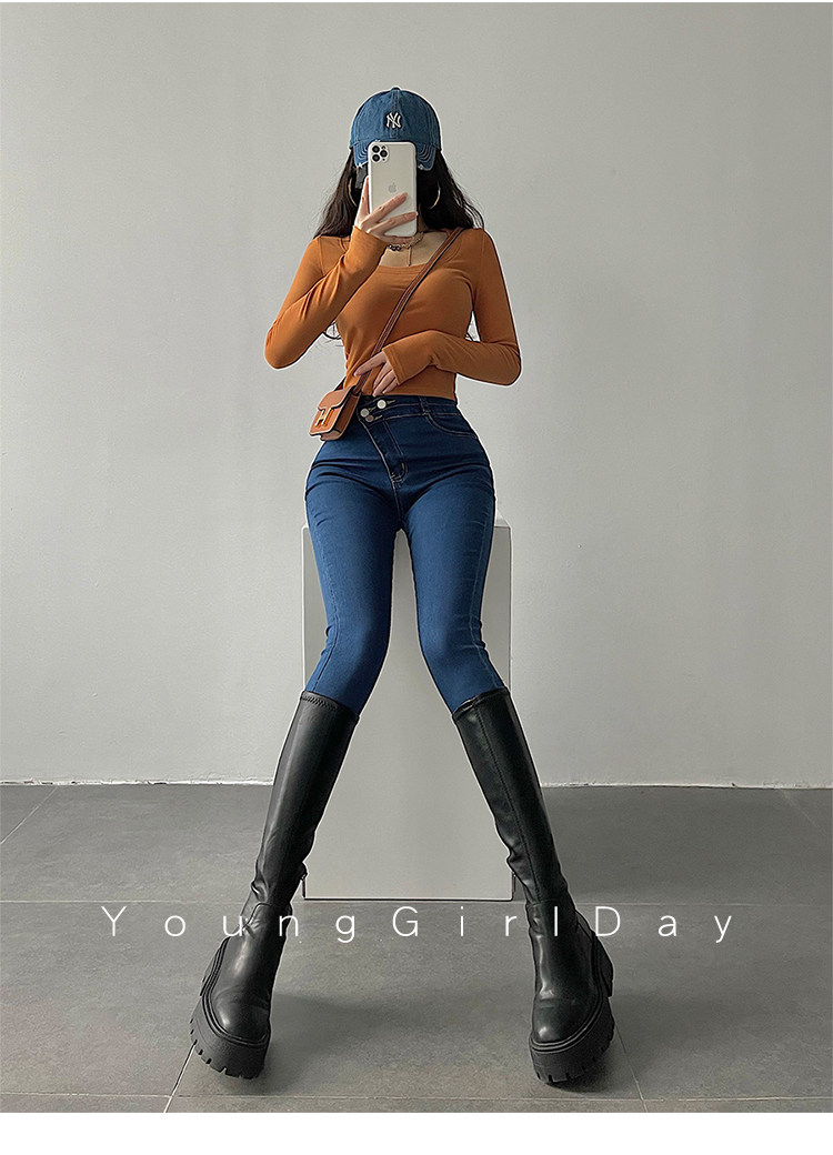 Эластичный карандаш, джинсы, штаны, европейский стиль, высокая талия, в обтяжку, по фигуре