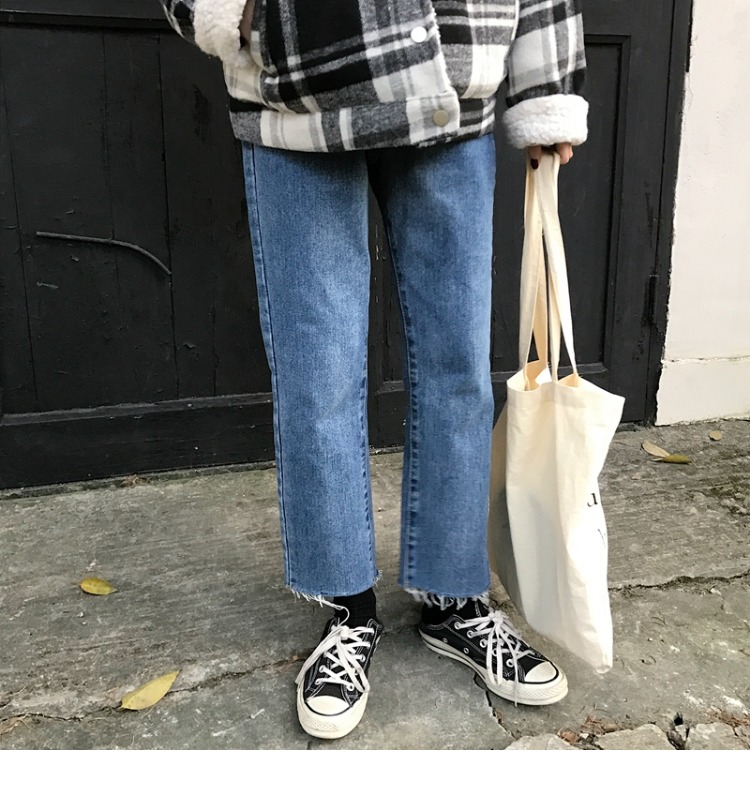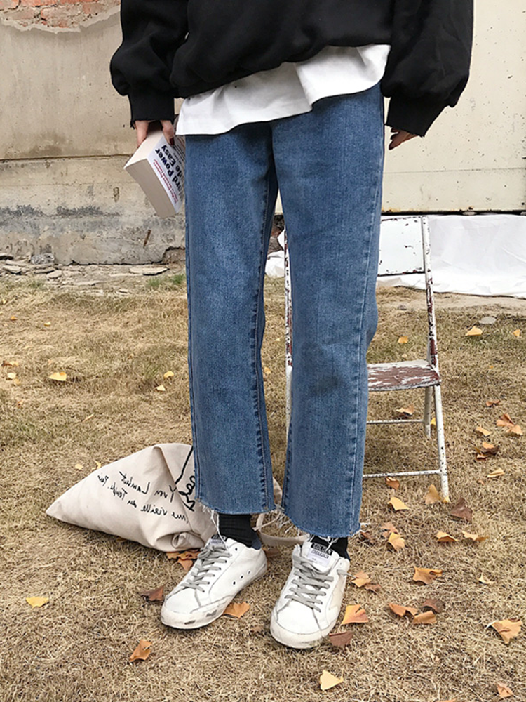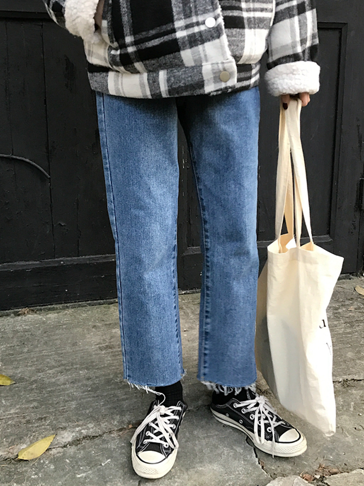 Джинсы, осенние штаны, для формы тела «груша», большой размер, высокая талия, по фигуре, свободный прямой крой