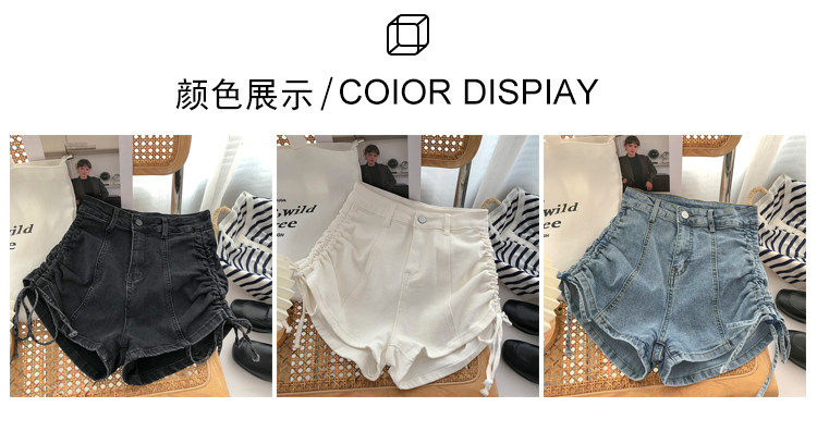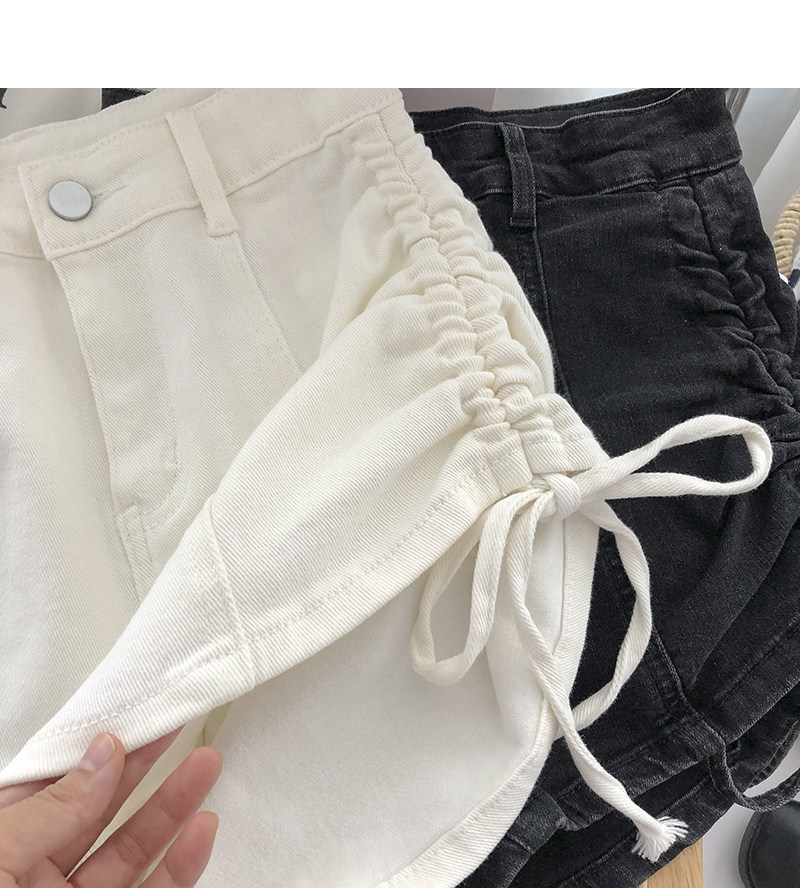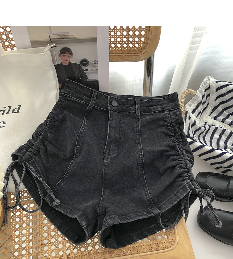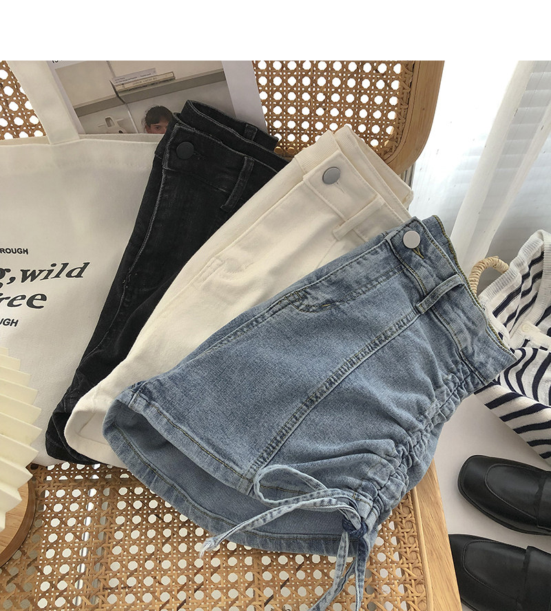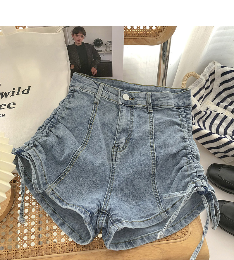 Джинсовые шорты, осенние штаны, на шнурках, высокая талия, А-силуэт, в корейском стиле, по фигуре