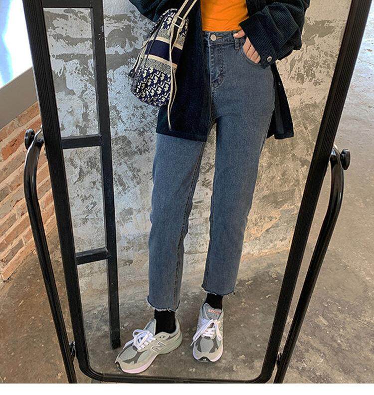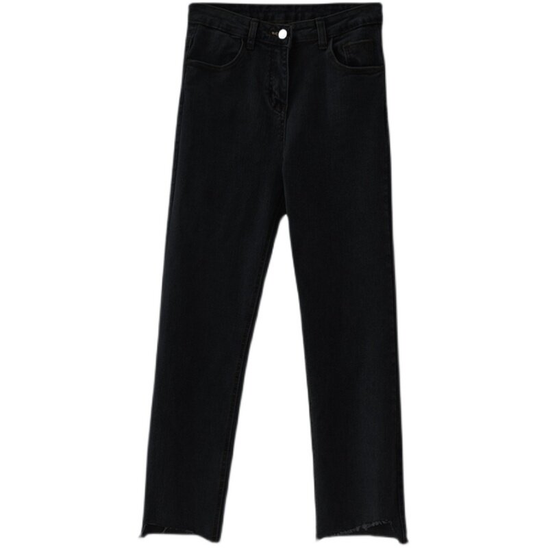 Осенние штаны, эластичные прямые свободные джинсы, для формы тела «груша», большой размер, высокая талия, по фигуре