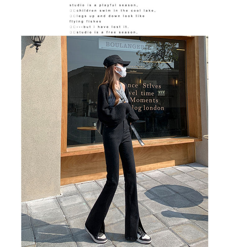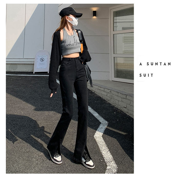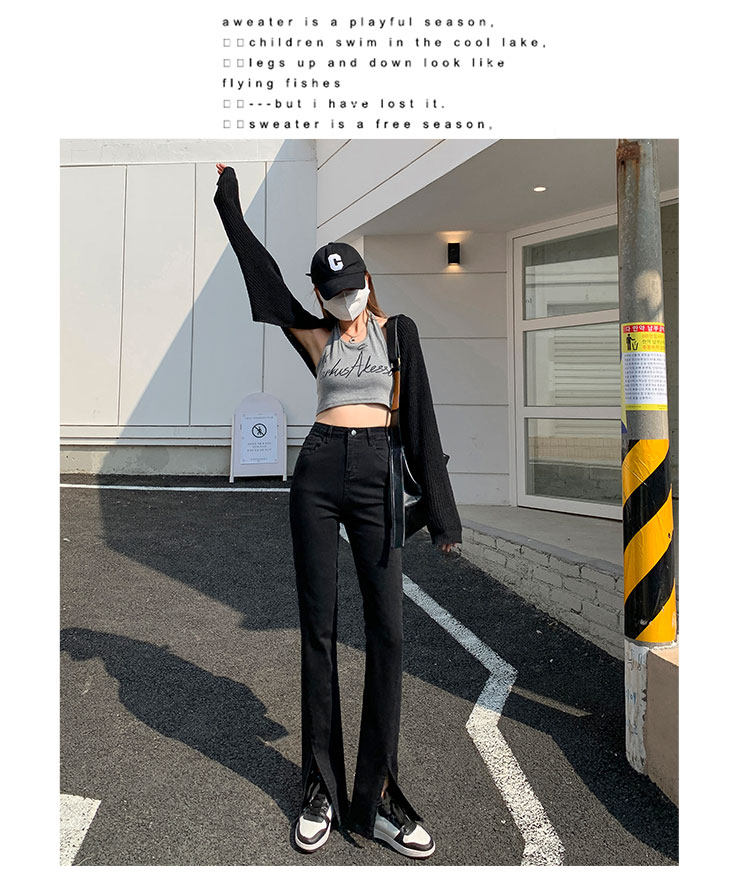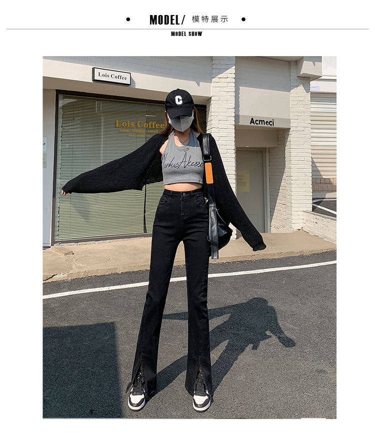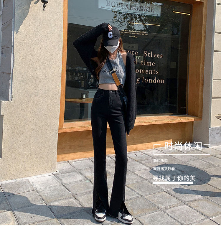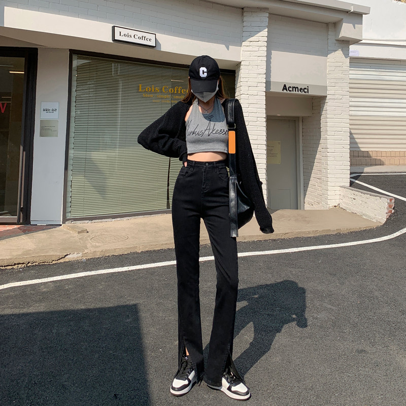 卡希琳 Черные джинсовые высокие джинсы, приталенные штаны, мегафон, свободный крой, подходит для подростков