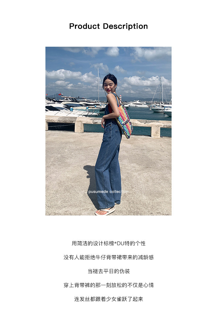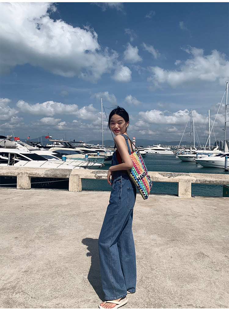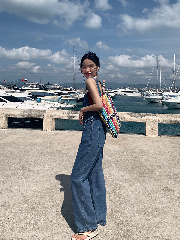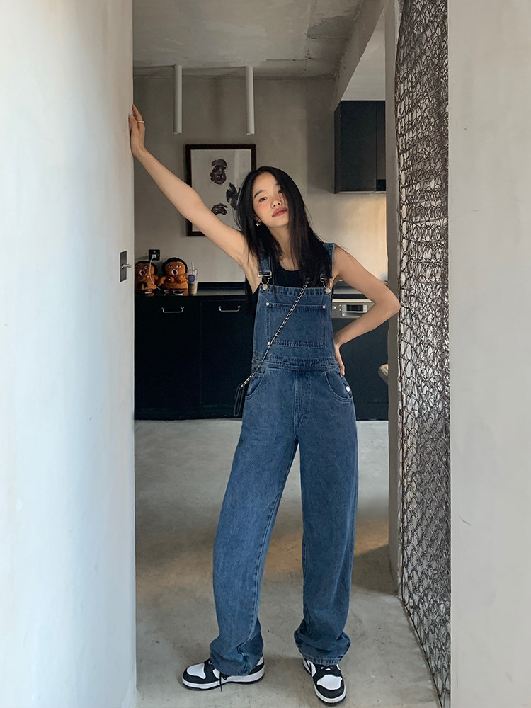 Джинсовый комбинезон, летние штаны, свободный прямой крой