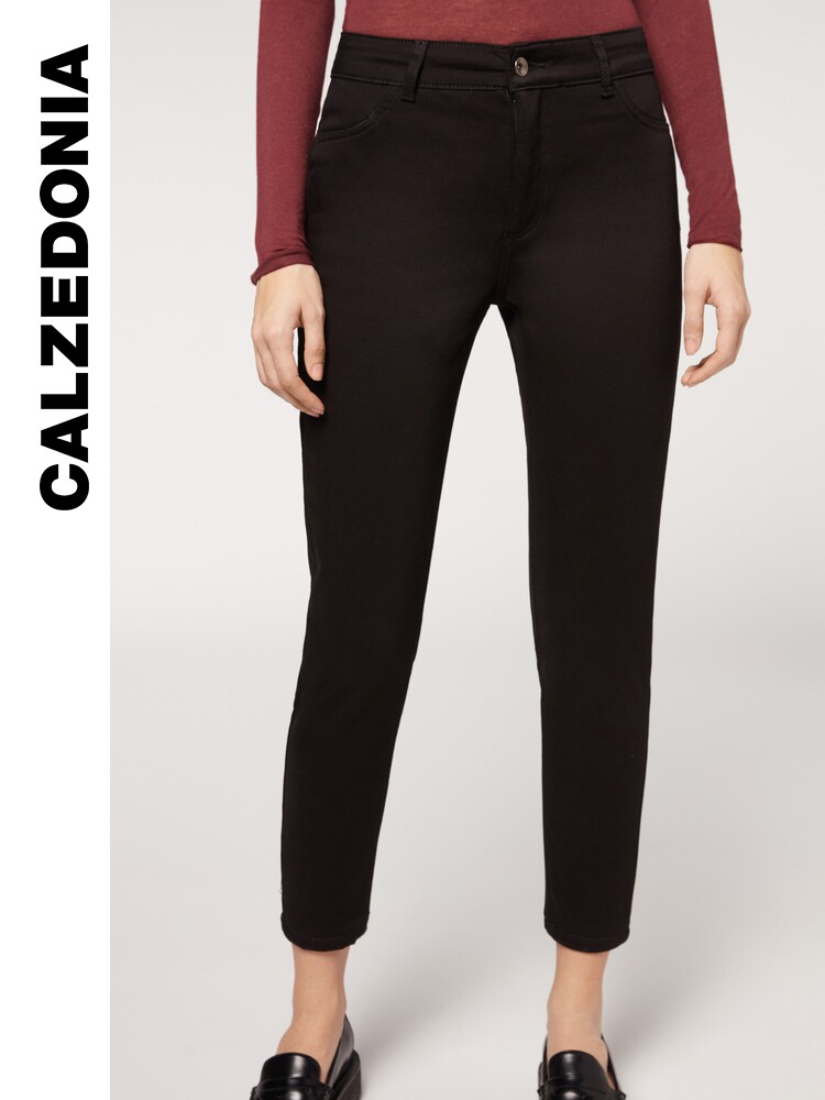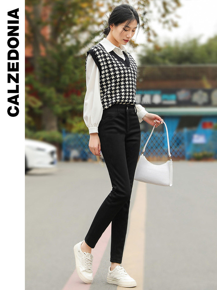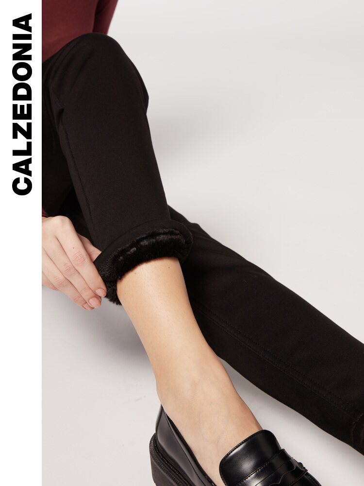 Демисезонные утепленные удерживающие тепло комфортные черные джинсы, облегающий крой
