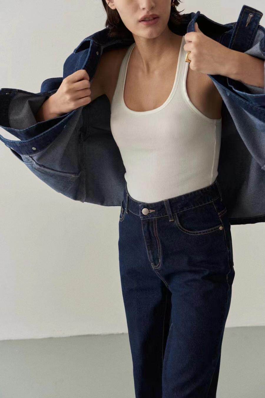 Выберите экологически чистую антихромосомную пряжу, чтобы попытаться уменьшить потерю цвета джинсов (но темные джинсы все еще неизбежно имеют небольшую потерю цвета, пожалуйста, поймите)