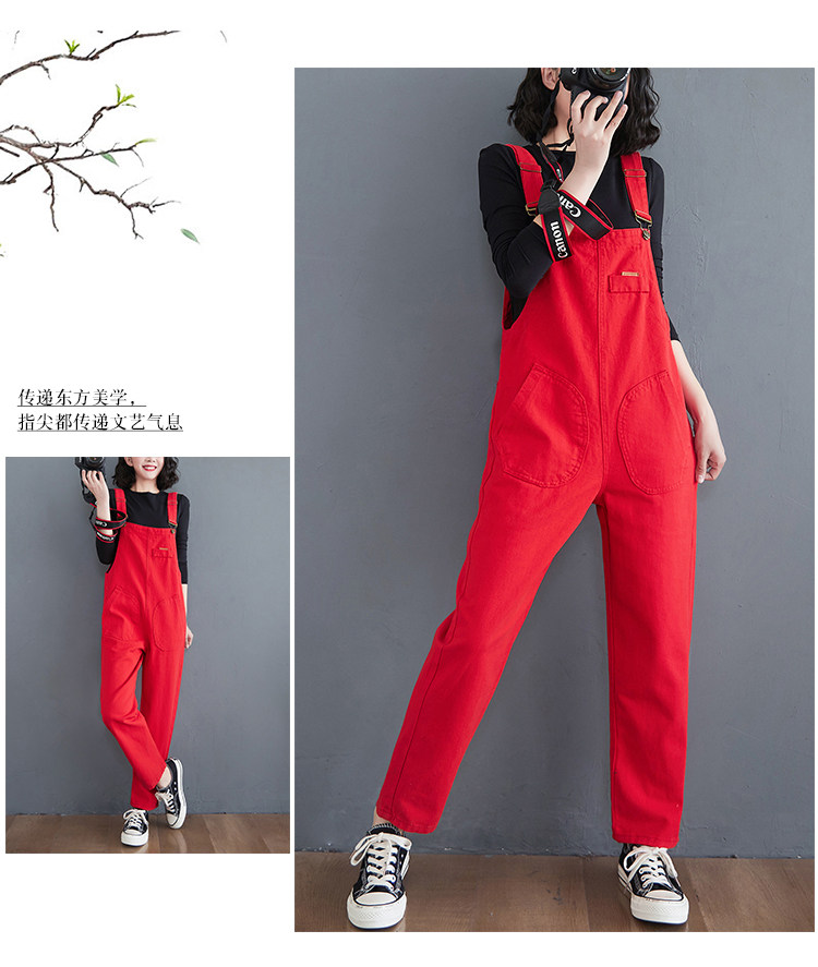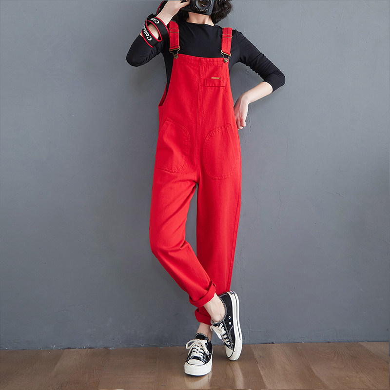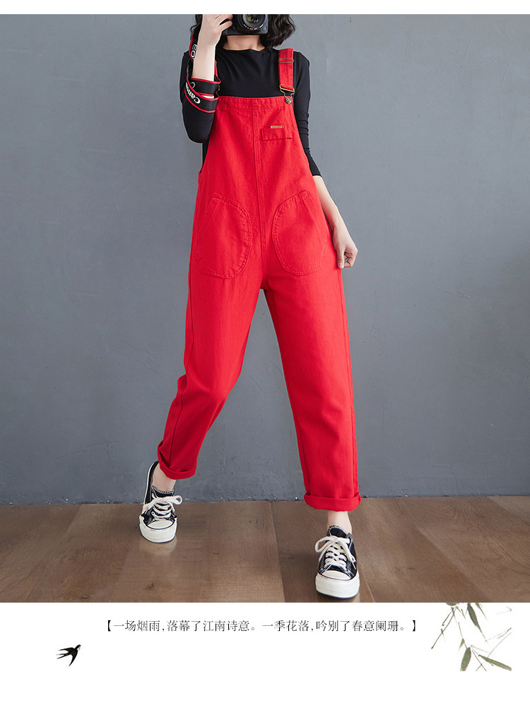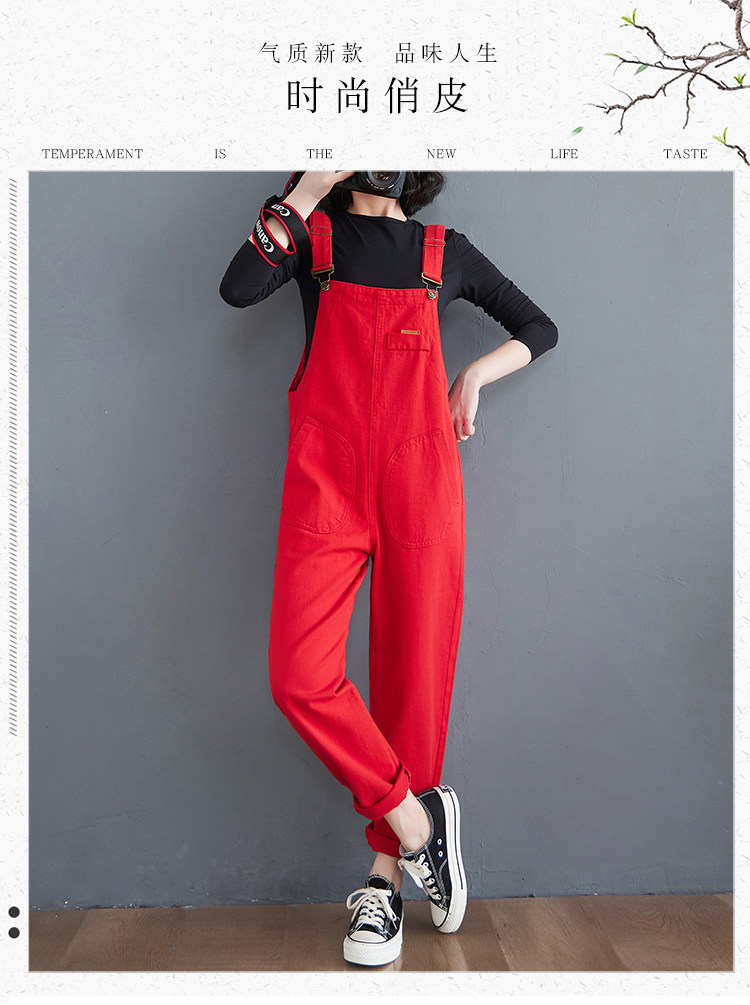 Красный джинсовый комбинезон, штаны для школьников и студентов, коллекция 2022, в корейском стиле