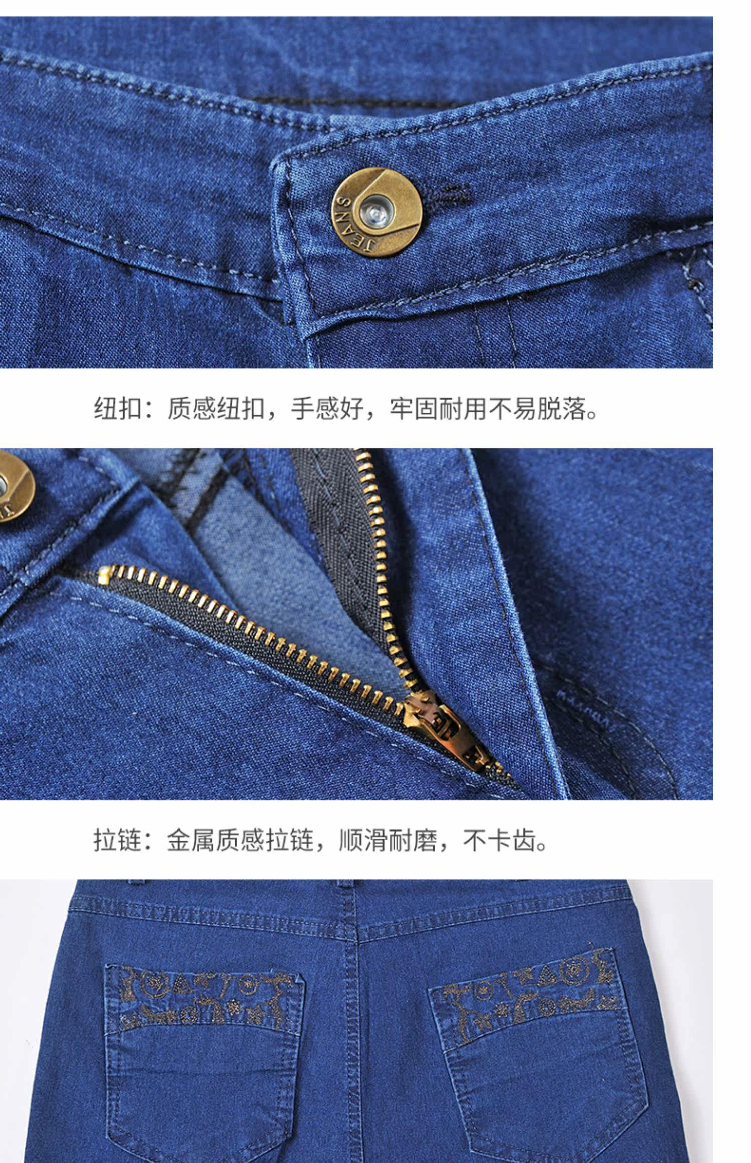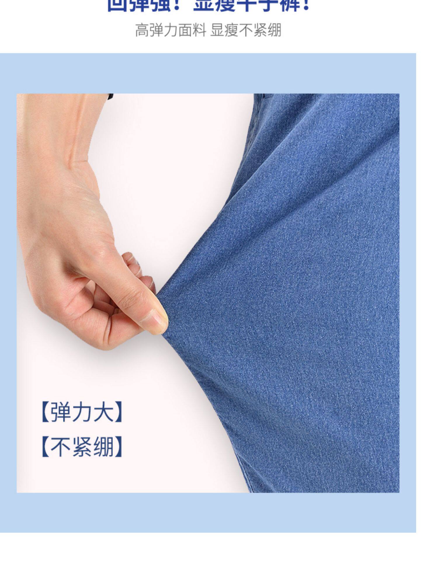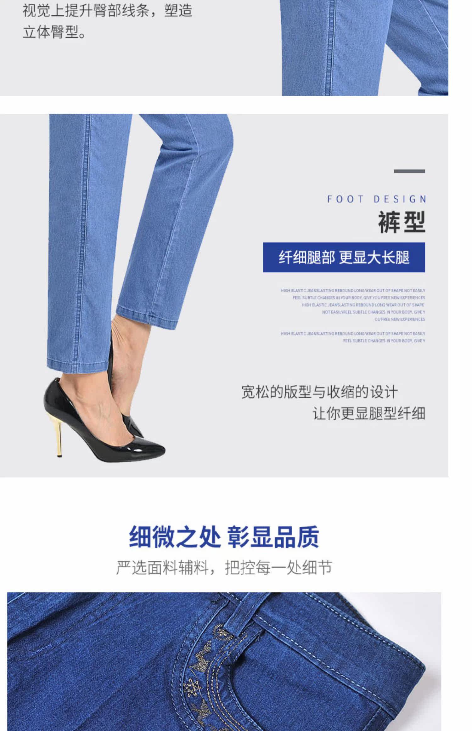 Весенние эластичные тонкие штаны, джинсы, свободный прямой крой, для среднего возраста, высокая талия