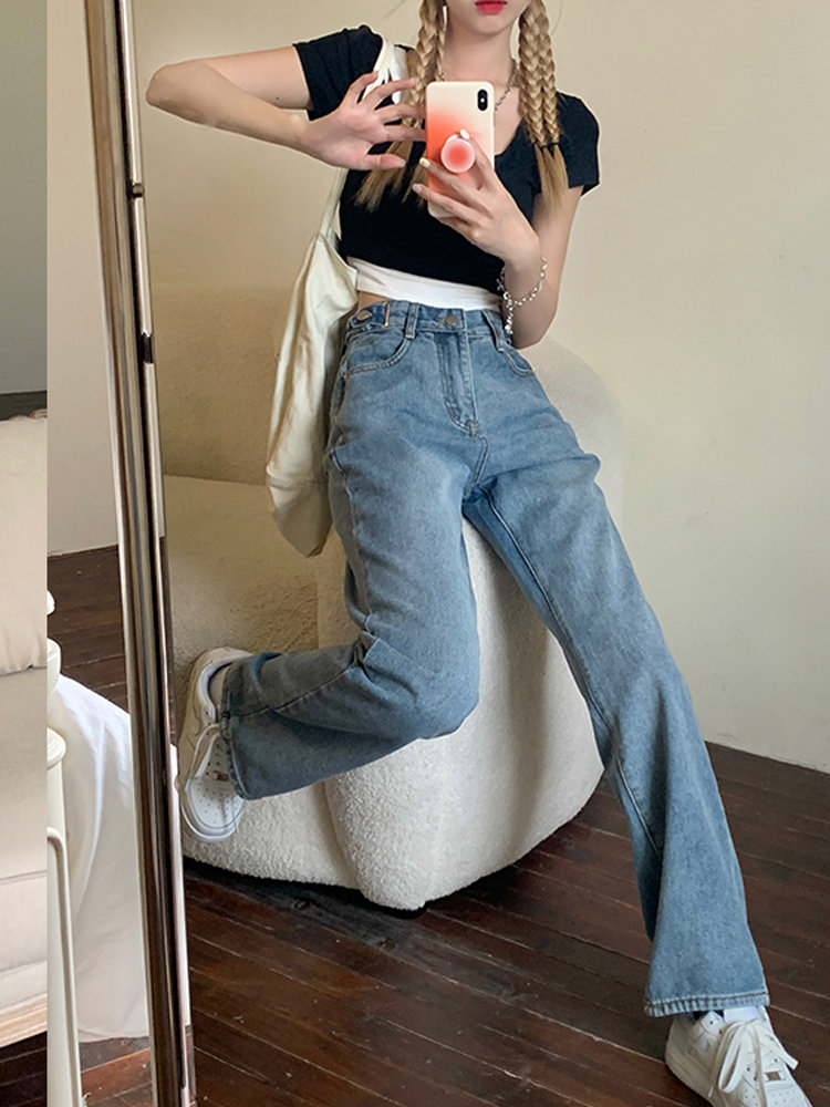 Штаны, осенние дизайнерские джинсы, 2023 года, высокая талия, тренд сезона, подходит для подростков, свободный прямой крой