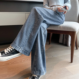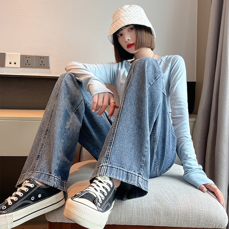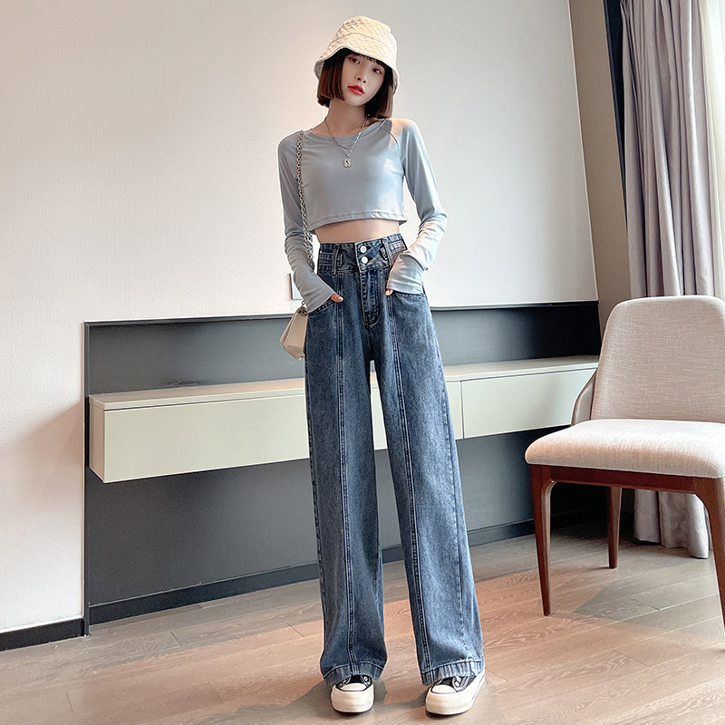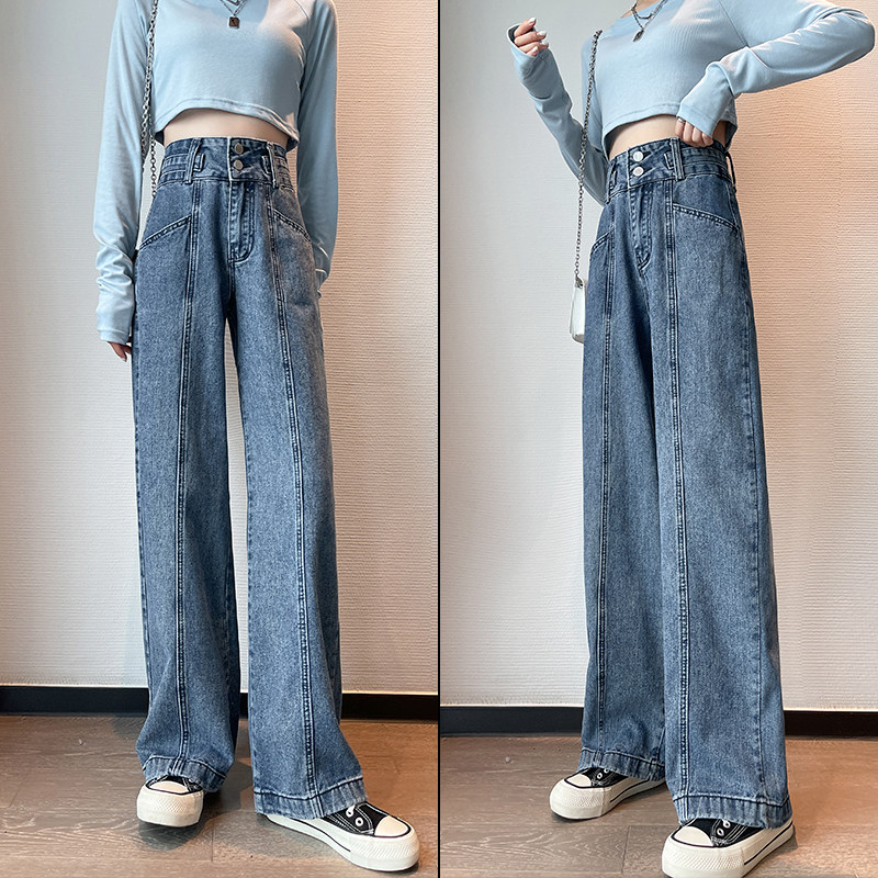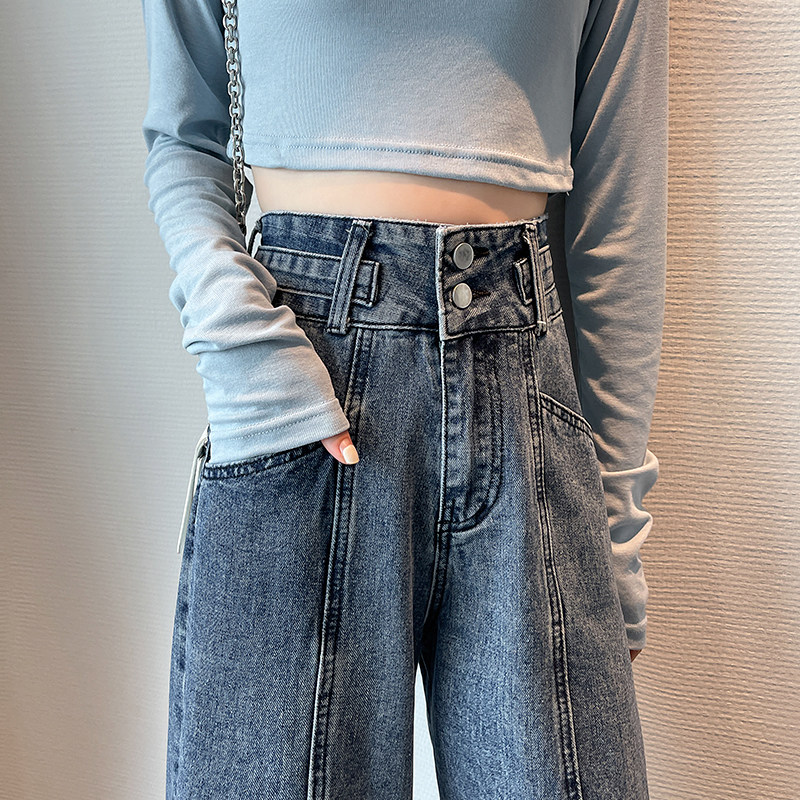 Осенние джинсы, штаны, свободный прямой крой, высокая талия, по фигуре