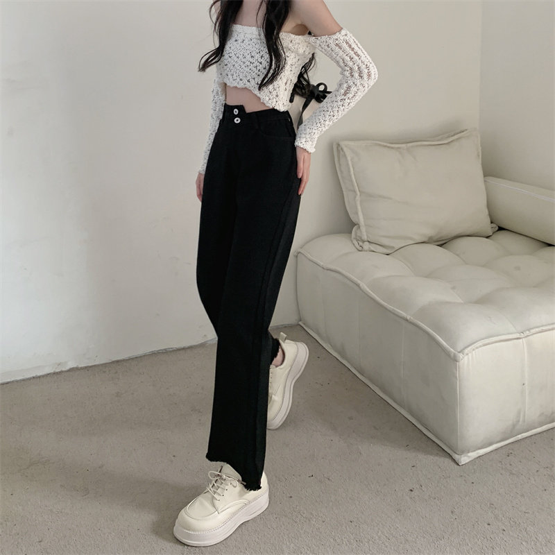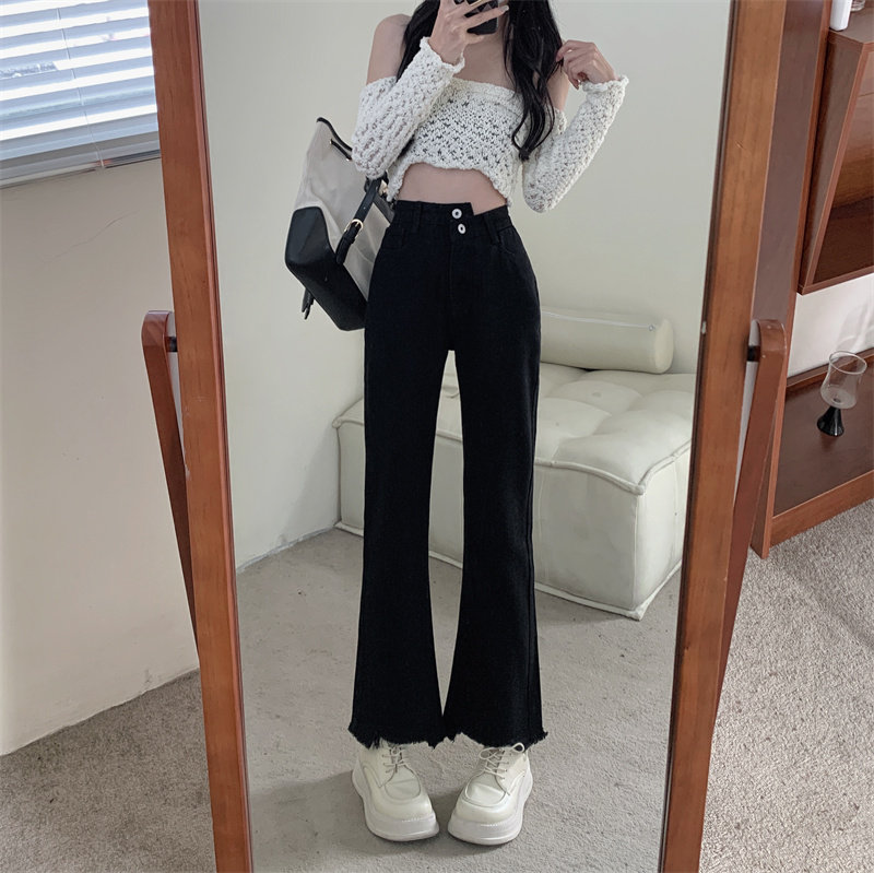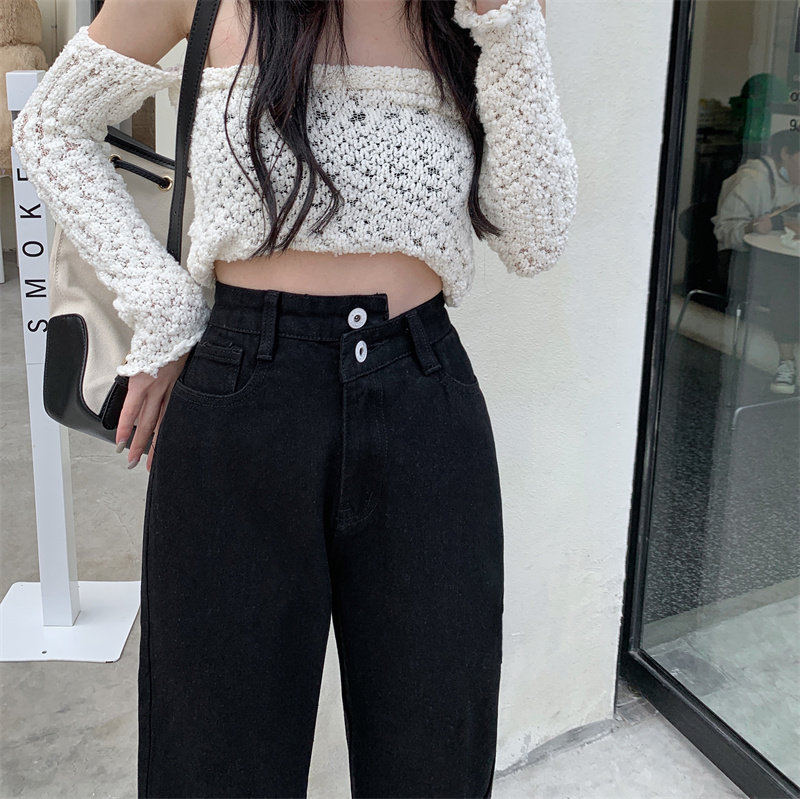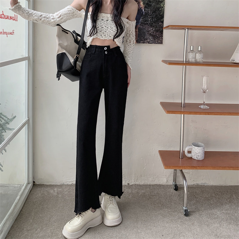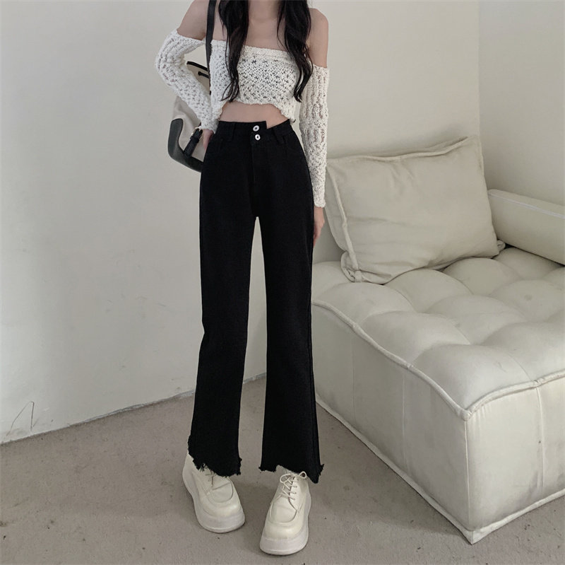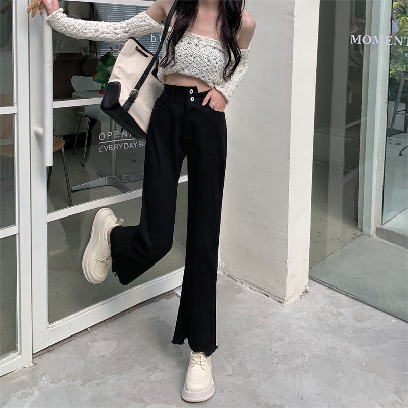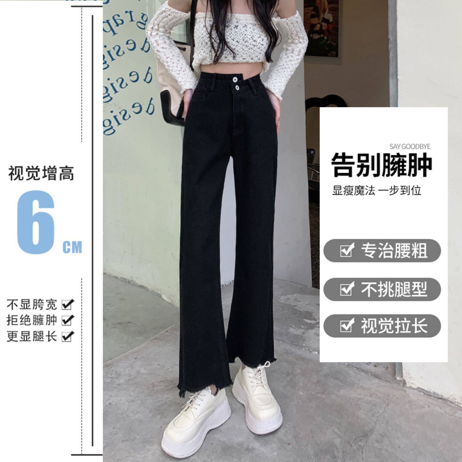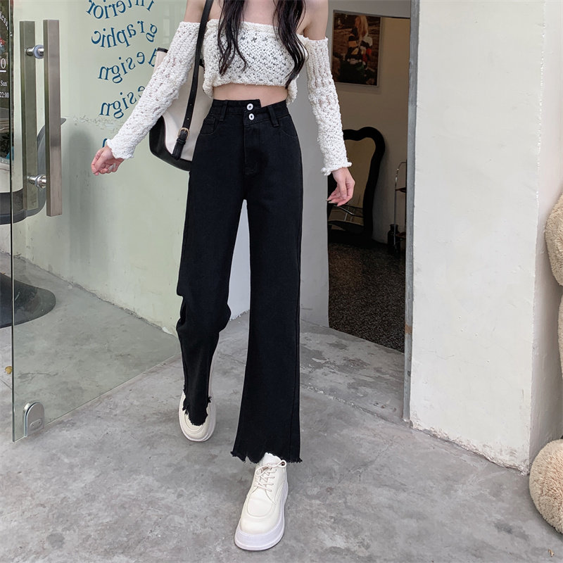 Осенние джинсы, штаны, приталенные дизайнерские леггинсы, большой размер, высокая талия, тренд сезона, свободный прямой крой