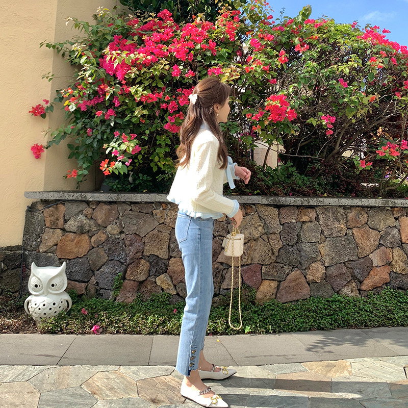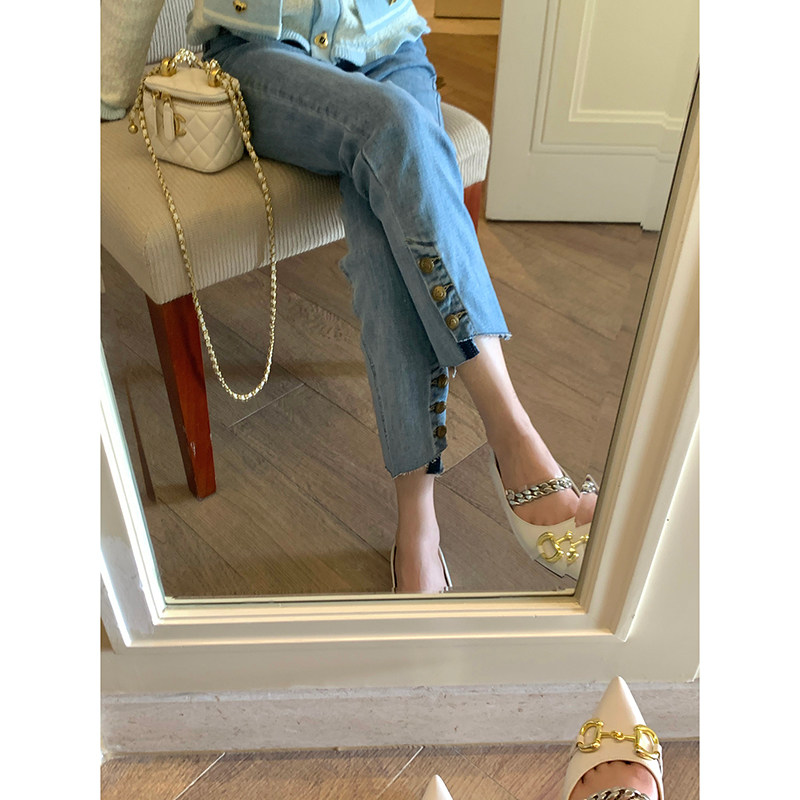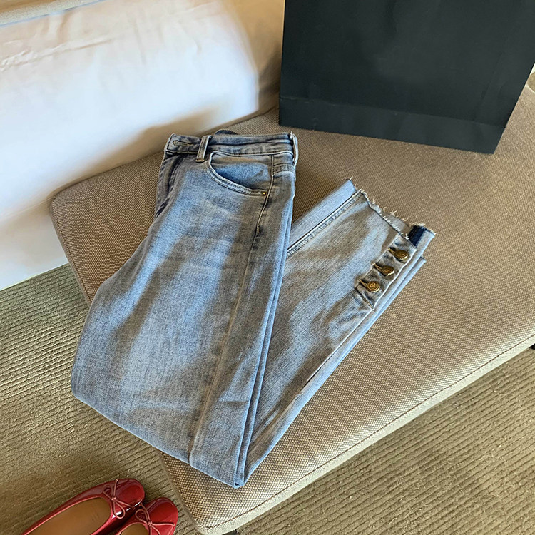 Синие летние тонкие штаны, прямые свободные джинсы, высокая талия