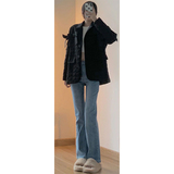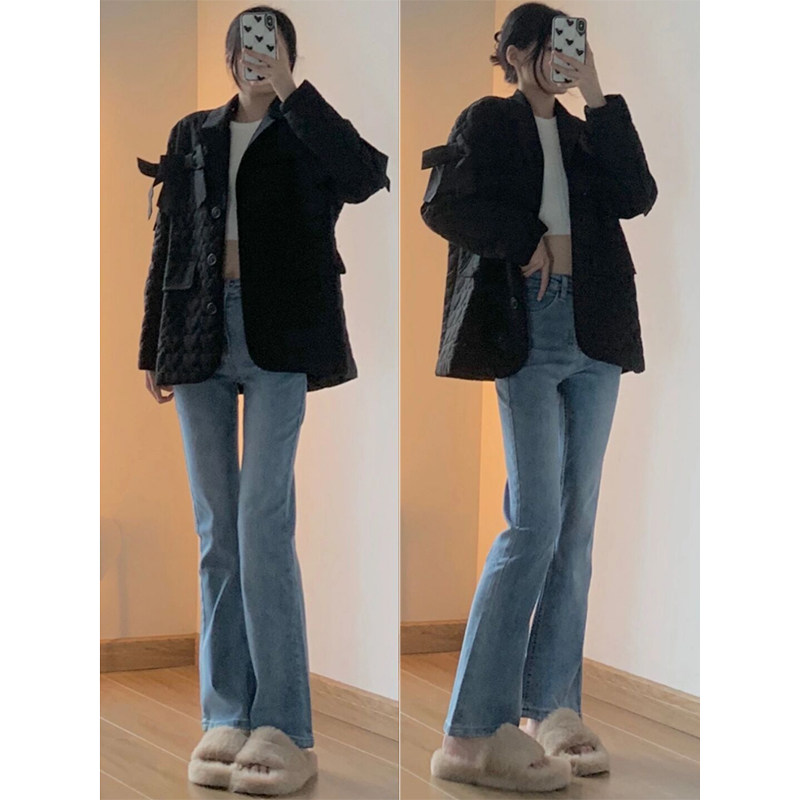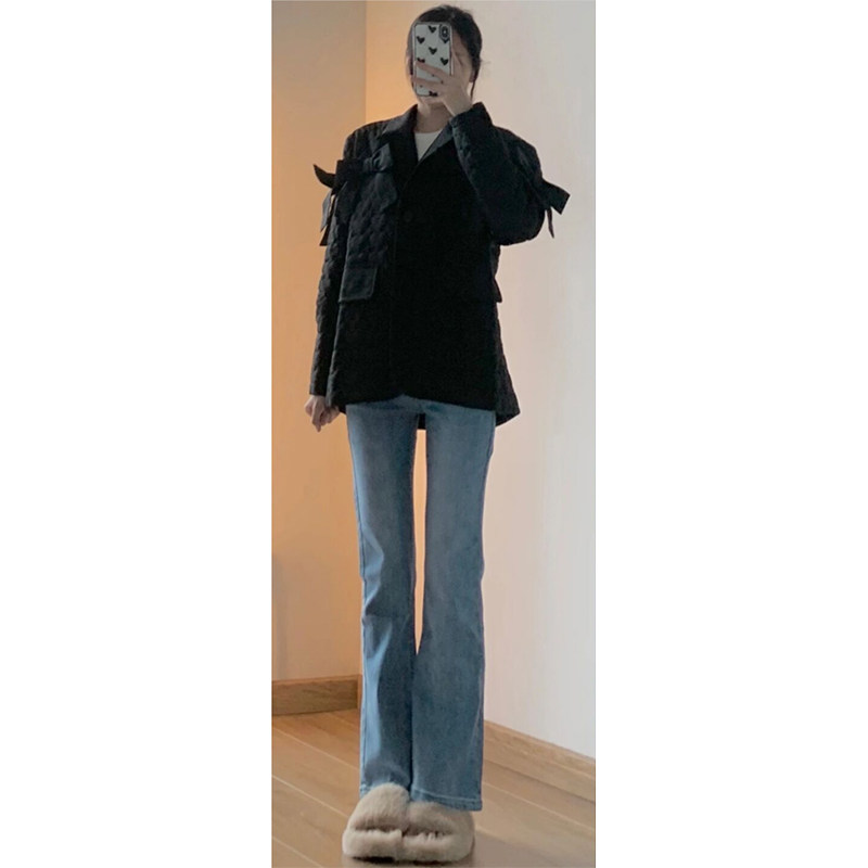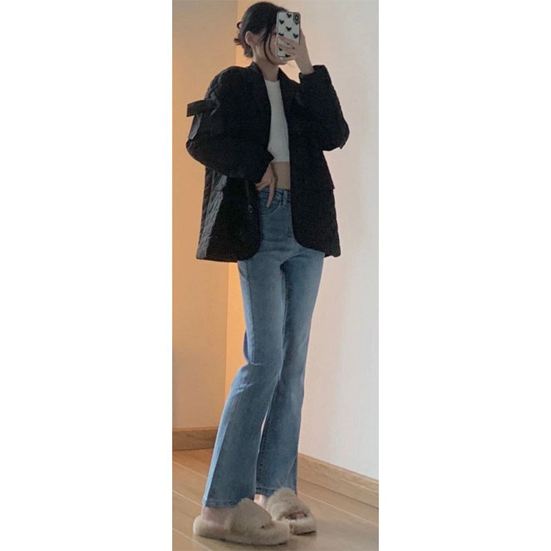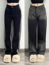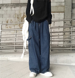 Синие цветные осенние джинсы, вместительные и большые штаны, мегафон, высокая талия, новая коллекция, большой размер, подходит для полных девушек, свободный прямой крой
