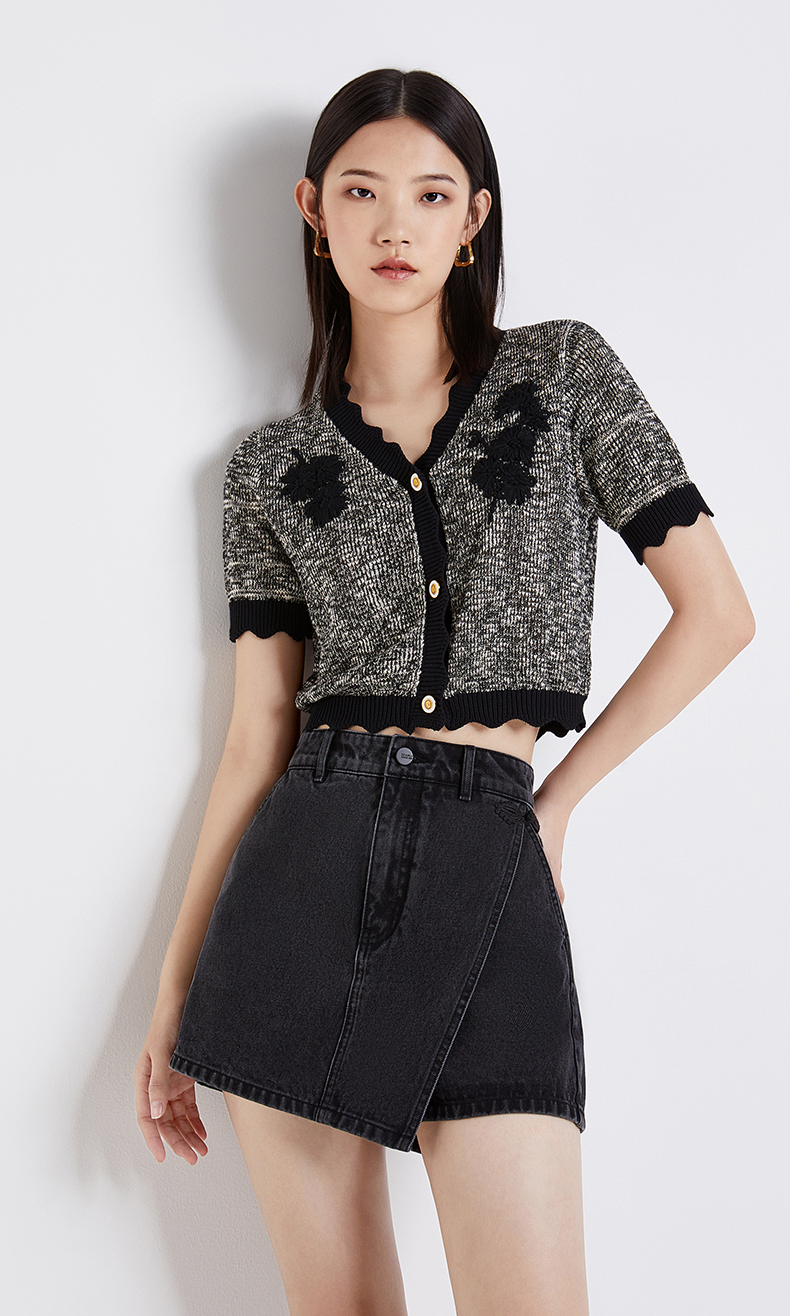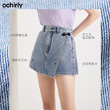 [Скидки в год] OU Shili Джинсовые шорты Новые летние плиты Перегарные юбки нерегулярно изложены национальный ветер