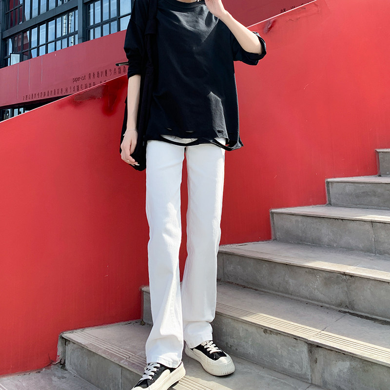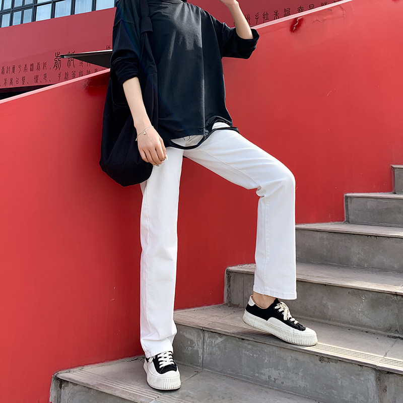 Белые летние японские джинсовые штаны, свободный прямой крой, высокая талия, по фигуре, подходит для подростков