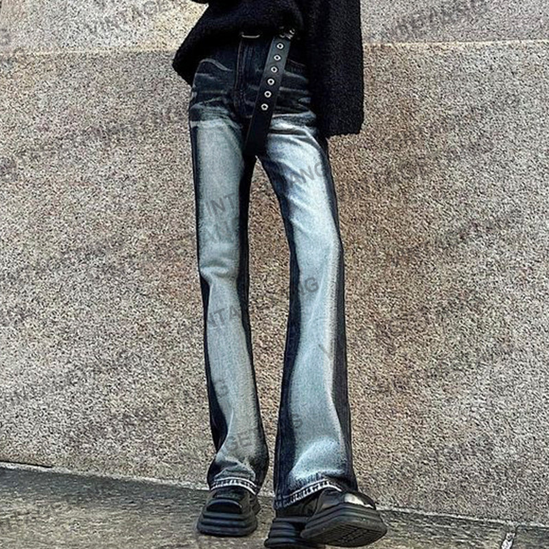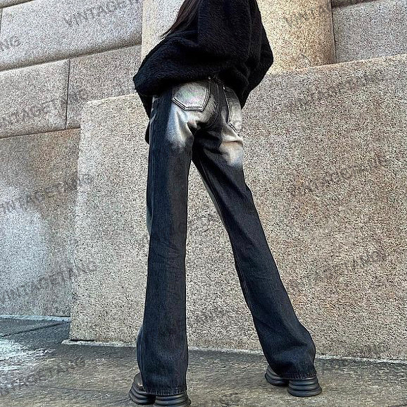 Vintagetang American Retro Hot Girl Wash Wash High -Haisted Street Micro -la Scian тонкие джинсы брюки