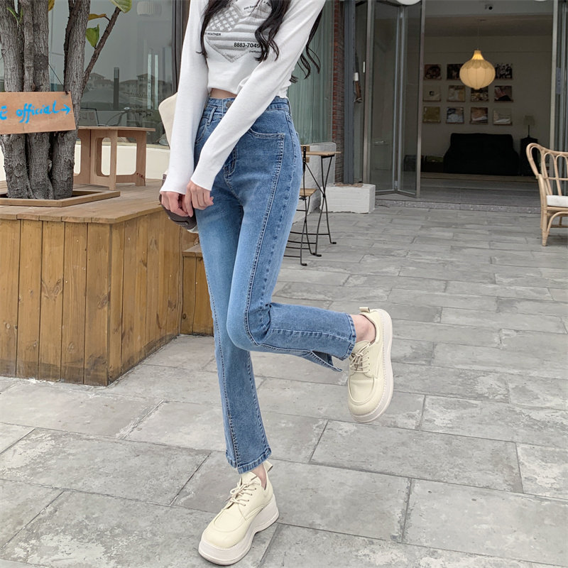 Осенние джинсовые джинсы, штаны, коллекция 2021, свободный прямой крой, большой размер