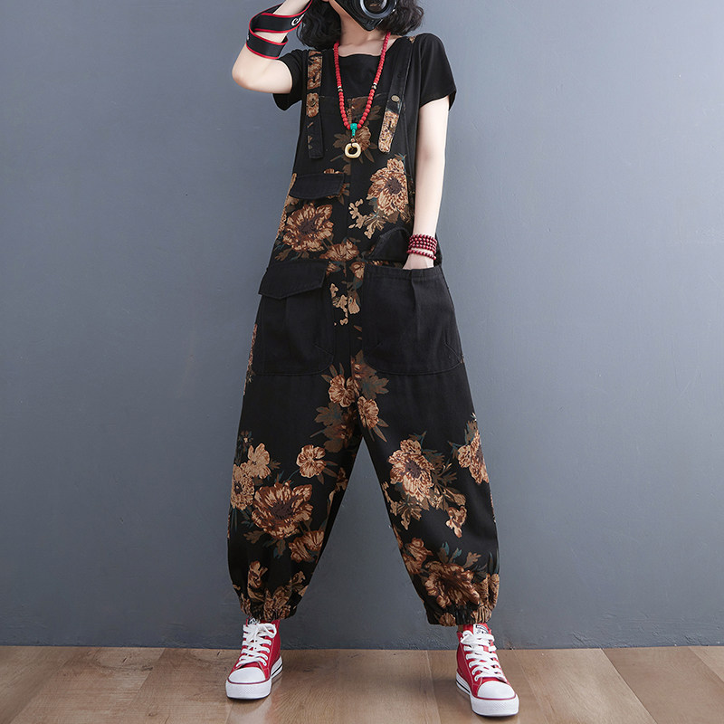 Демисезонный ретро джинсовый комбинезон, штаны, фонарь, большой размер, подходит для полных девушек, свободный крой