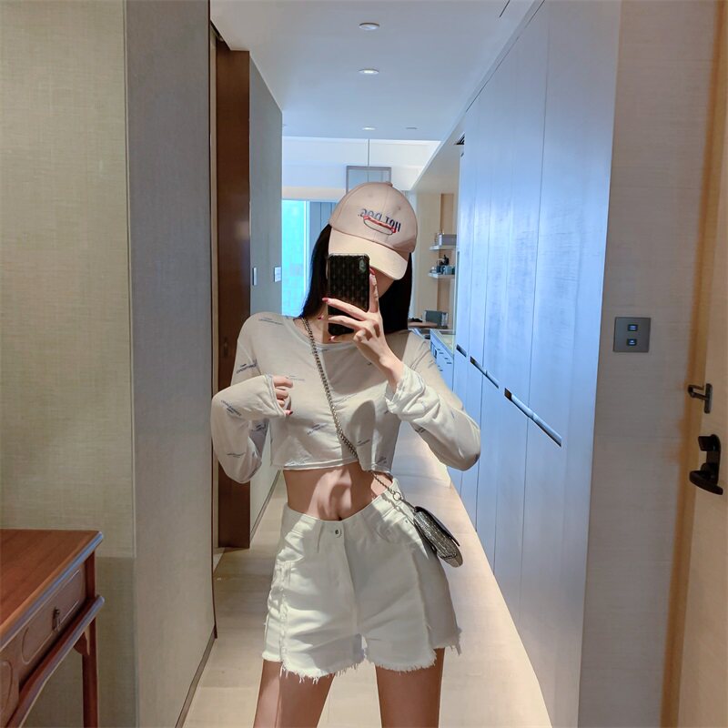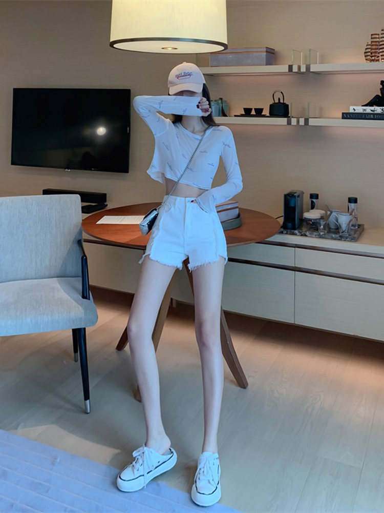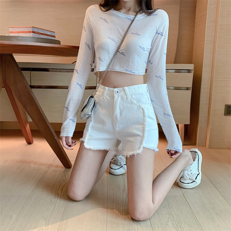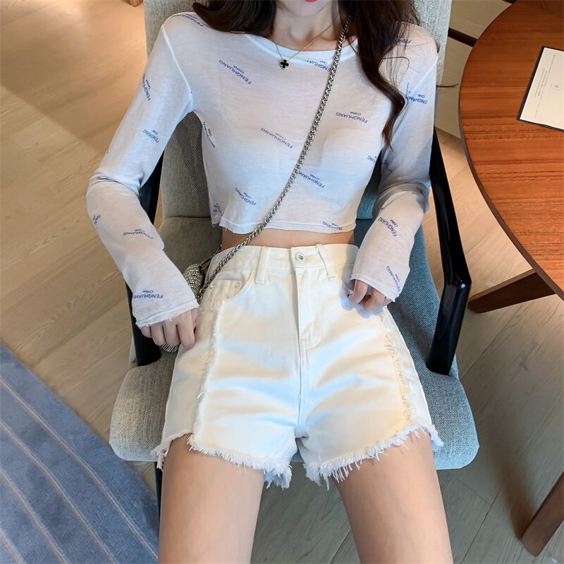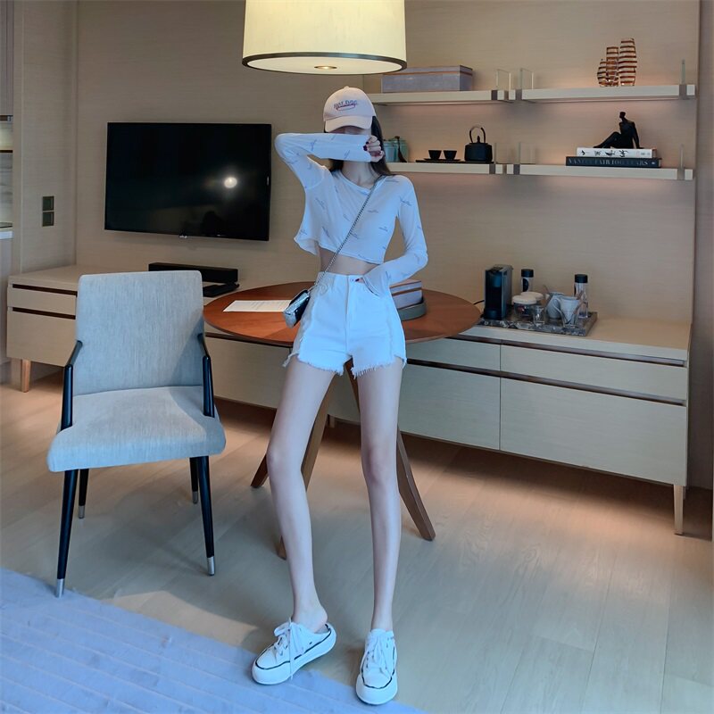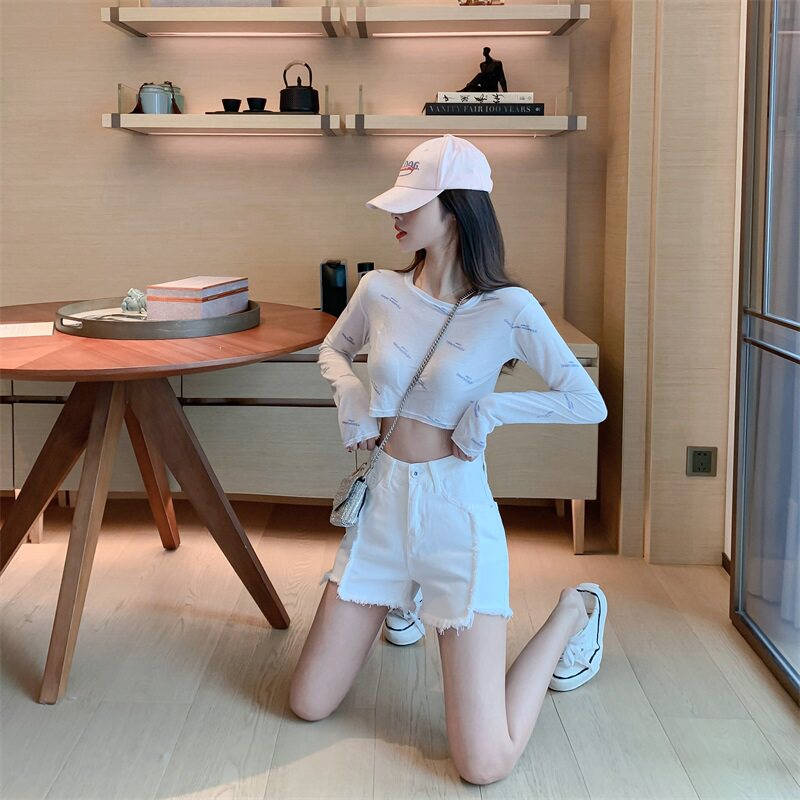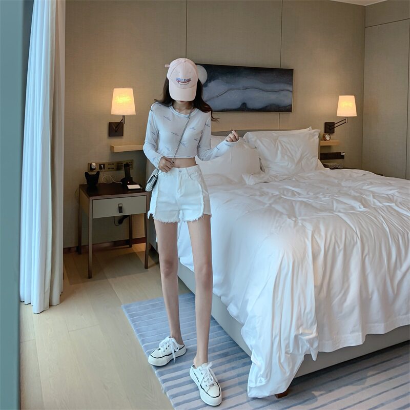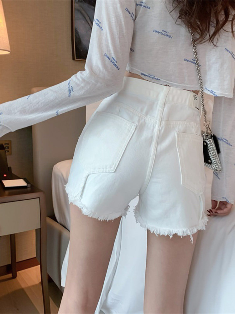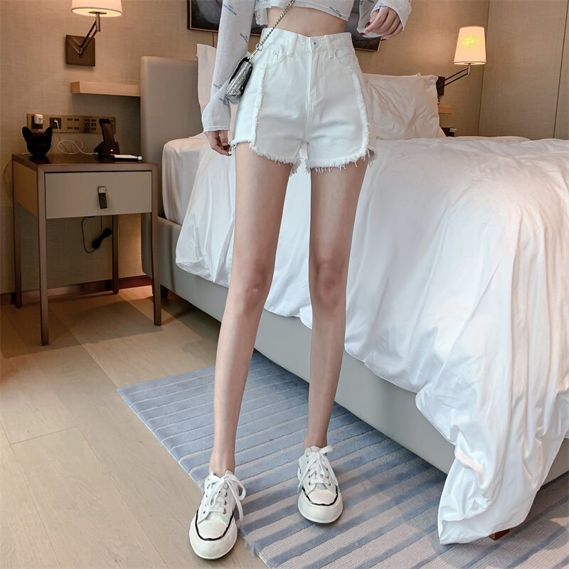 Весенние джинсы, штаны, белые шорты, высокая талия, по фигуре, свободный крой