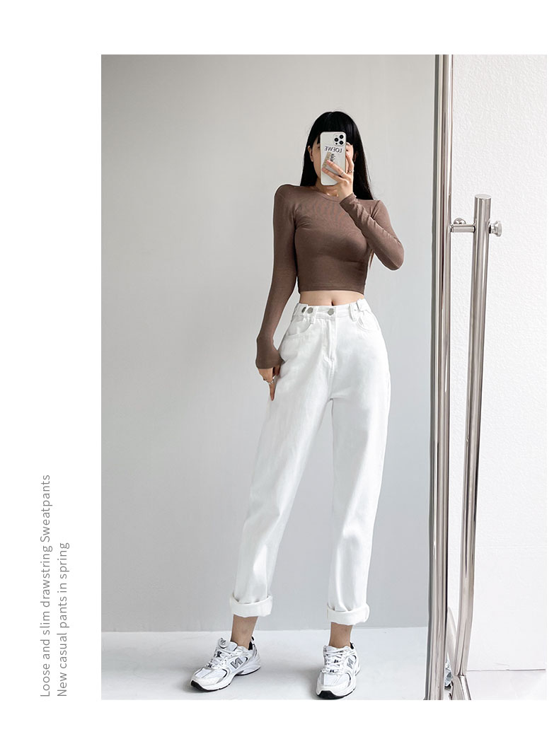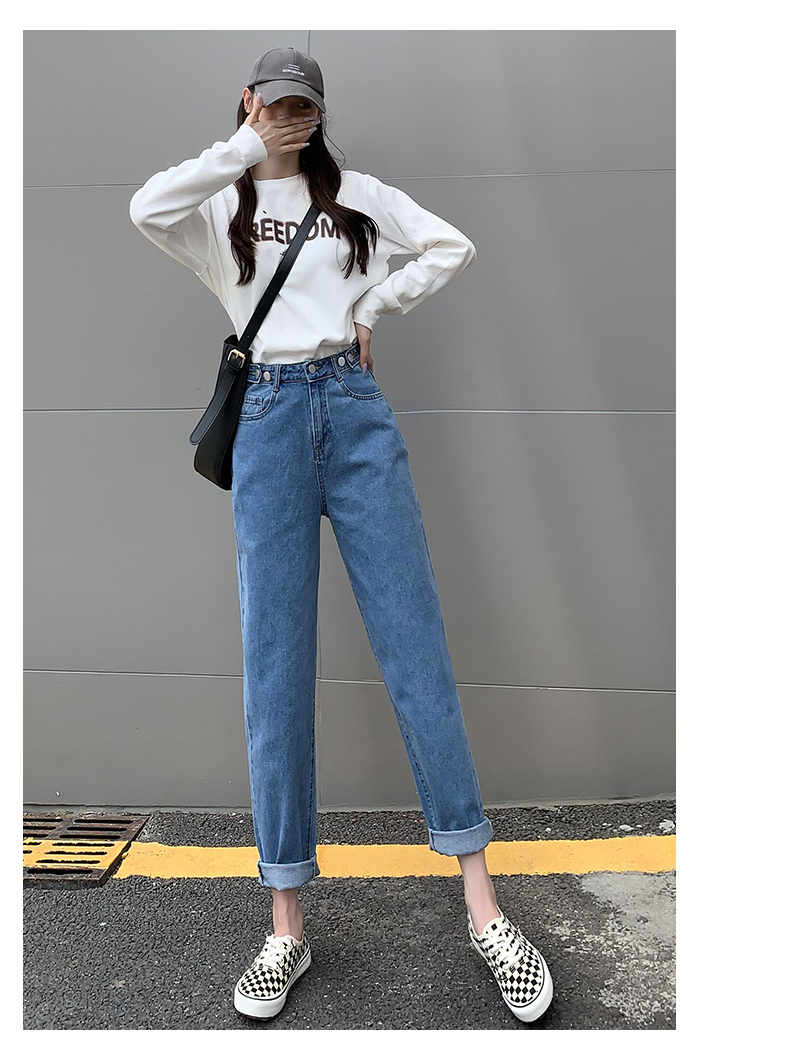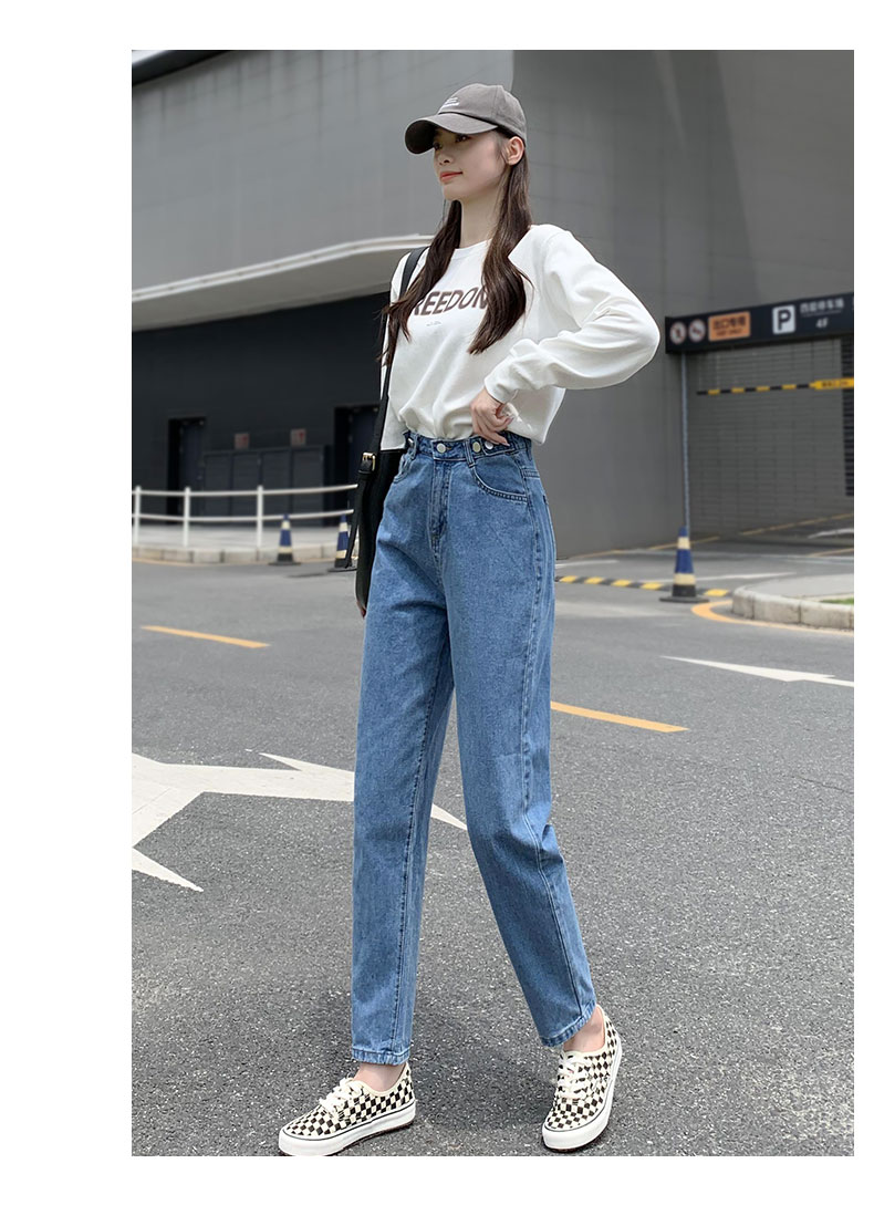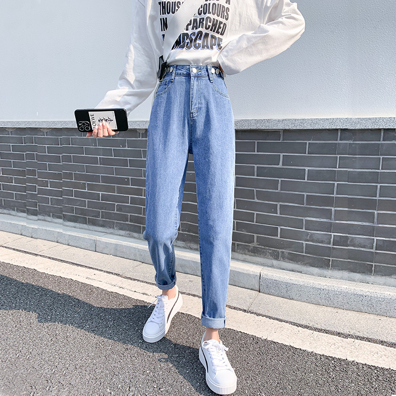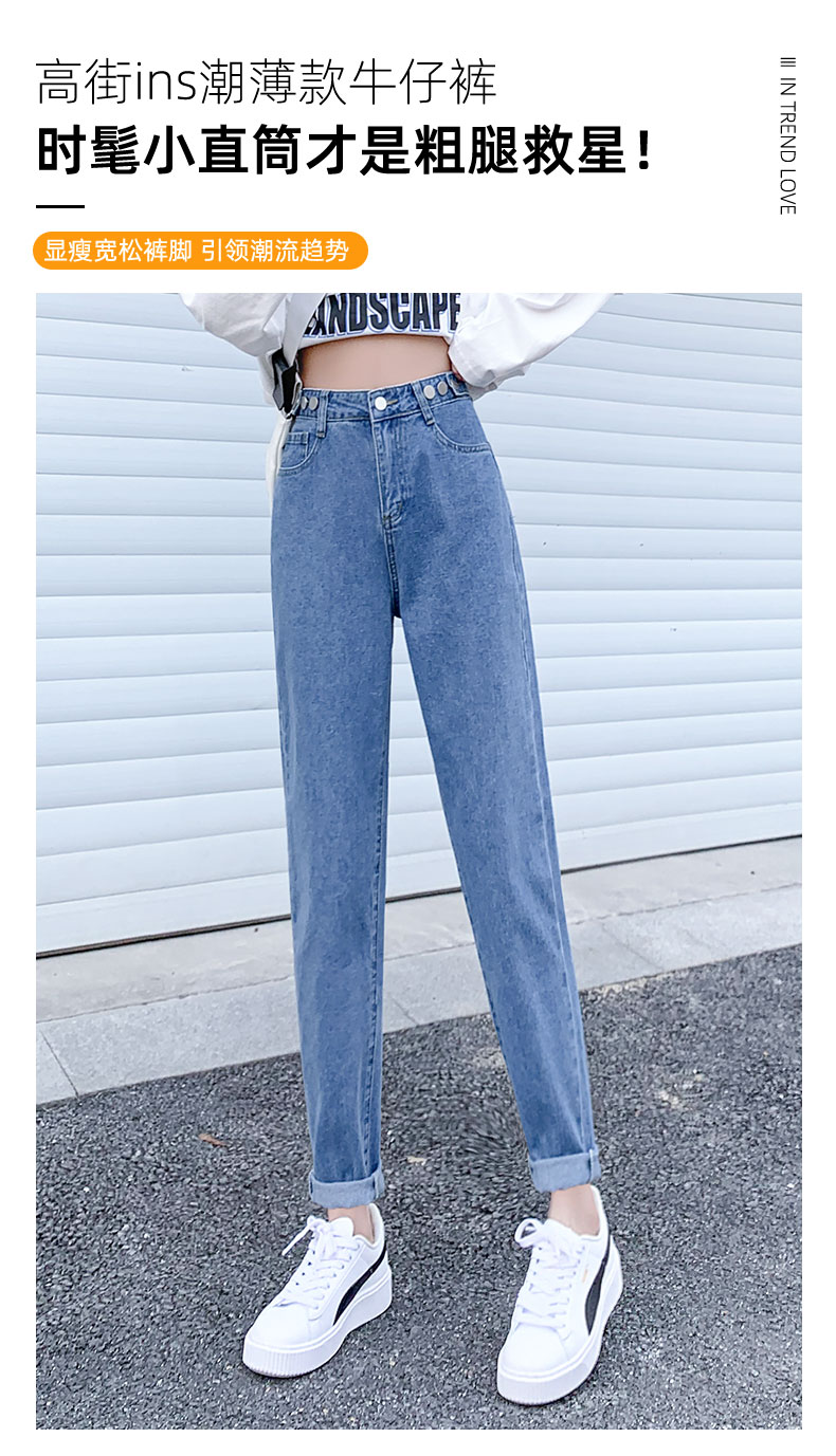 Джинсы, летние тонкие приталенные штаны, высокая талия, свободный прямой крой, подходит для подростков