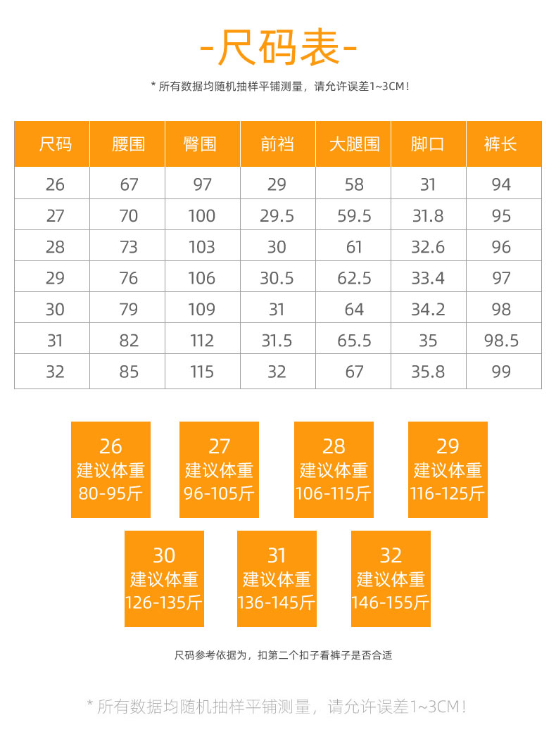 | Размер: | 26 Подходит (80-95 кот), 27 Подходит (96-105 Catties), 28 Подходит (106-115 Catties), 29 Подходит (116-125 Catties), 30 подходящих (126-135 кот), 31 Подходит (136-145 кот), 32 Подходит (146-155 Catties) |
