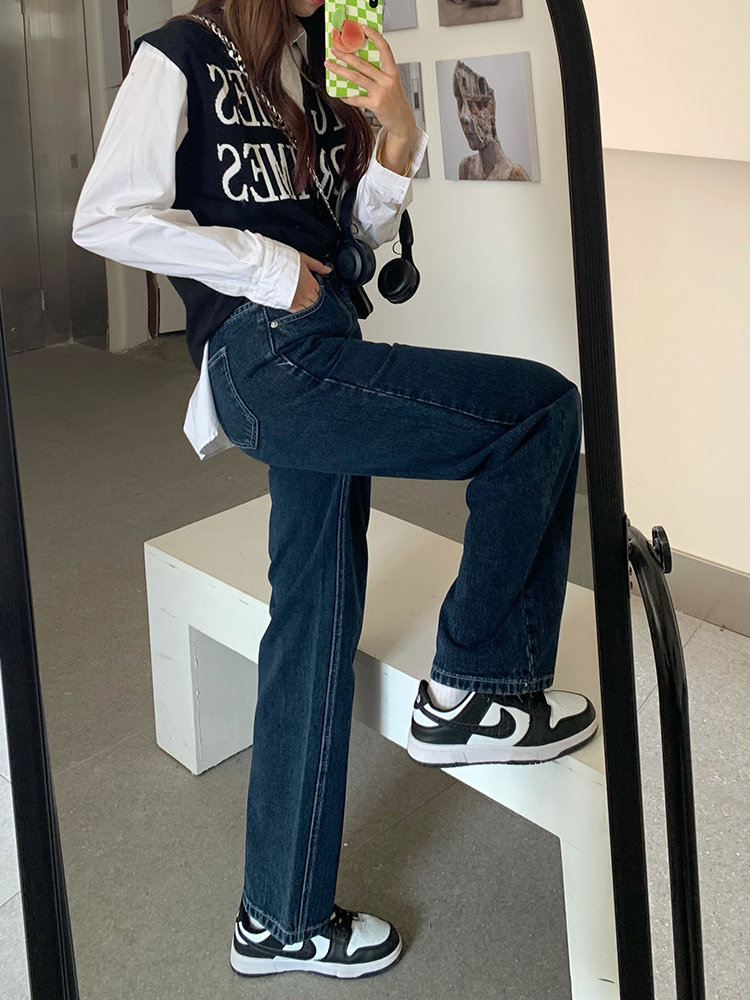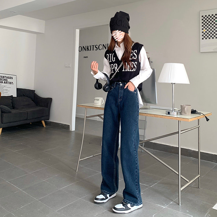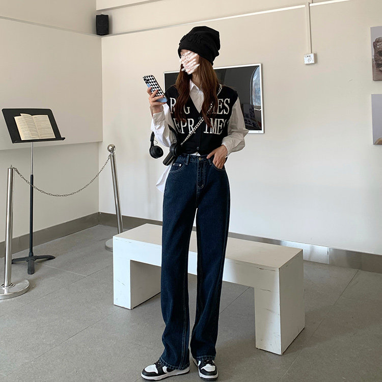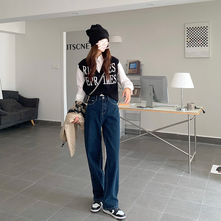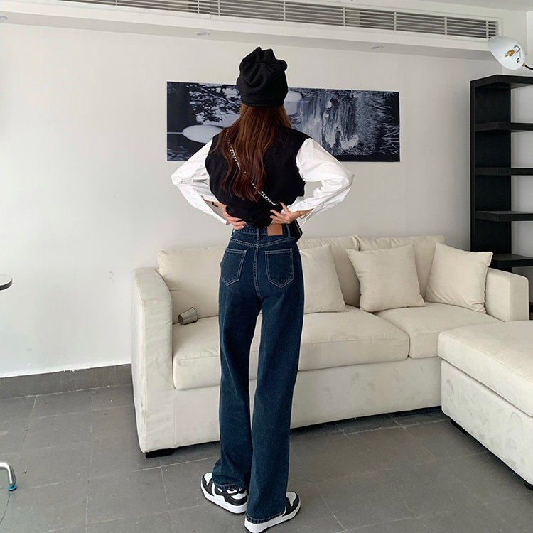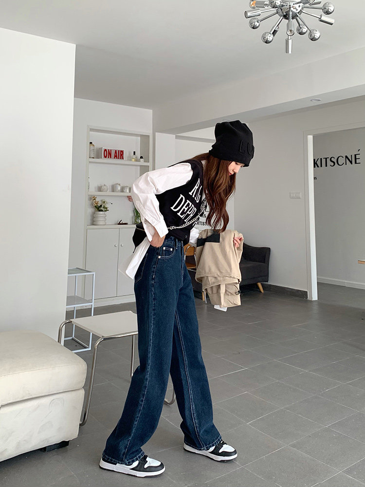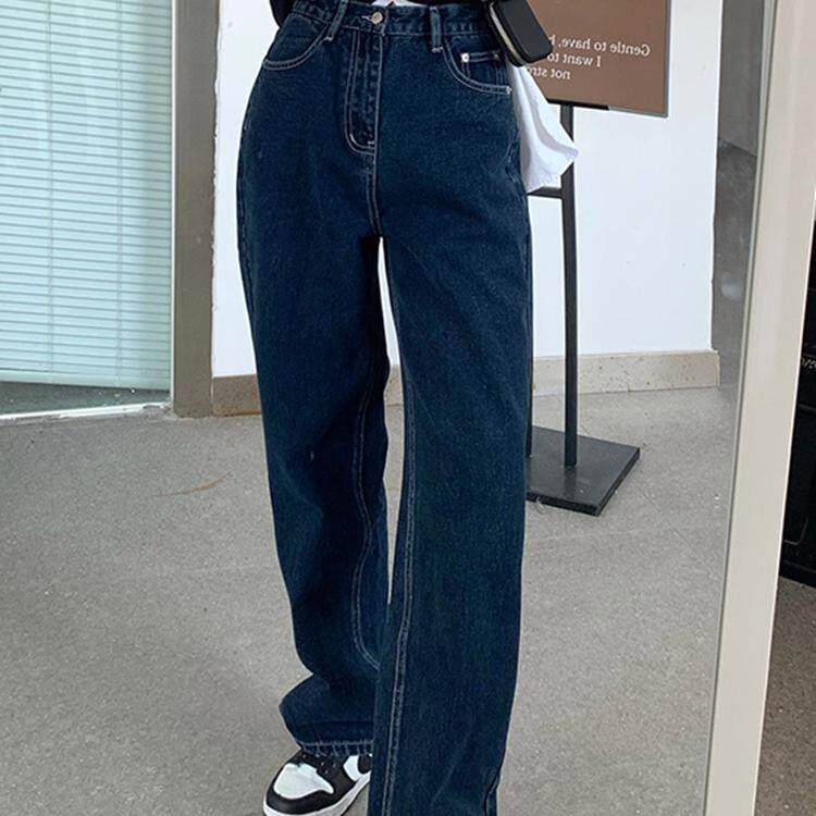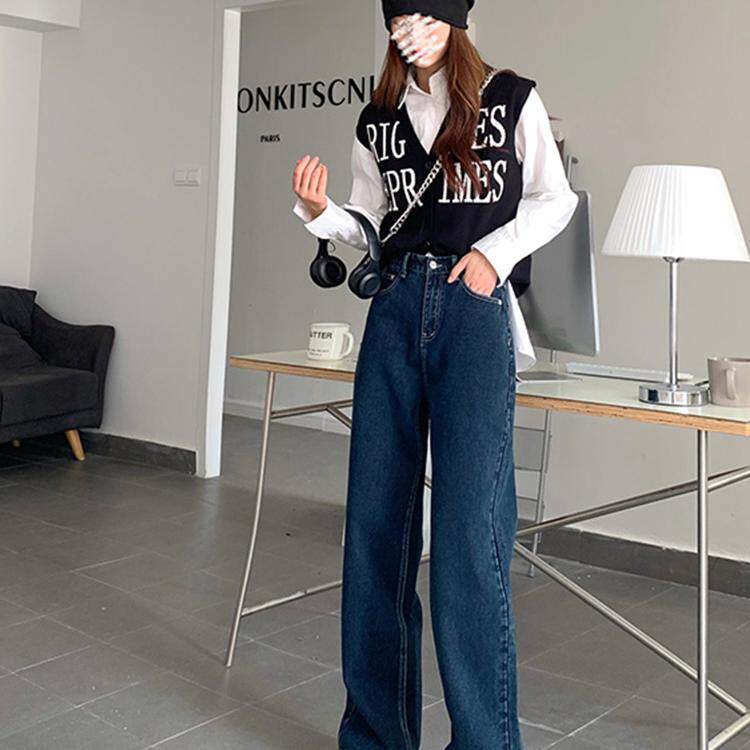 Синие цветные джинсы, весенние ретро штаны, высокая талия, свободный прямой крой