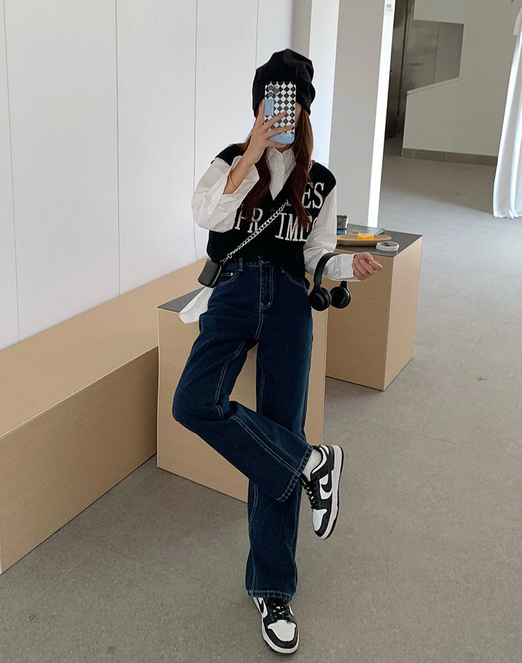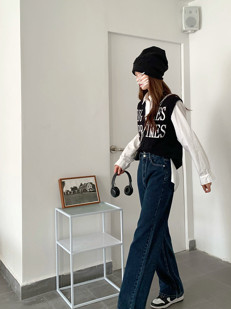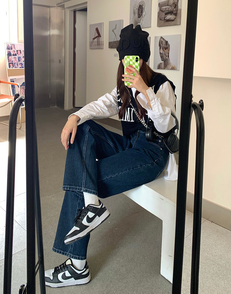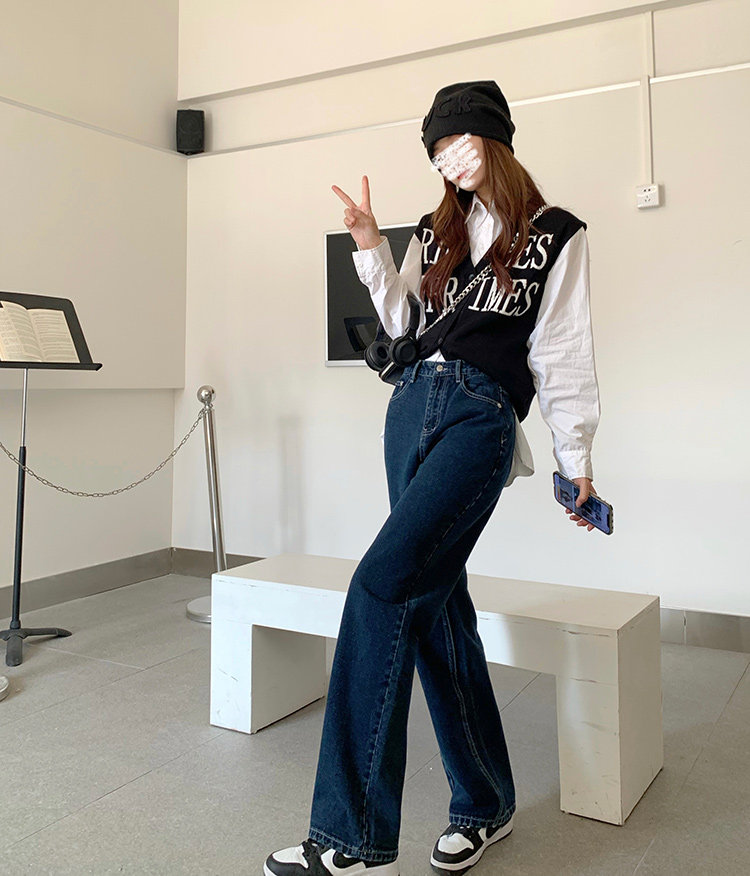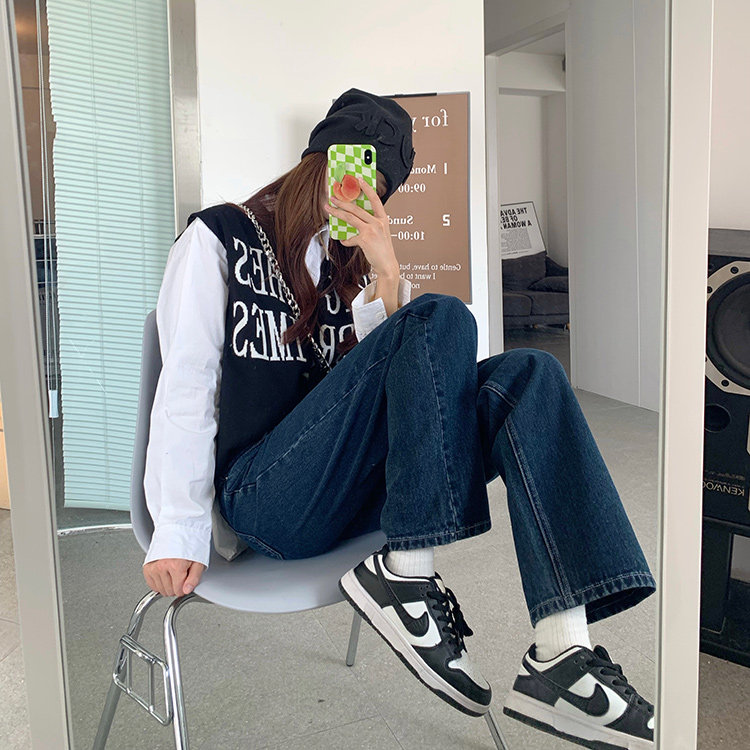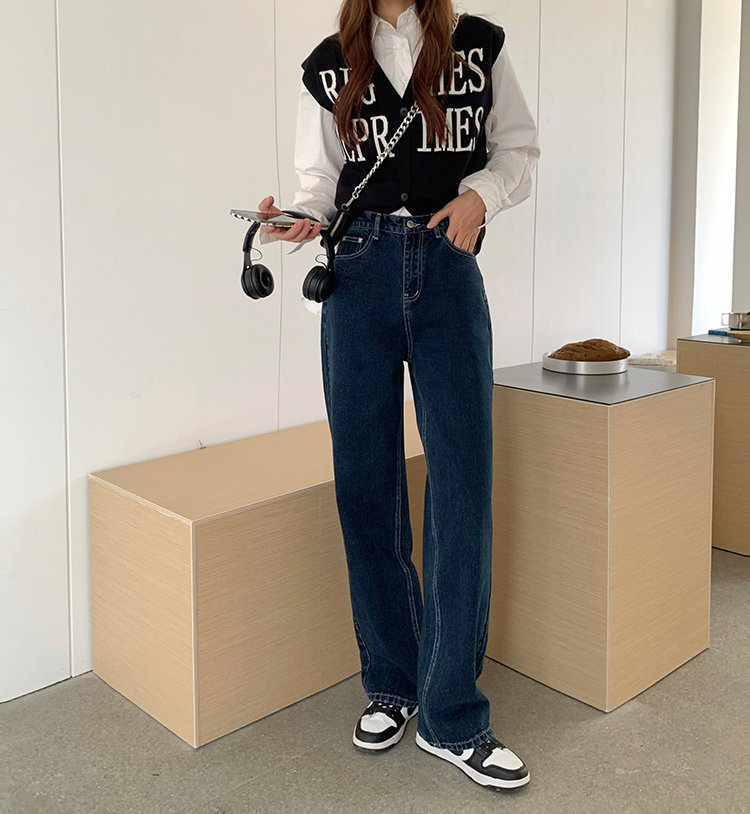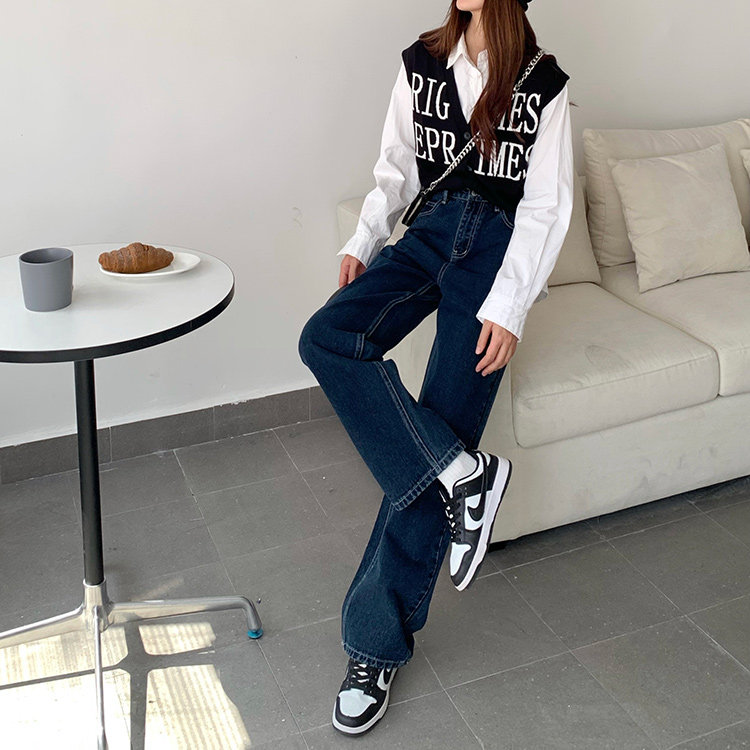 Синие цветные джинсы, весенние ретро штаны, высокая талия, свободный прямой крой