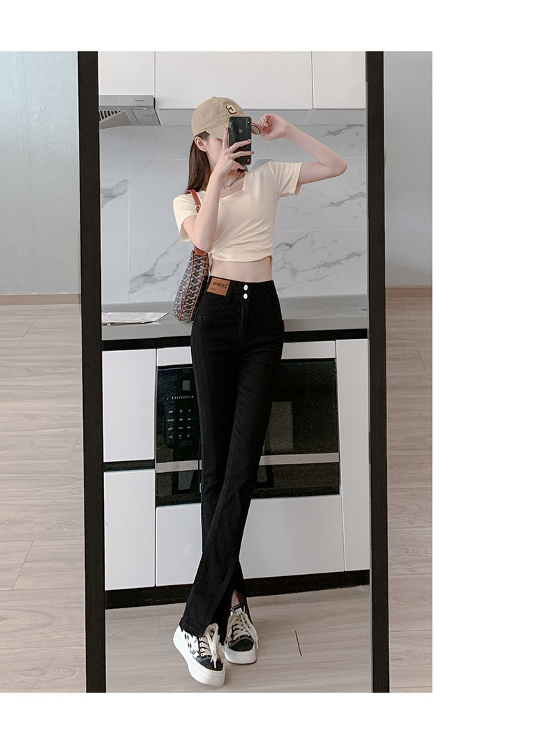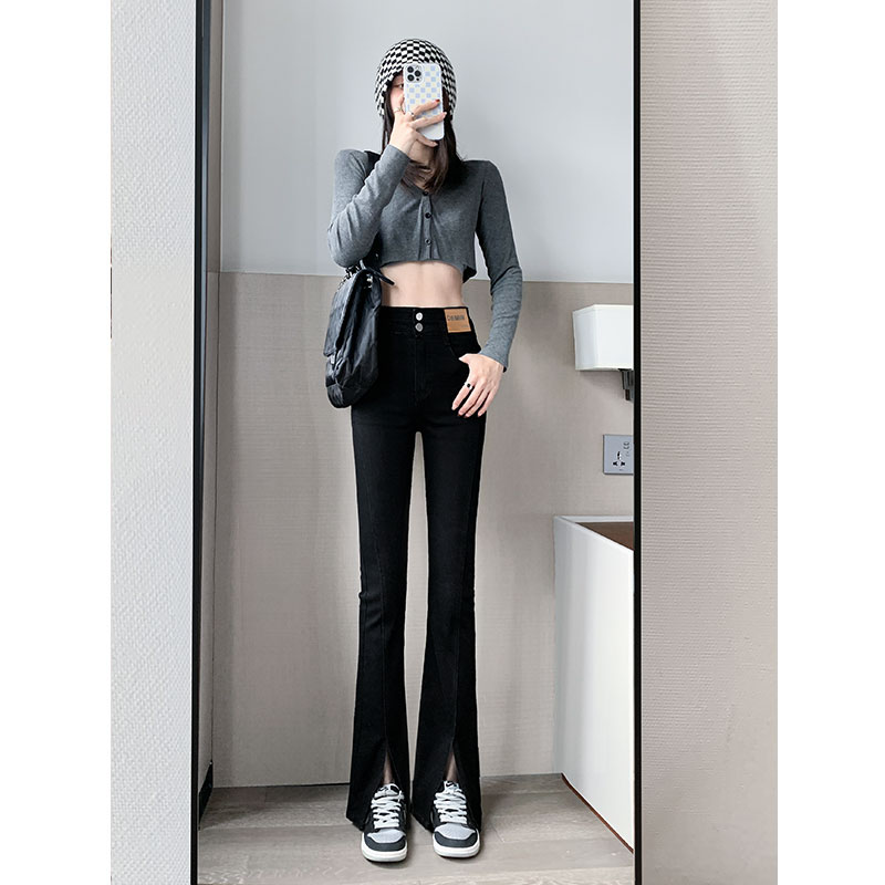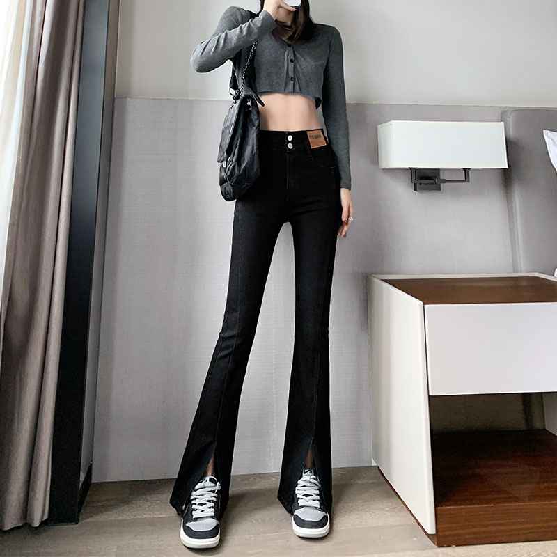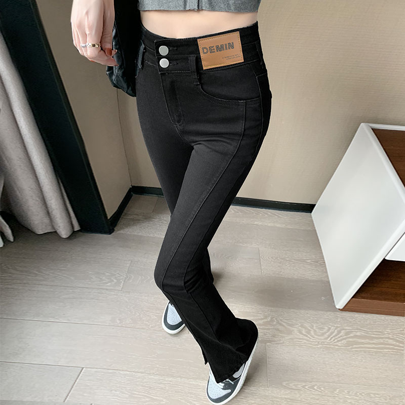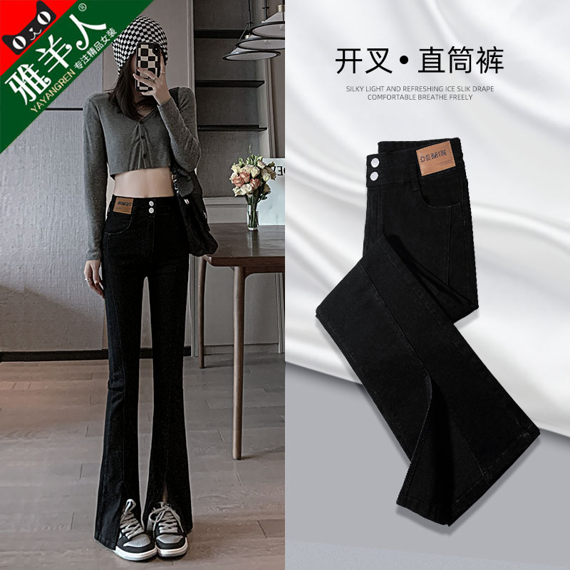 Черные джинсовые джинсы, летние тонкие штаны, штаны-клёш, высокая талия, свободный прямой крой, большой размер, по фигуре