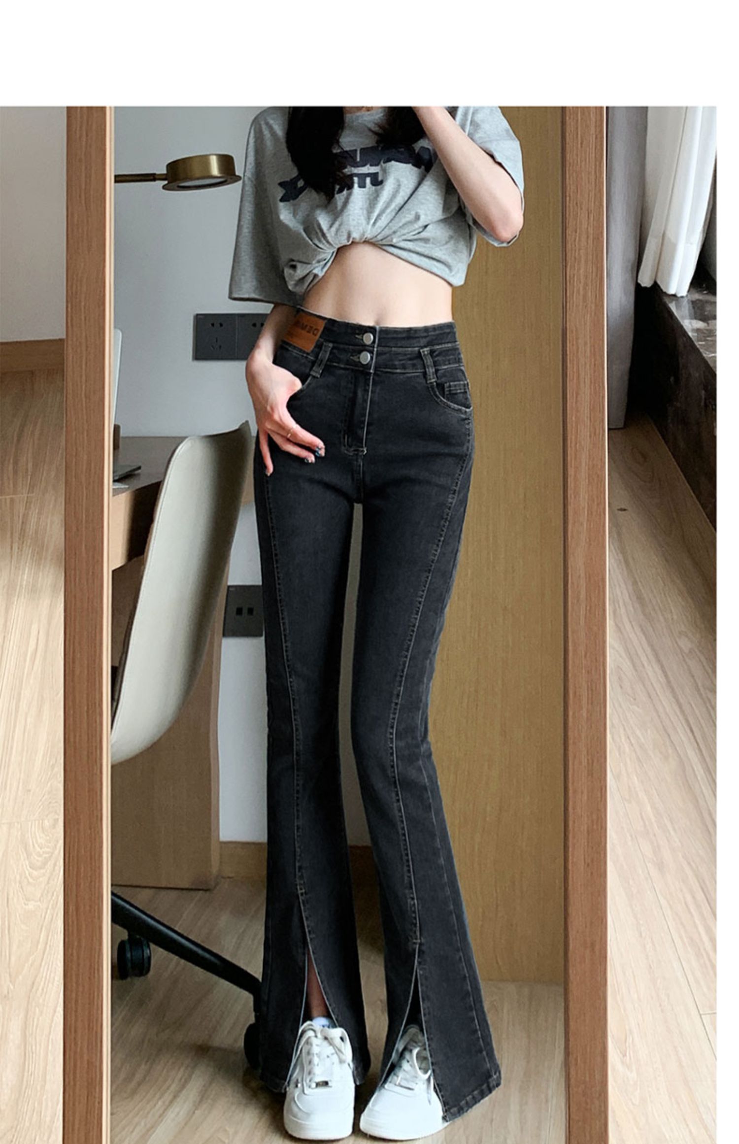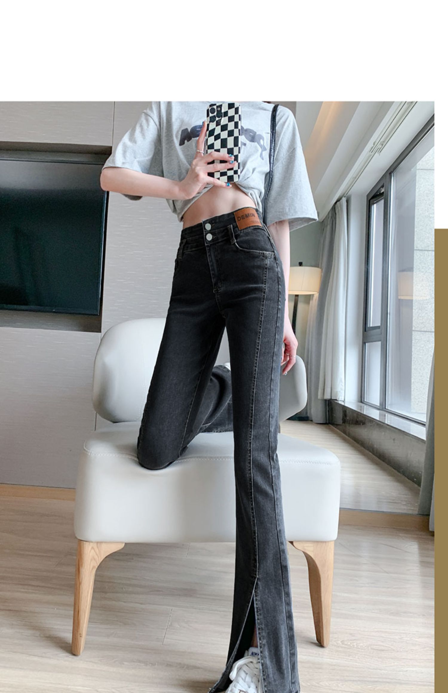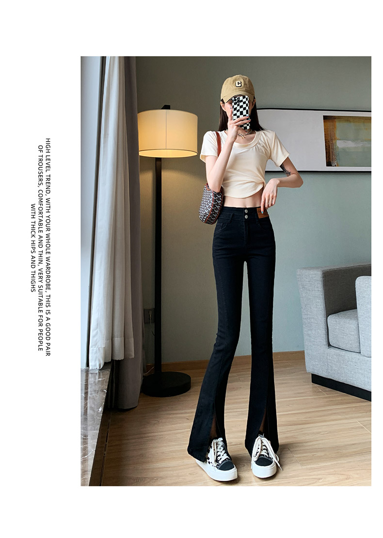 Черные джинсовые джинсы, летние тонкие штаны, штаны-клёш, высокая талия, свободный прямой крой, большой размер, по фигуре