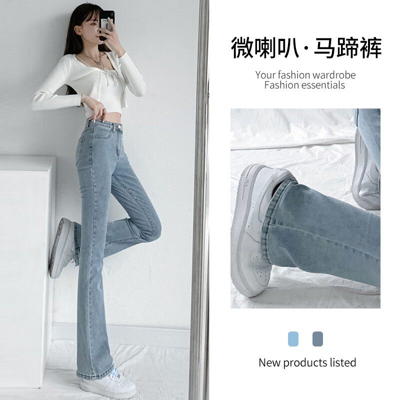 Осенние джинсы, штаны, длинные приталенные штаны-клёш, 2024 года, новая коллекция, высокая талия