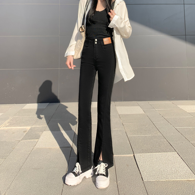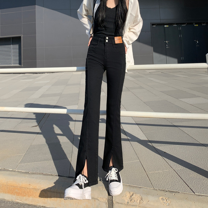 Черные штаны-клёш, высокие джинсы, приталенные летние штаны, новая коллекция, крой «рыбий хвост», подходит для подростков