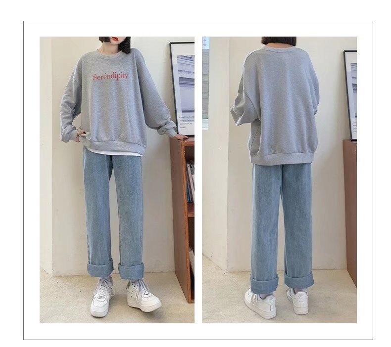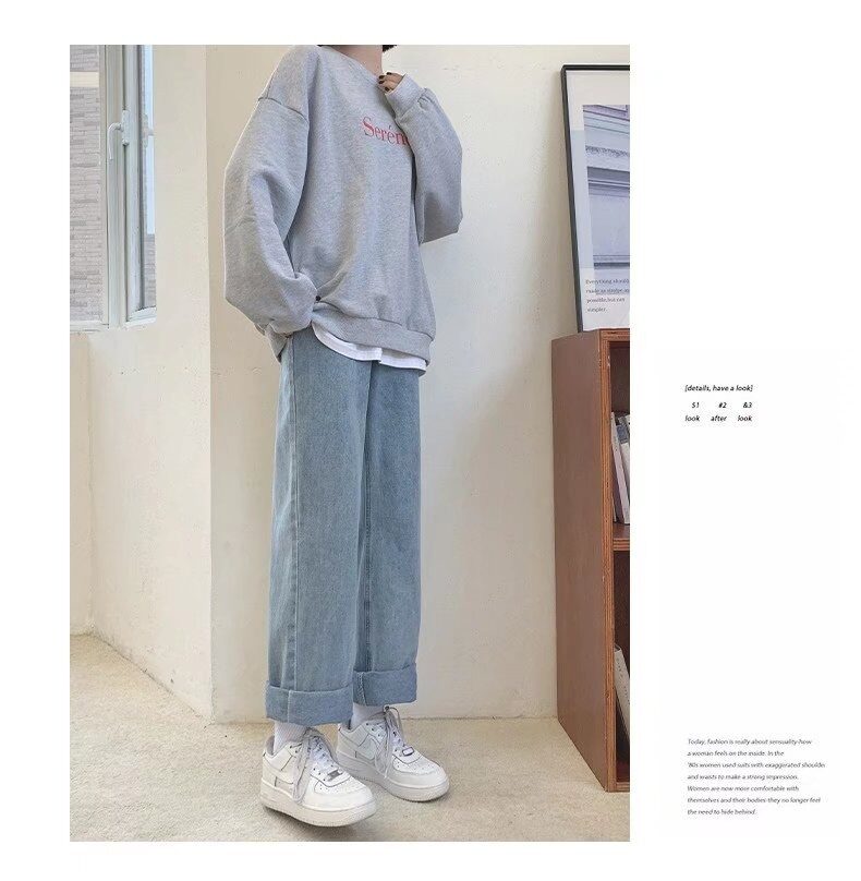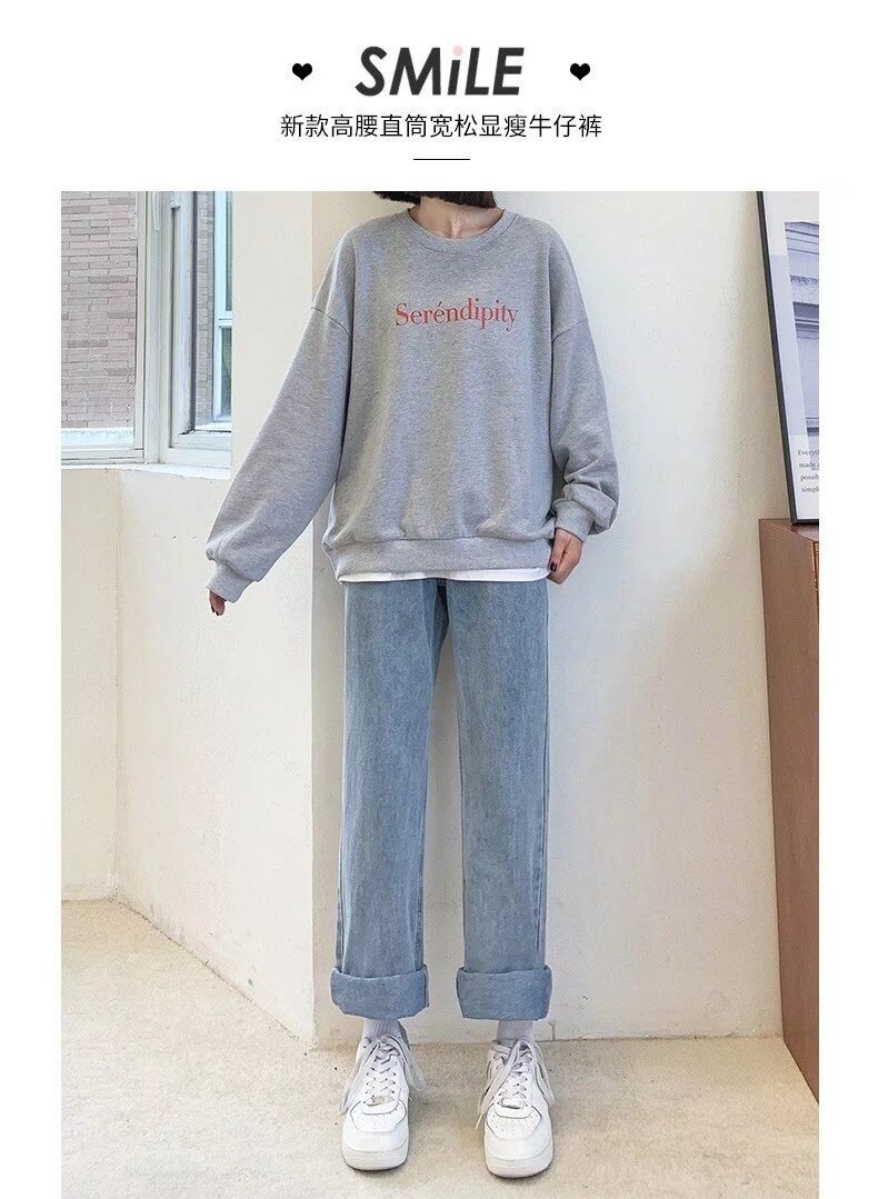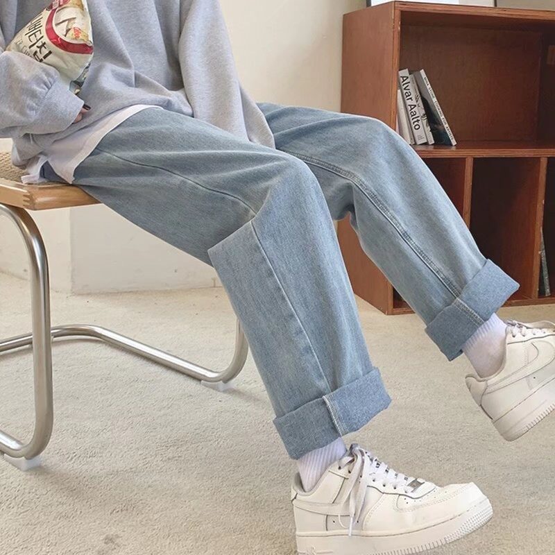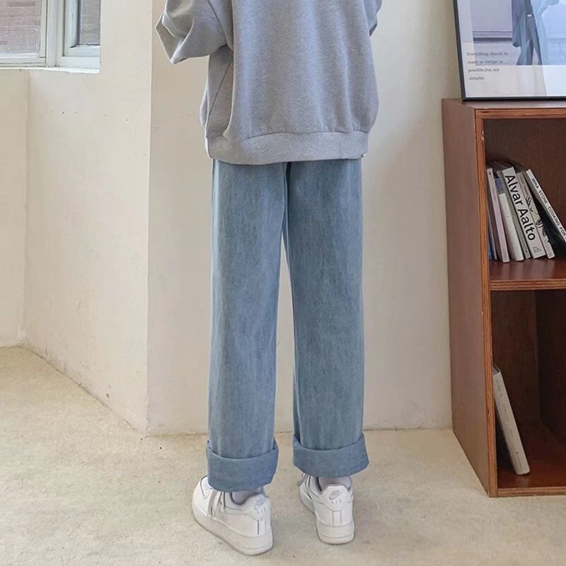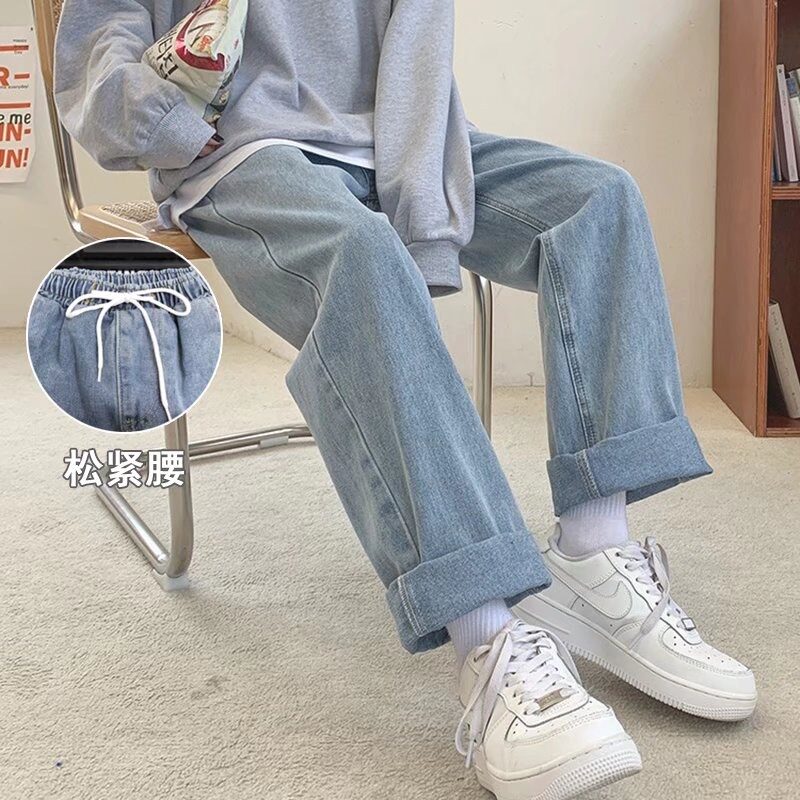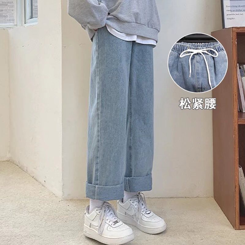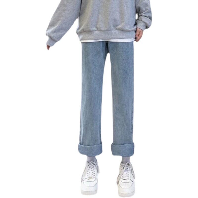 Осенние джинсы, штаны для школьников, свободный прямой крой, высокая талия, эластичная талия, для средней школы