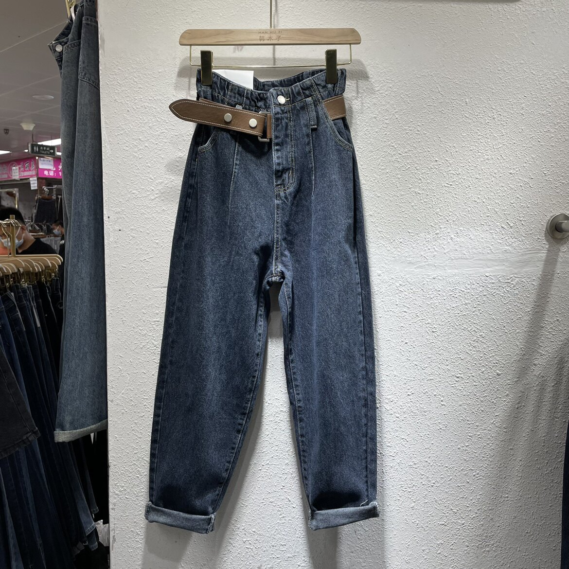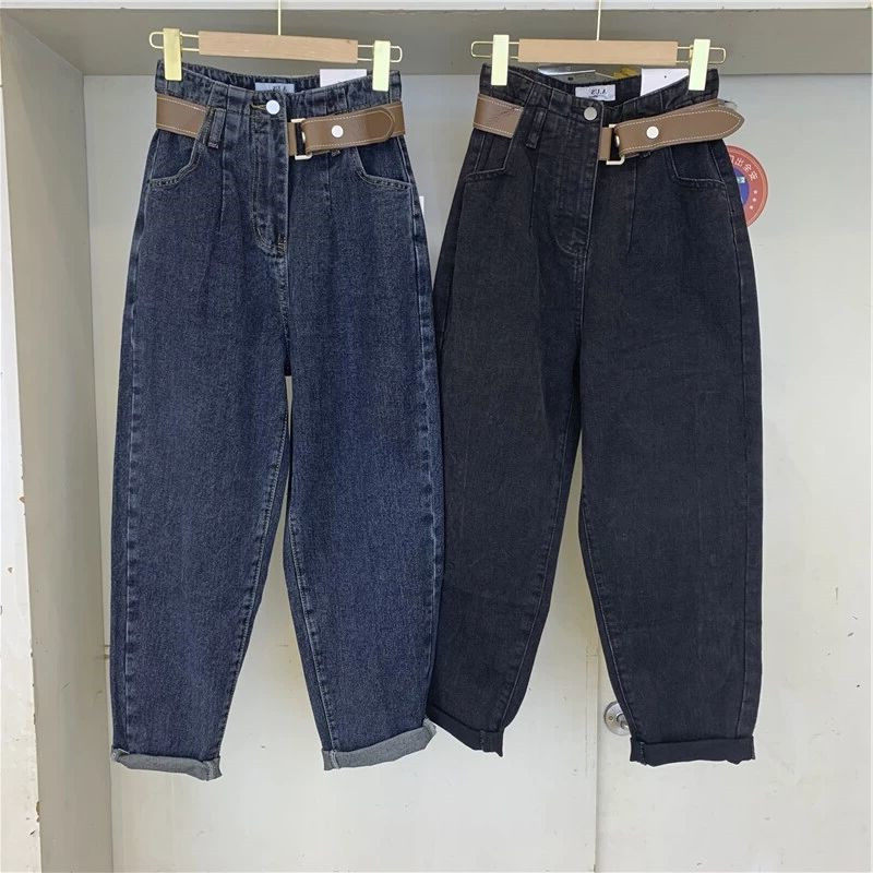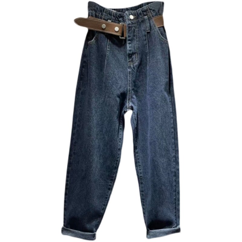 Осенние джинсы, штаны, приталенный универсальный ремень, 2023, оверсайз, высокая талия