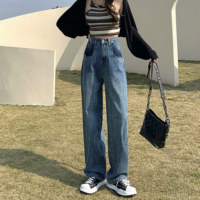 Джинсы, весенние приталенные штаны, высокая талия, свободный прямой крой