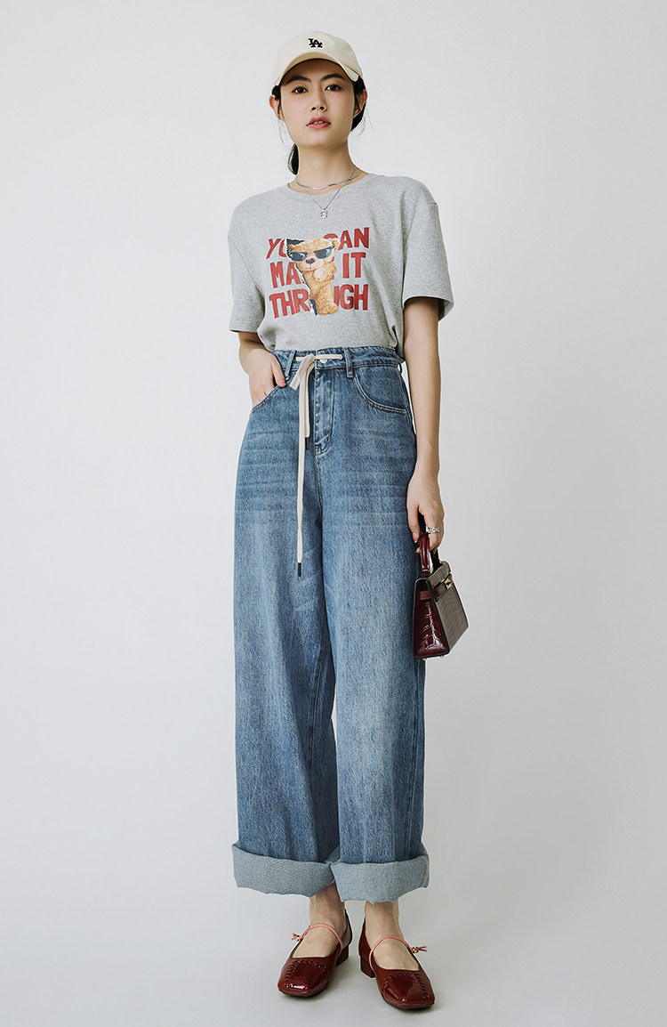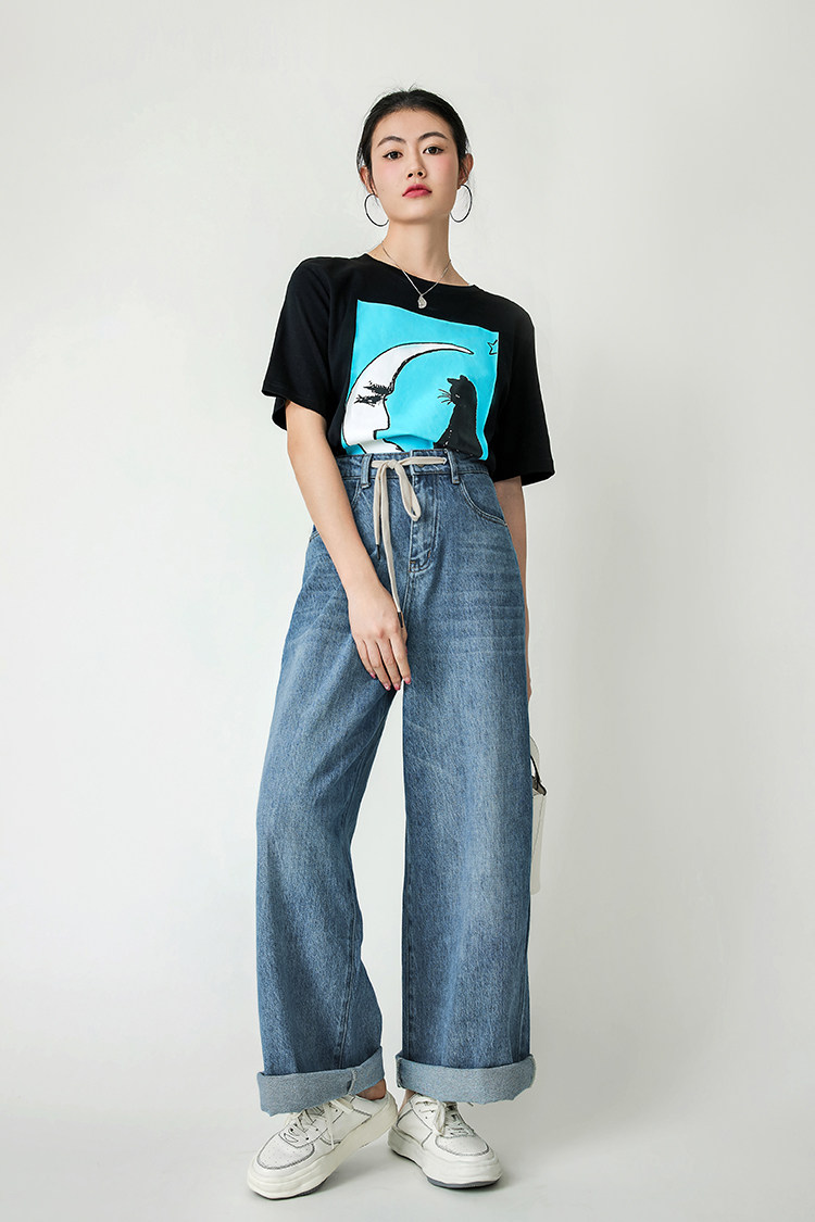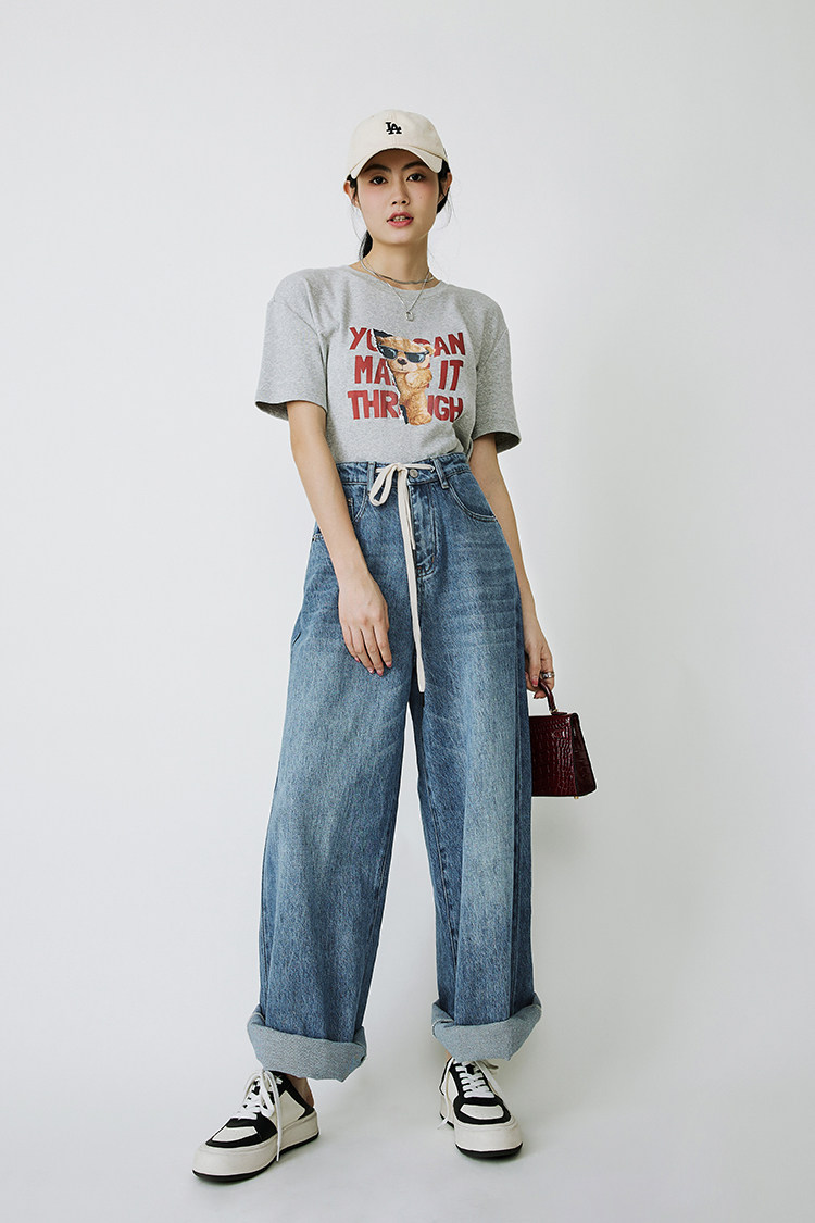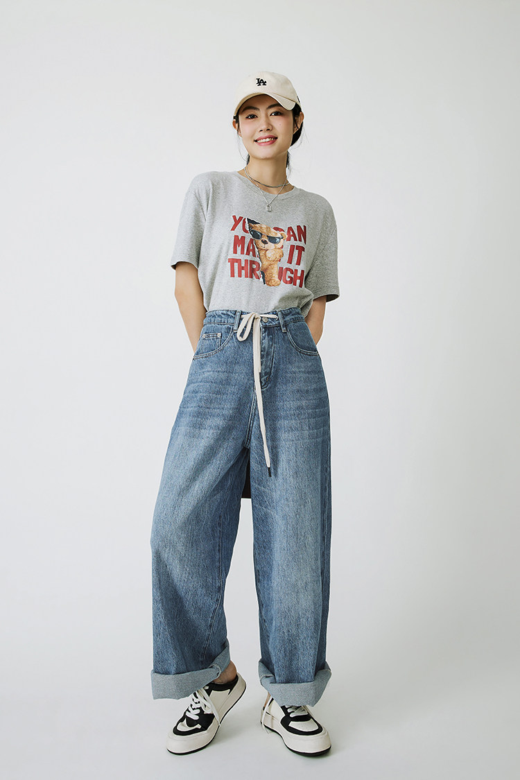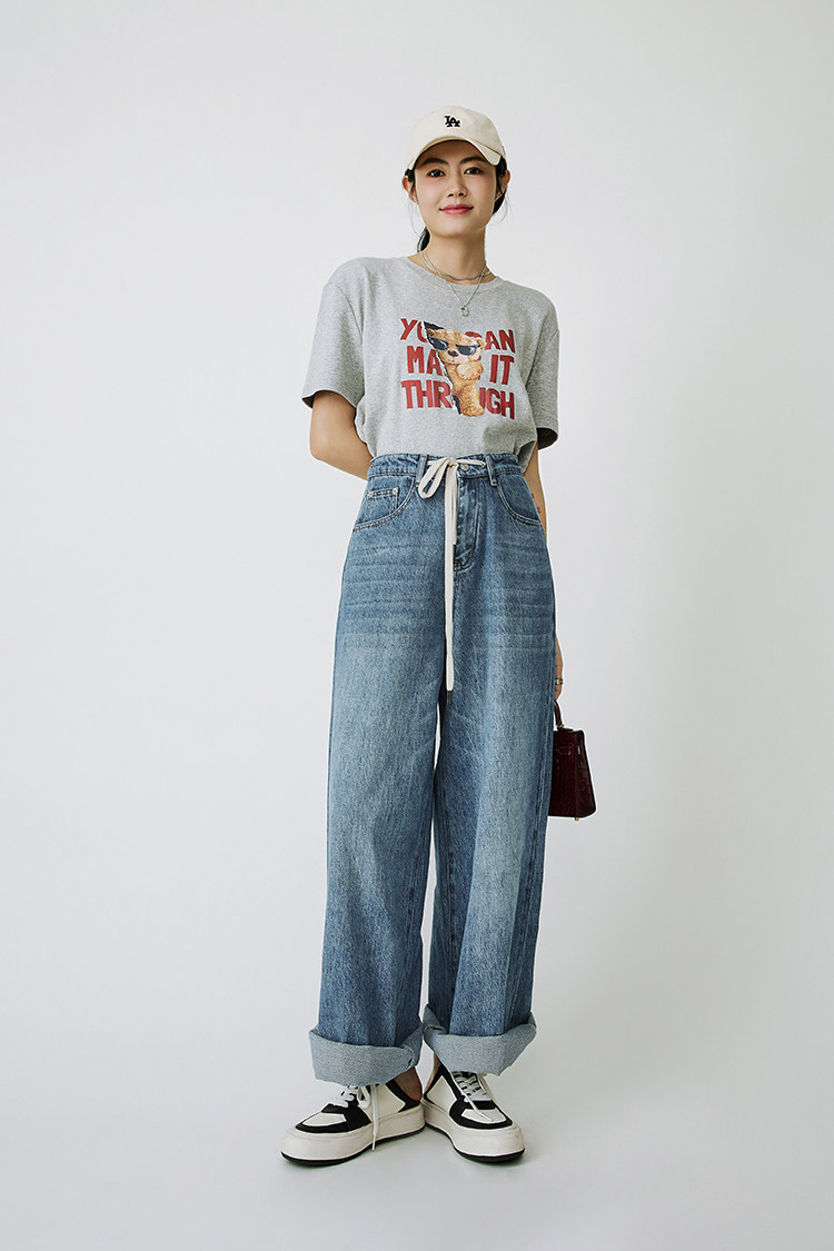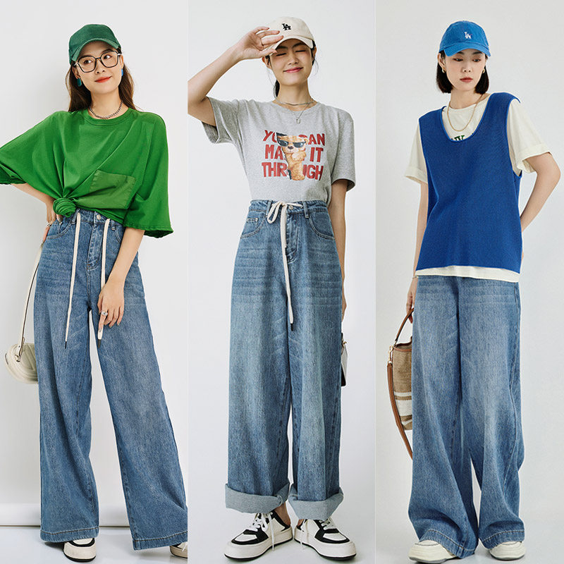 Meiyang Meiyang [Spot] Джинсы Окинава Ленивые свободные удары различные повседневные брюки