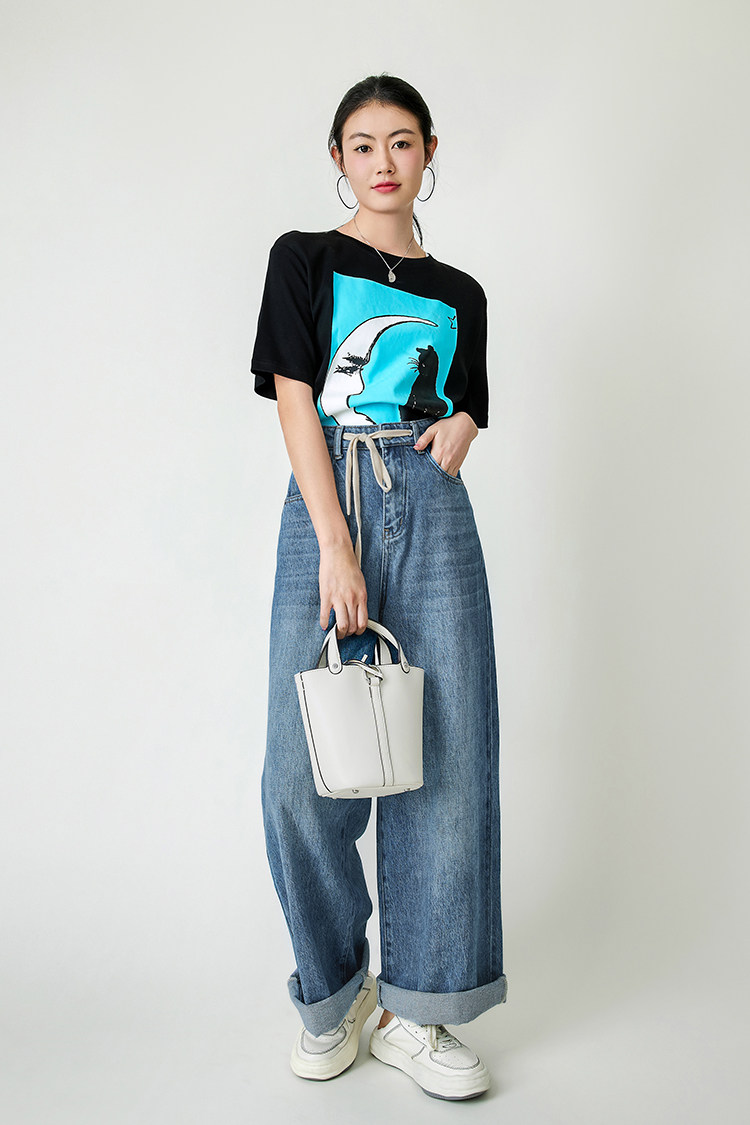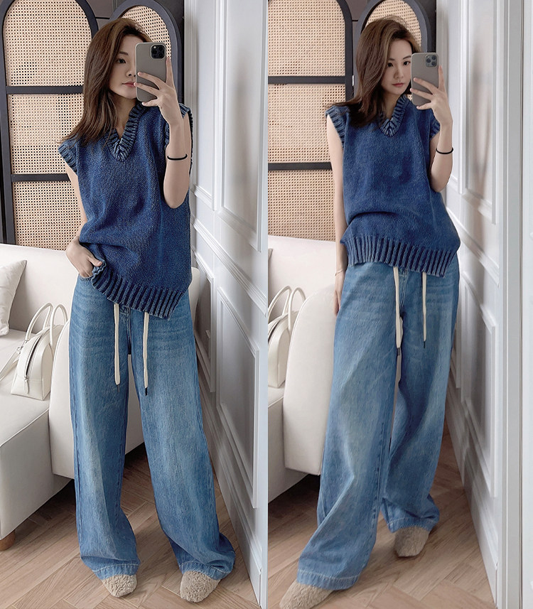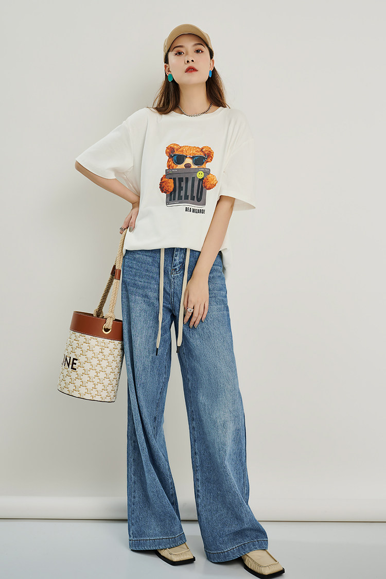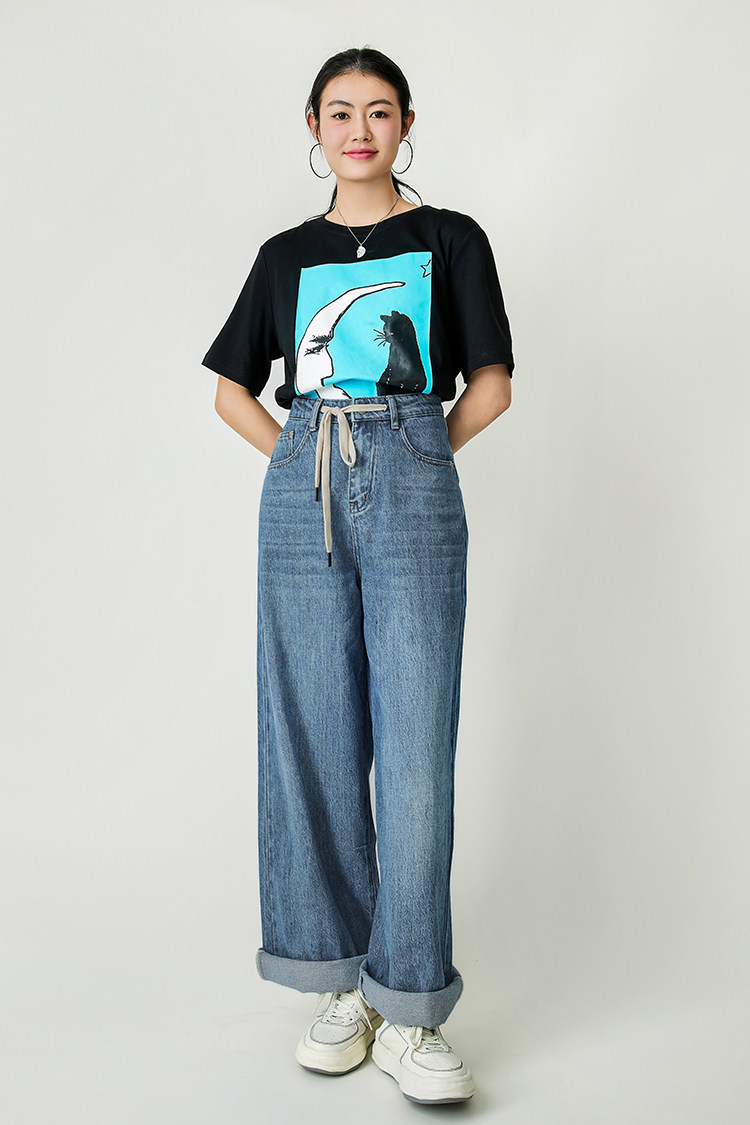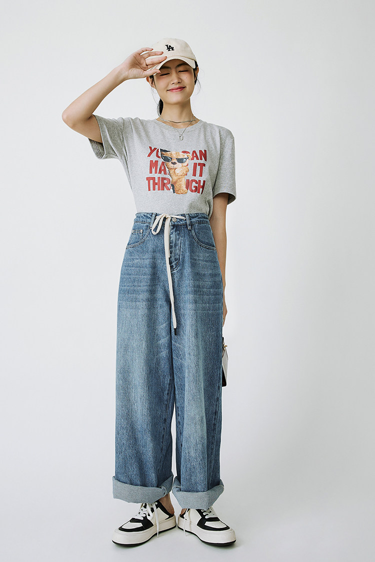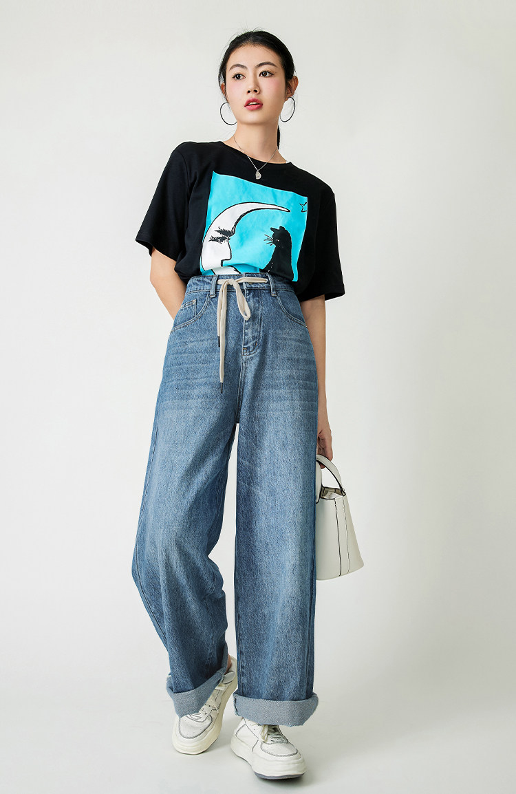 Meiyang Meiyang [Spot] Джинсы Окинава Ленивые свободные удары различные повседневные брюки