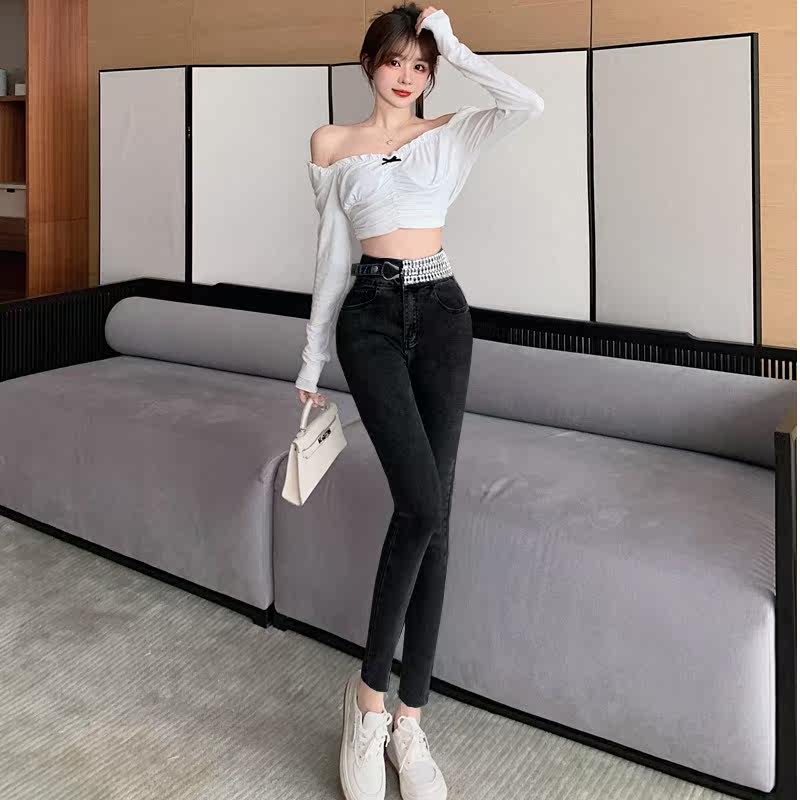 Весенние джинсы, сексуальные штаны, приталенный эластичный карандаш, высокая талия, свободный прямой крой