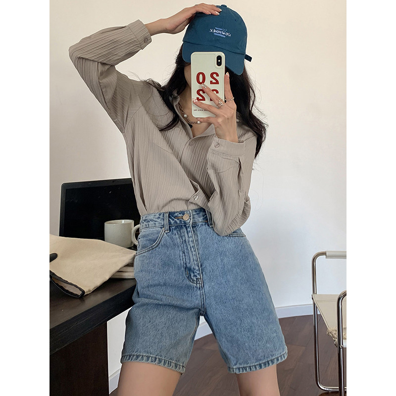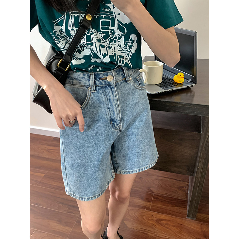 Ретро джинсовая юбка, шорты, приталенные штаны, коллекция 2023, высокая талия, по фигуре, подходит для подростков, свободный прямой крой