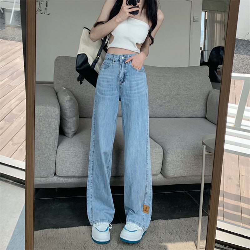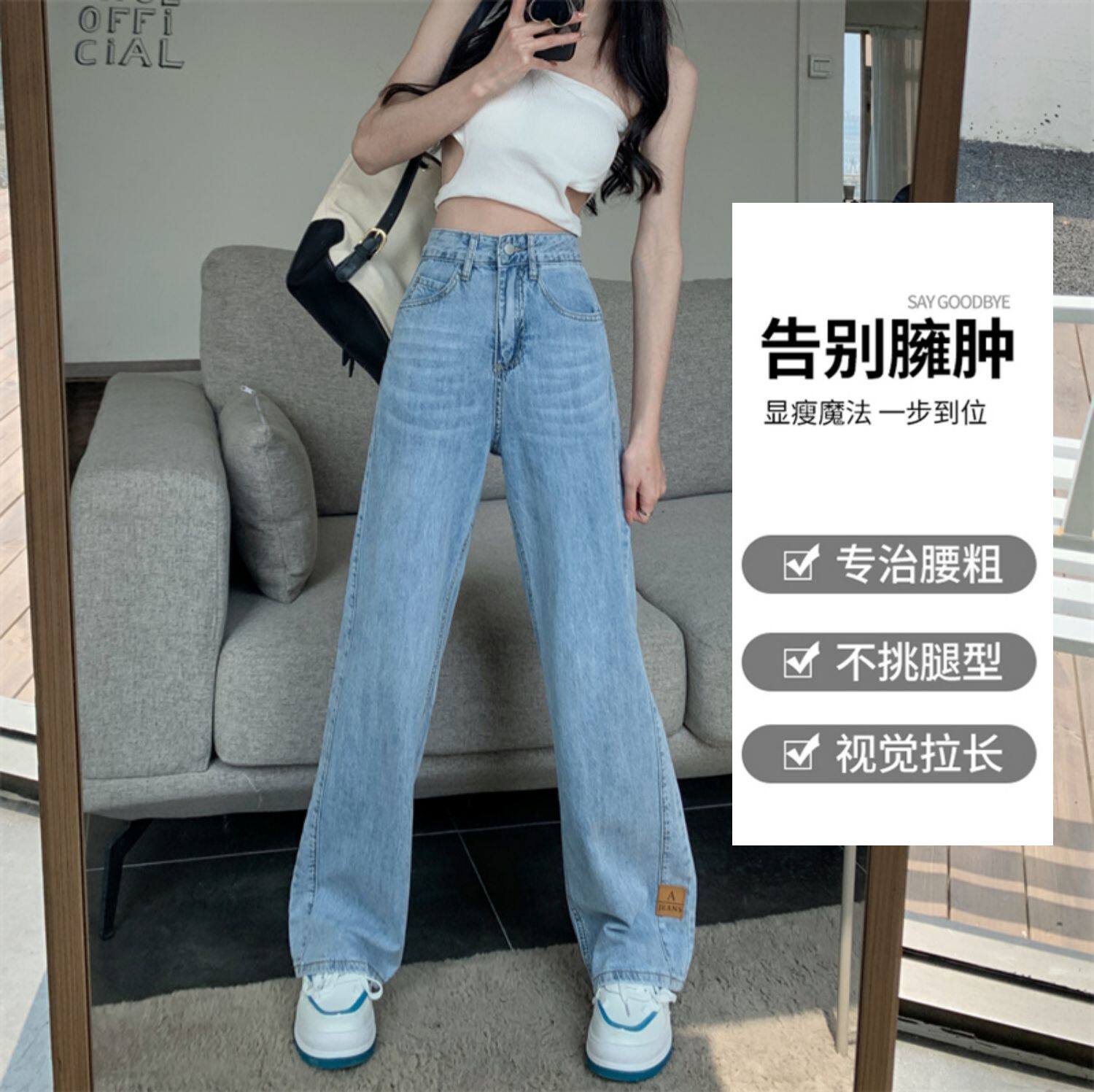 Осенние джинсы, вместительные и большые штаны, высокая талия, большой размер, свободный прямой крой, подходит для подростков, по фигуре
