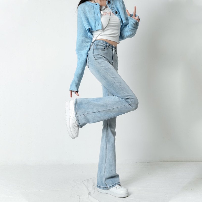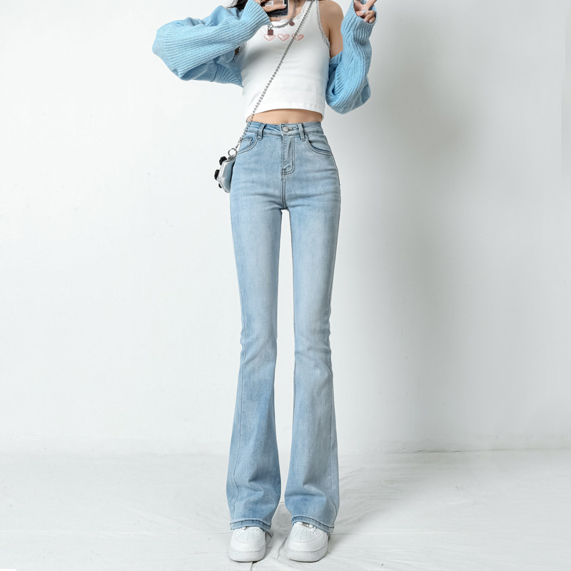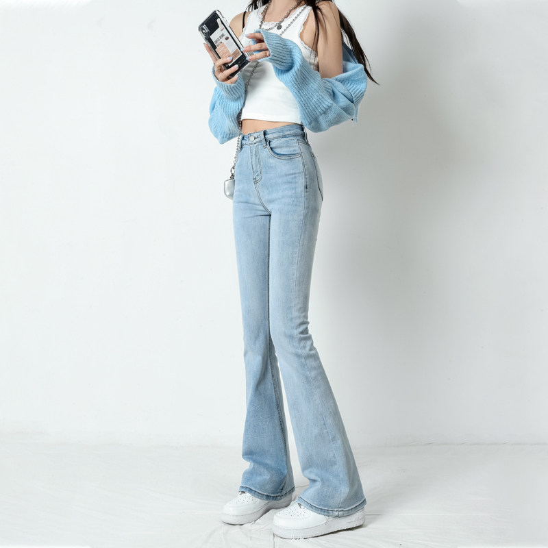 Светлые летние джинсы, весенние штаны, приталенные ретро штаны-клёш, высокая талия