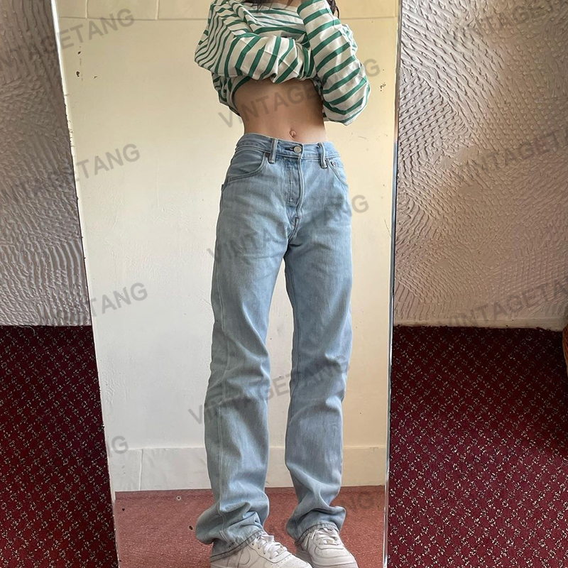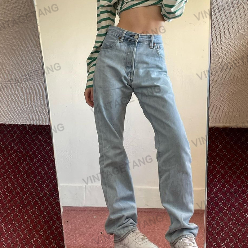 Tide, синие прямые свободные джинсы, тонкие штаны, европейский стиль, по фигуре, свободный прямой крой