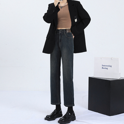 Мегафон, весенние осенние черные джинсы, летние эластичные штаны, высокая талия, облегающий крой