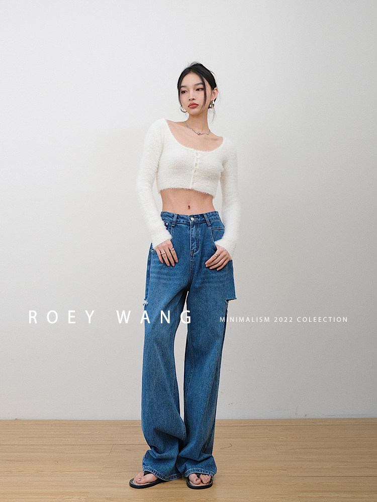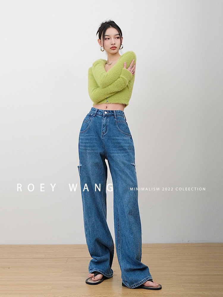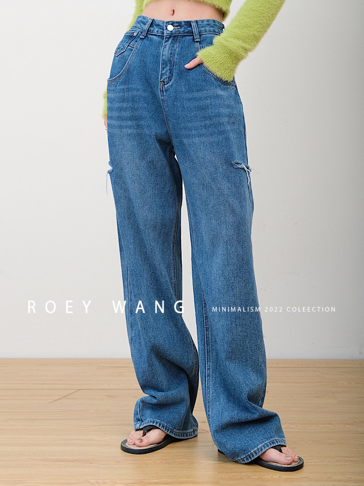 Штаны, весенние летние джинсы, высокая талия, свободный прямой крой